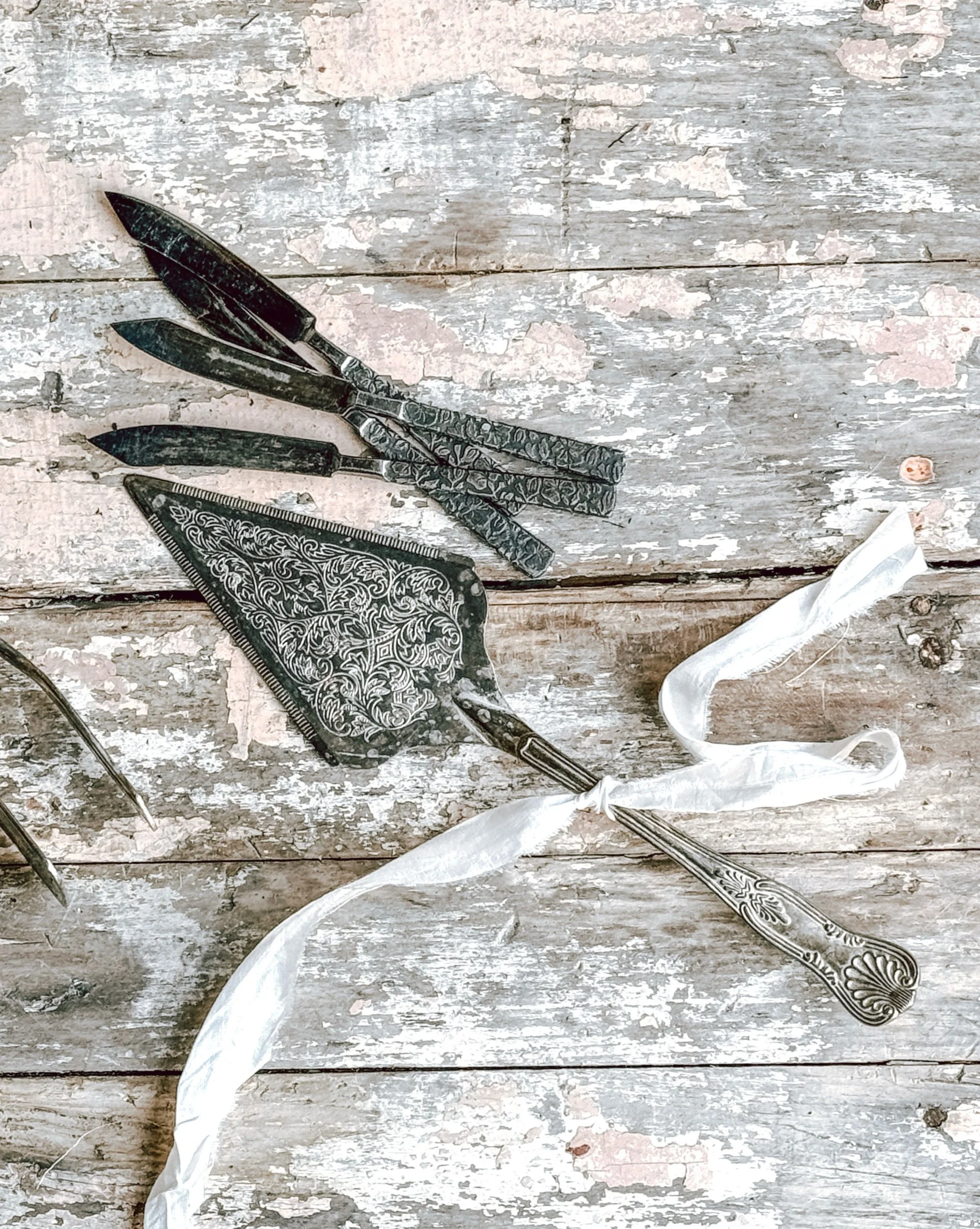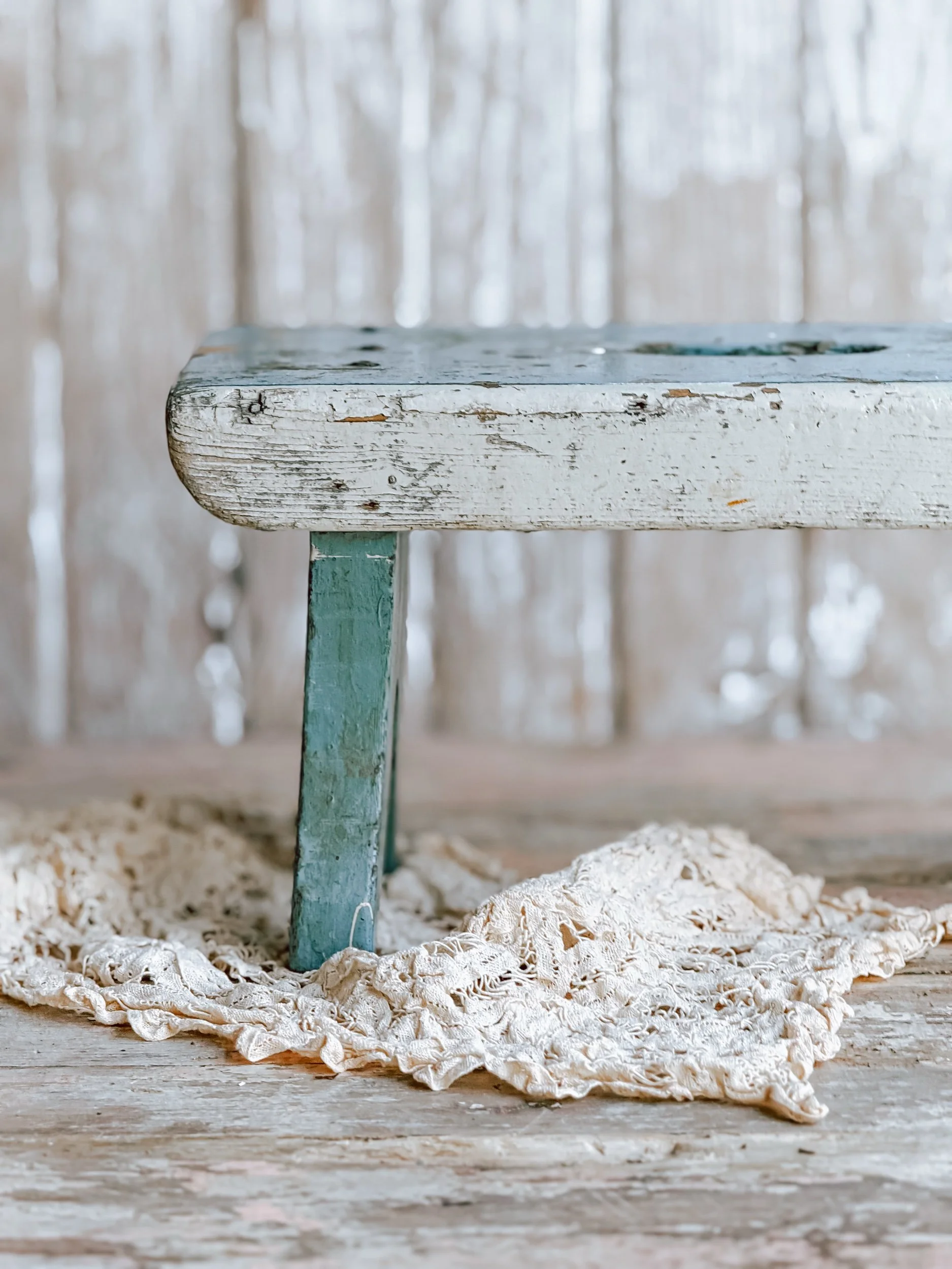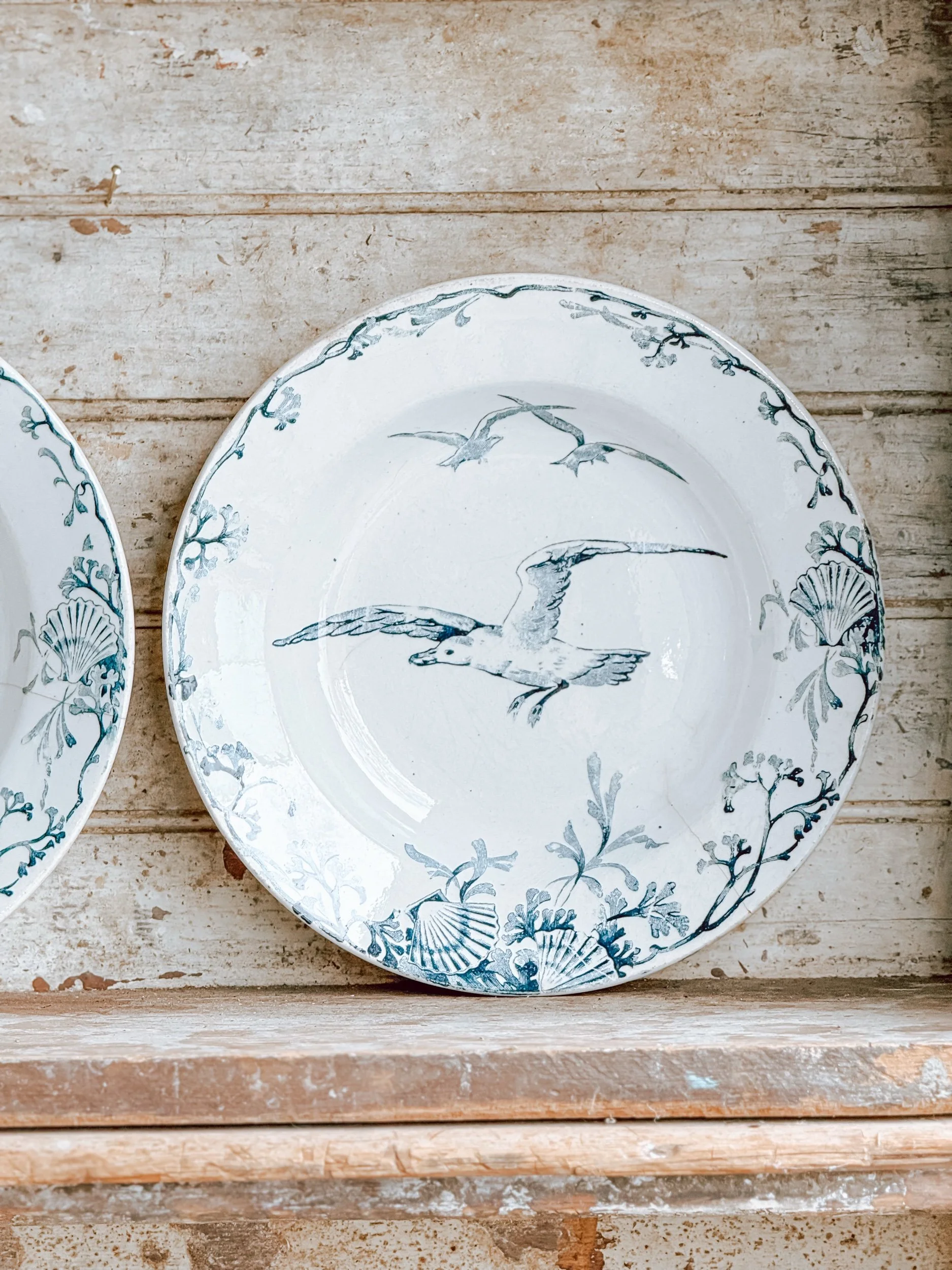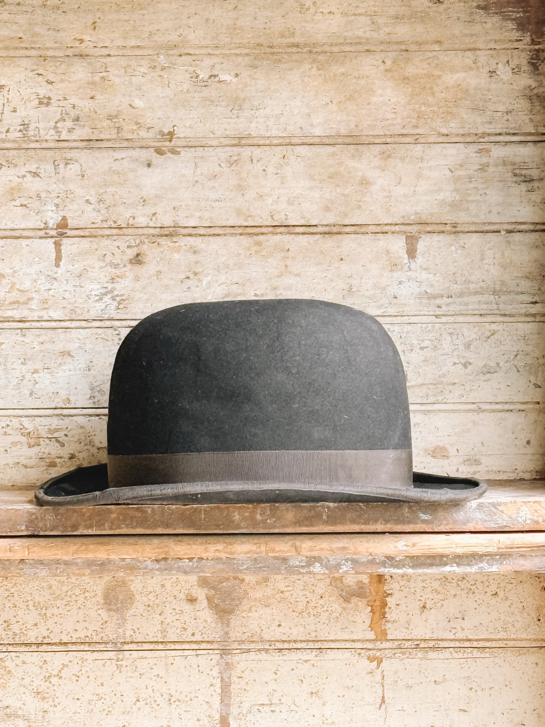 French Antique Ironstone Cloche w/ Blue Mercury Glass