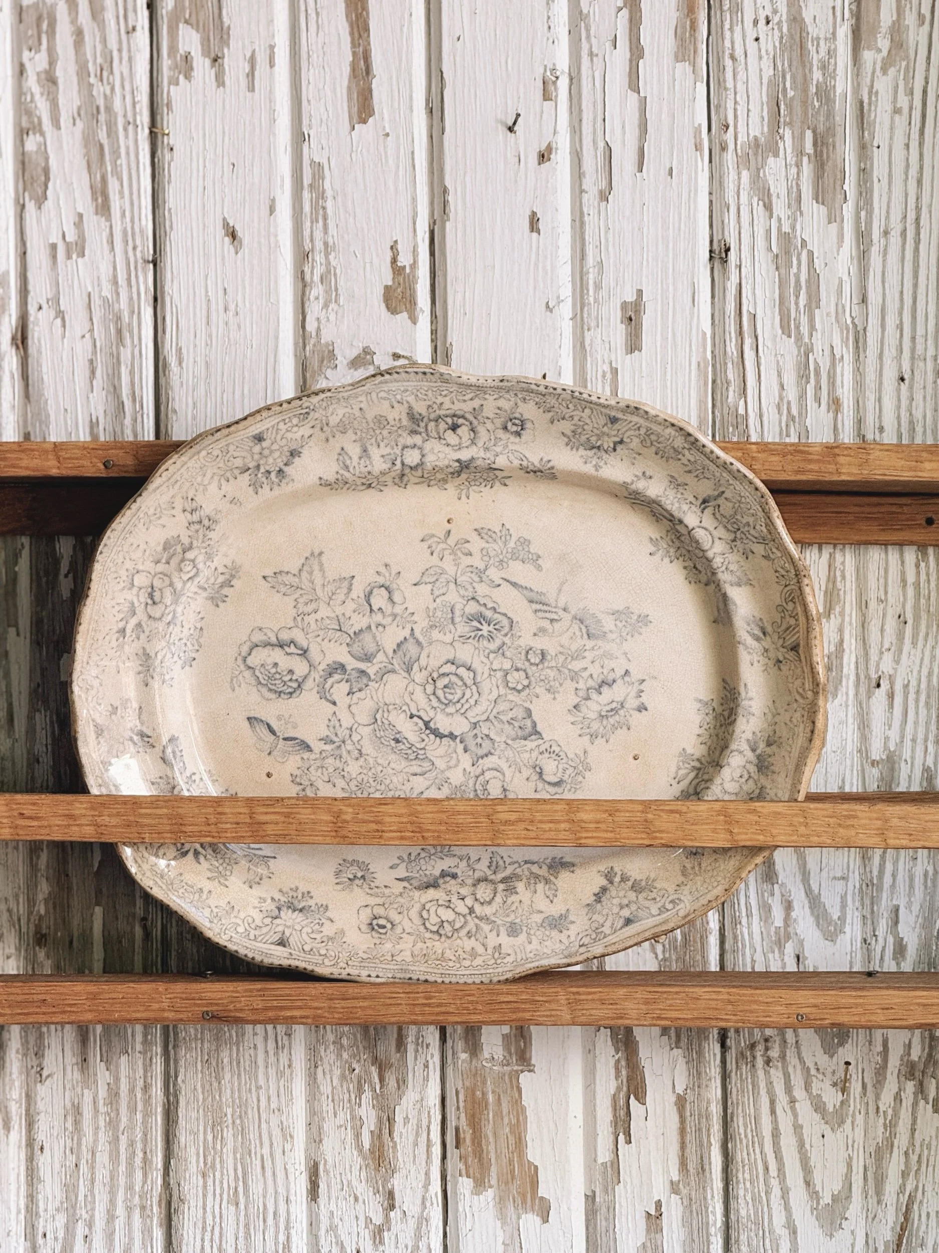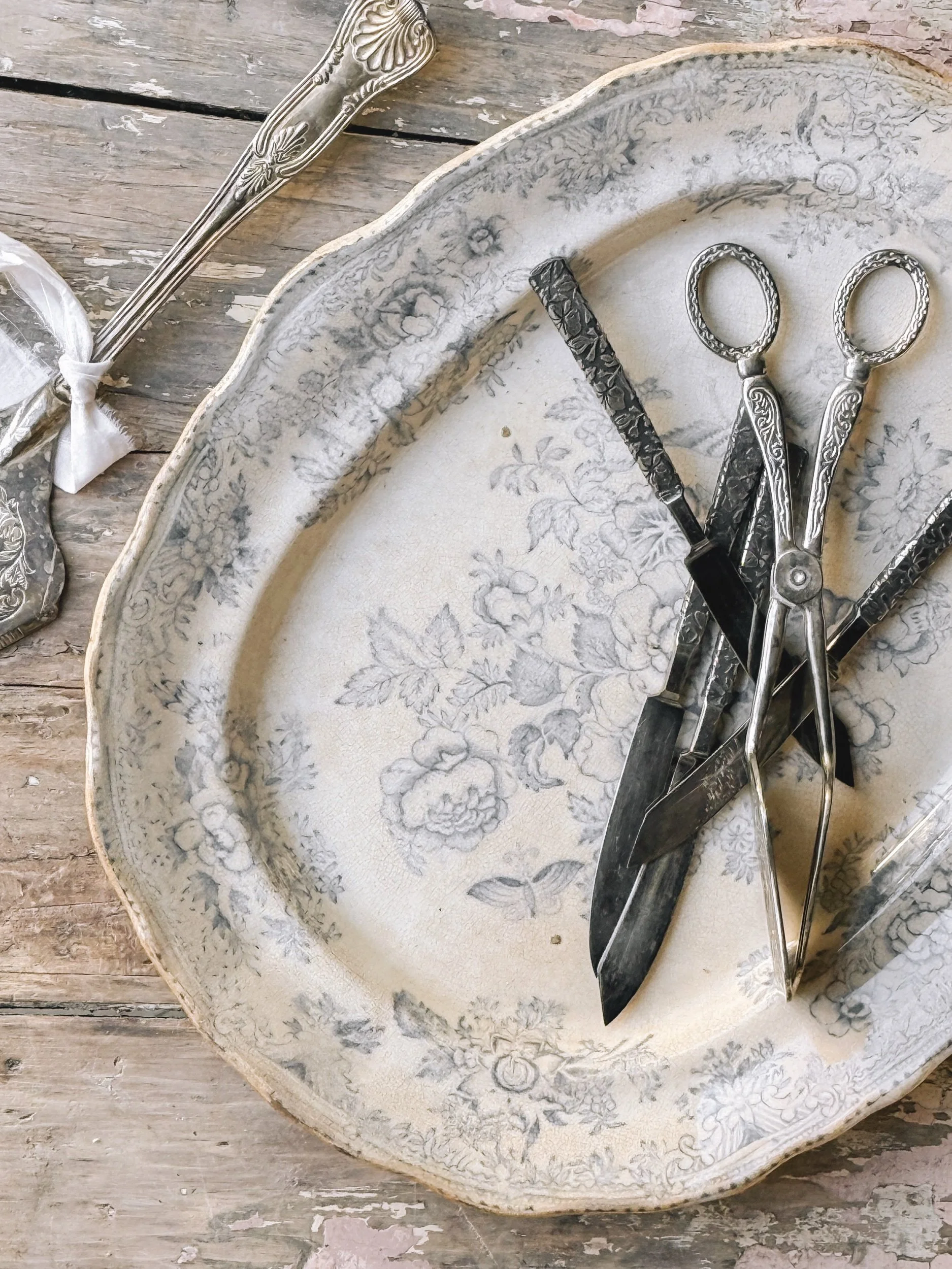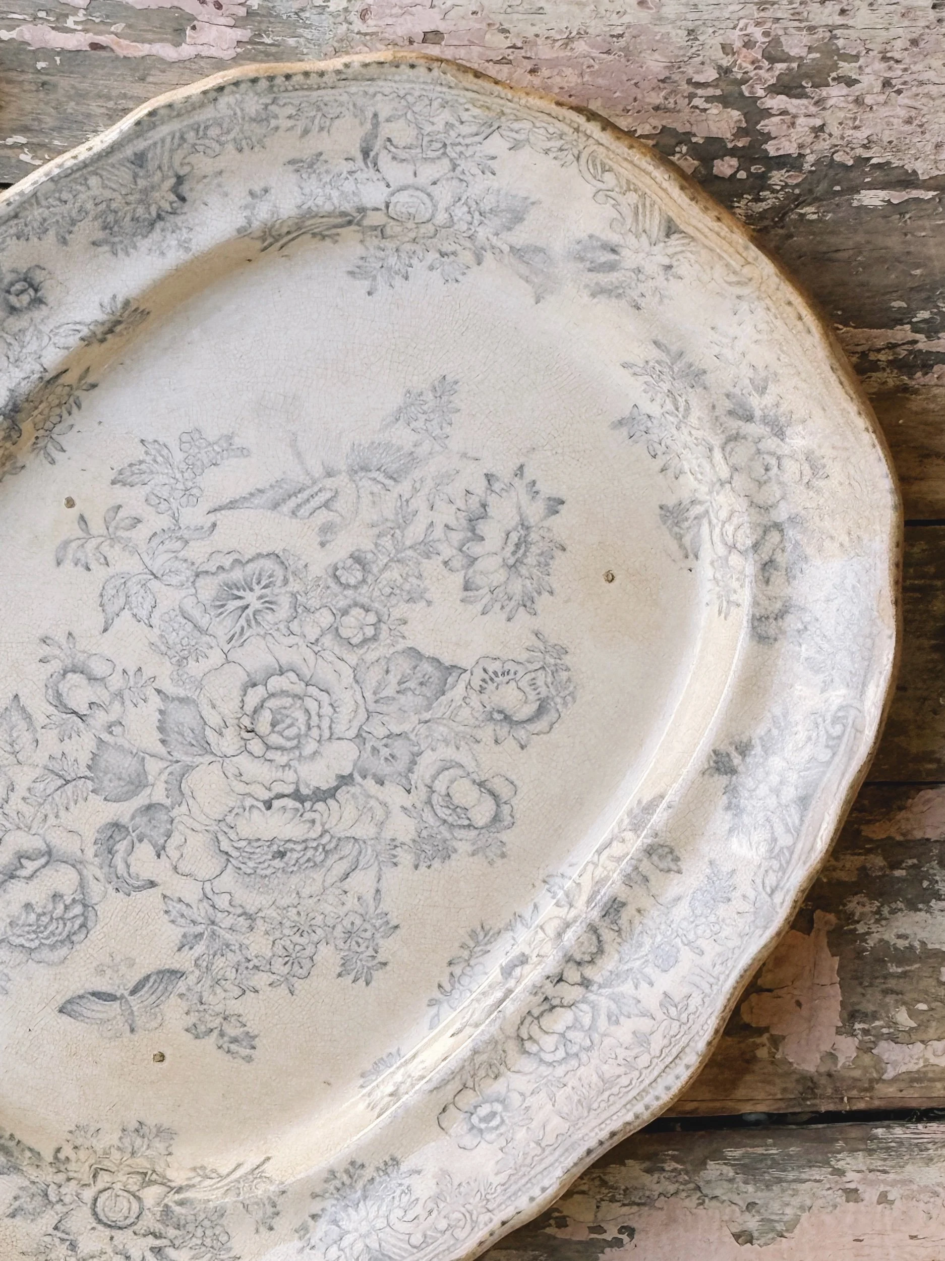 Antique European Ironstone Lidded Tureen w/ Handmade Creamy Yarn Tree