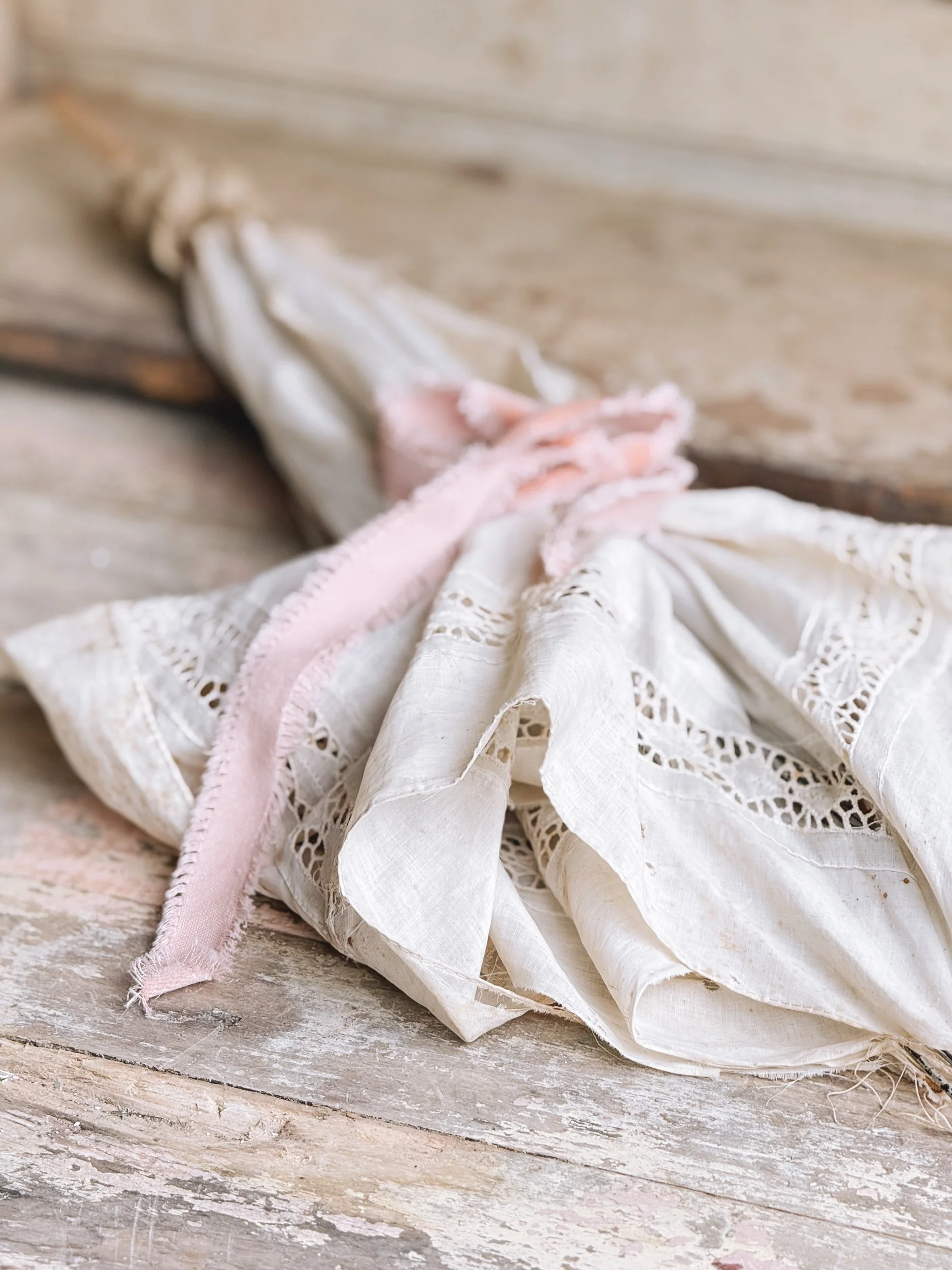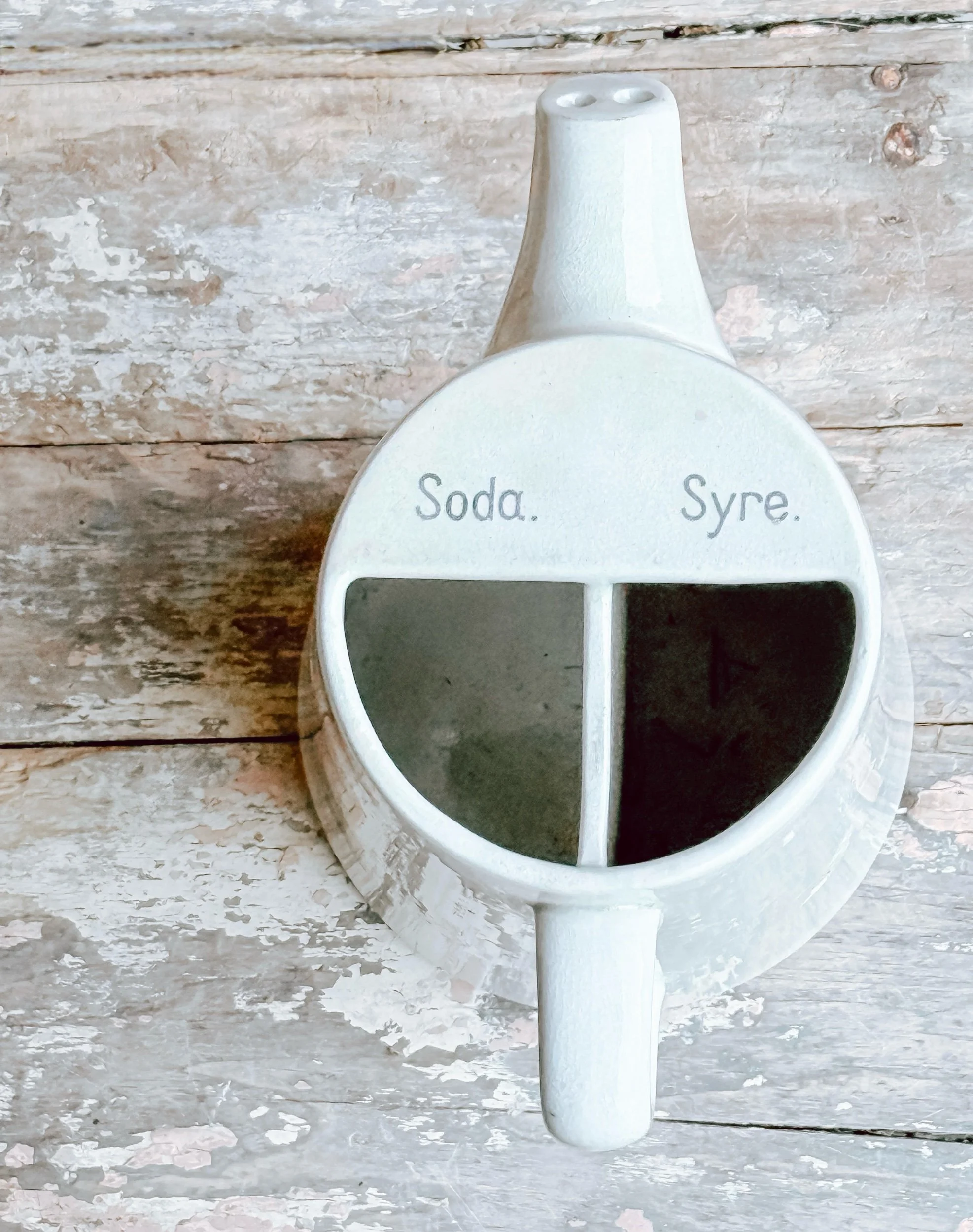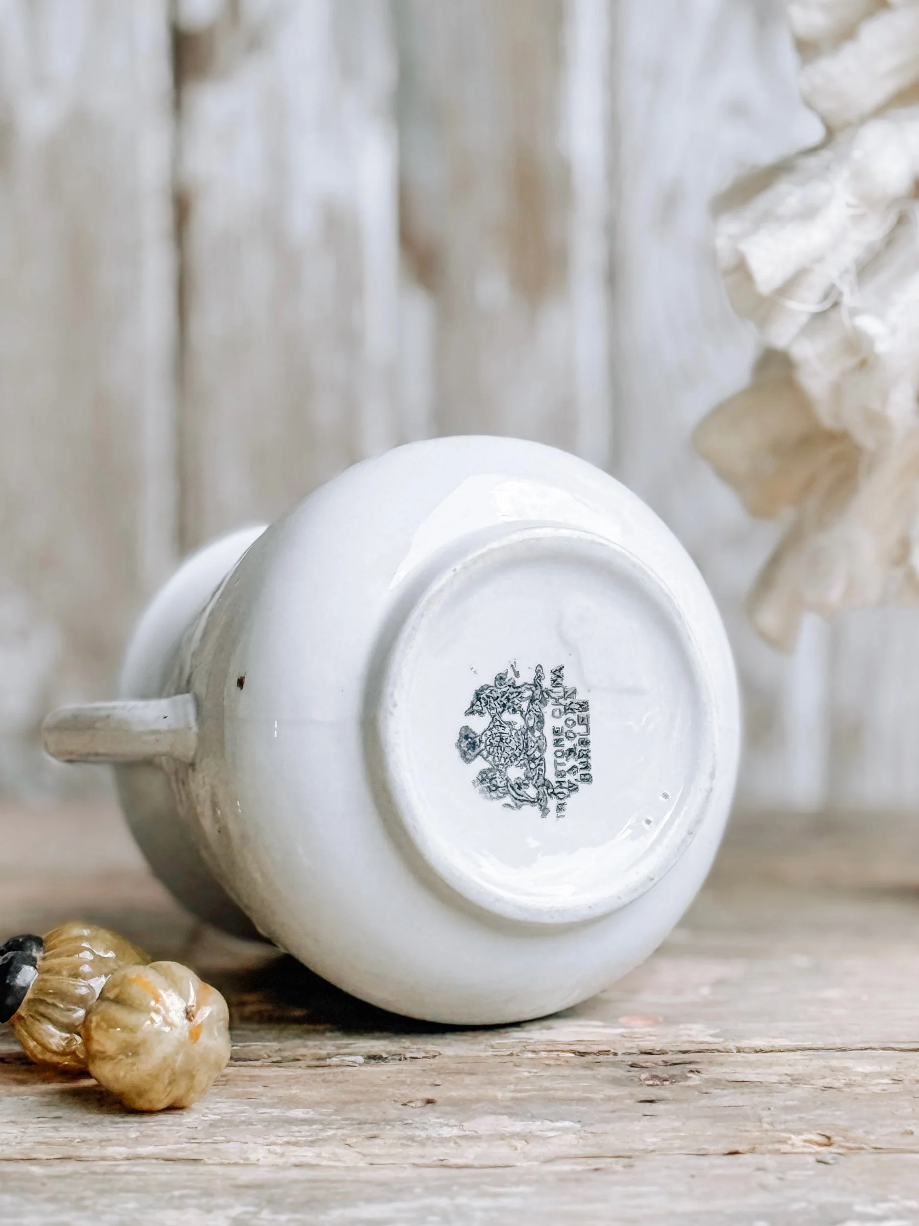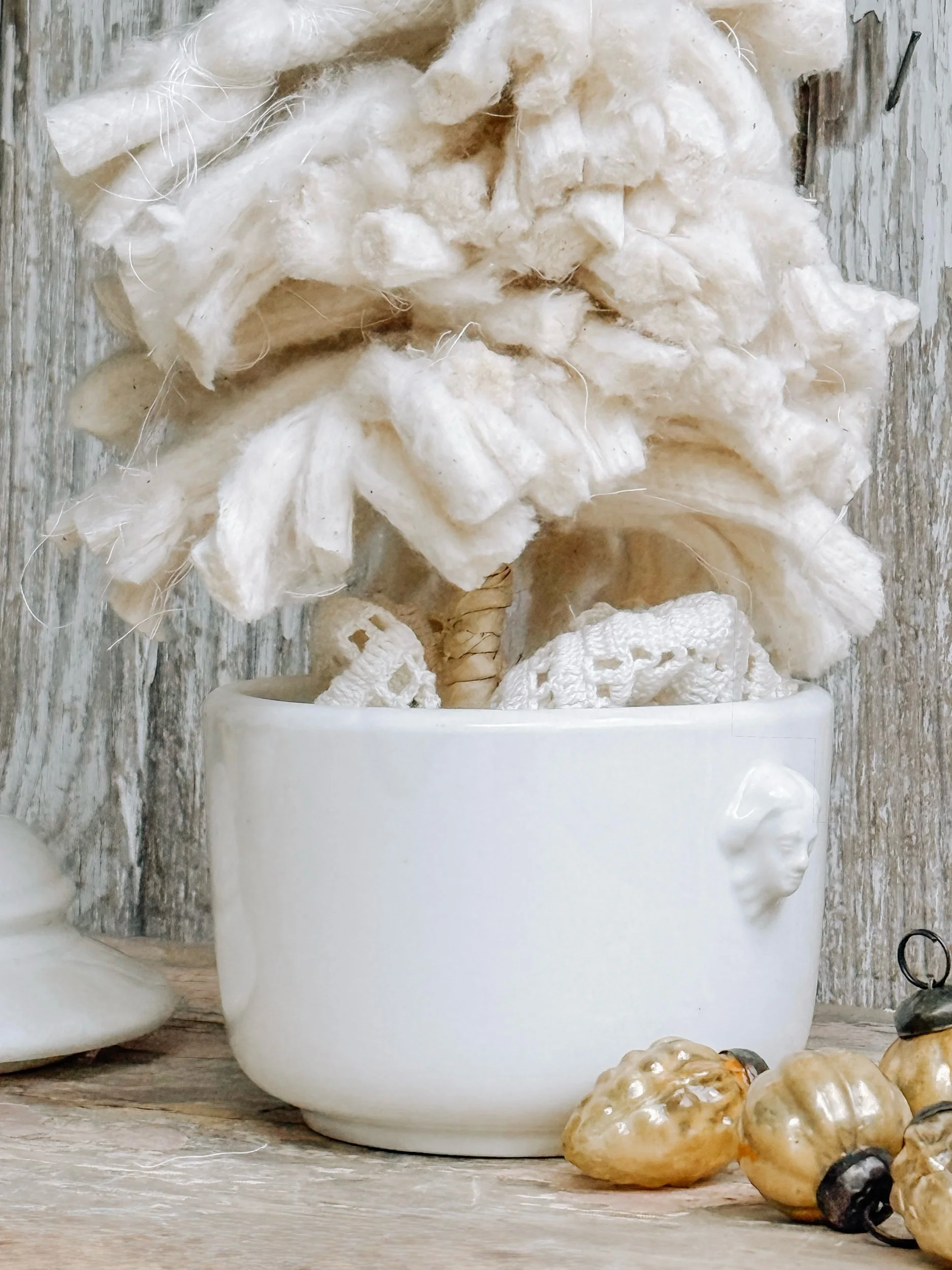 Antique English Ironstone Sugar Bowl w/ Handmade Creamy Yarn Tree
