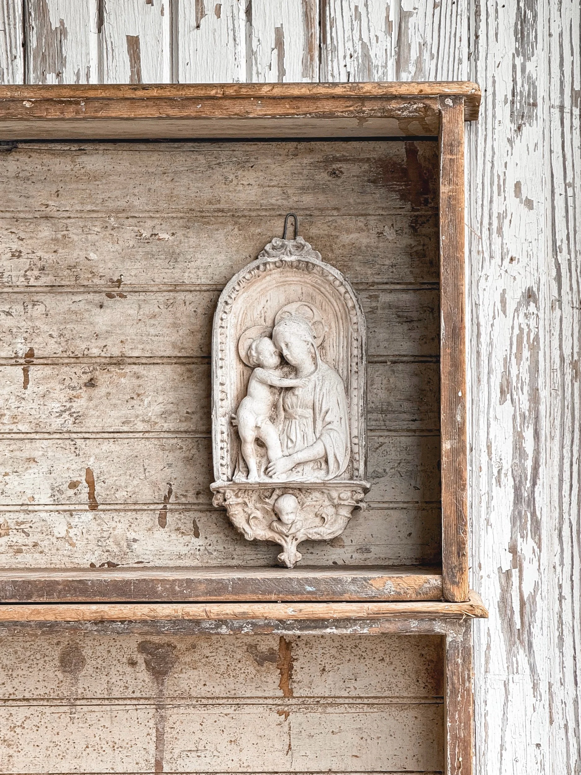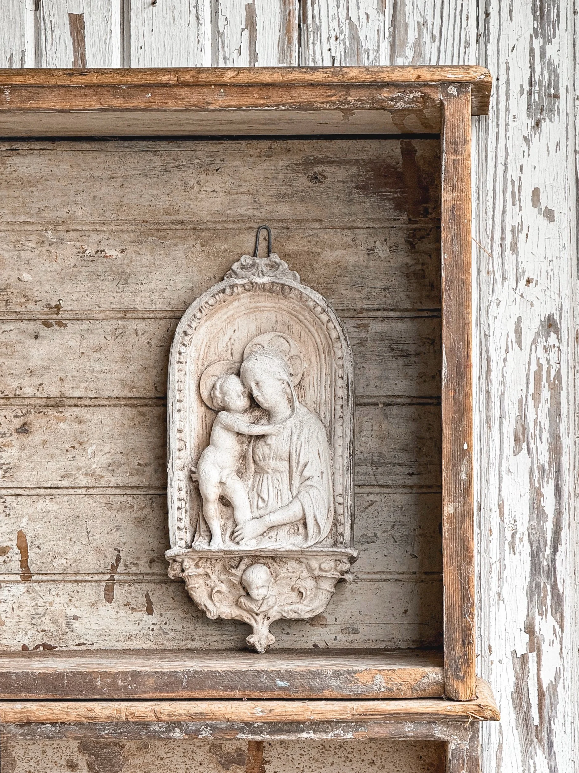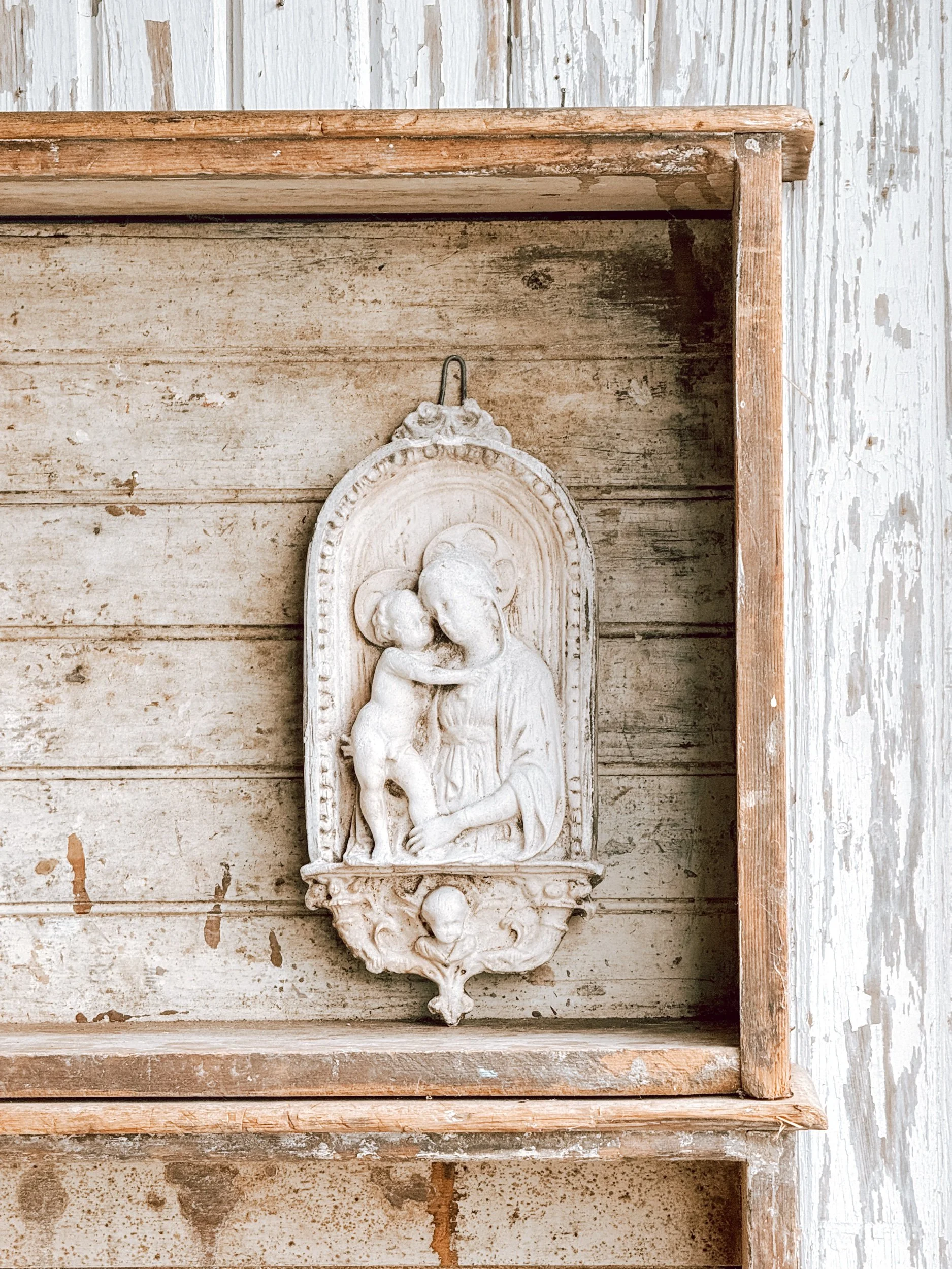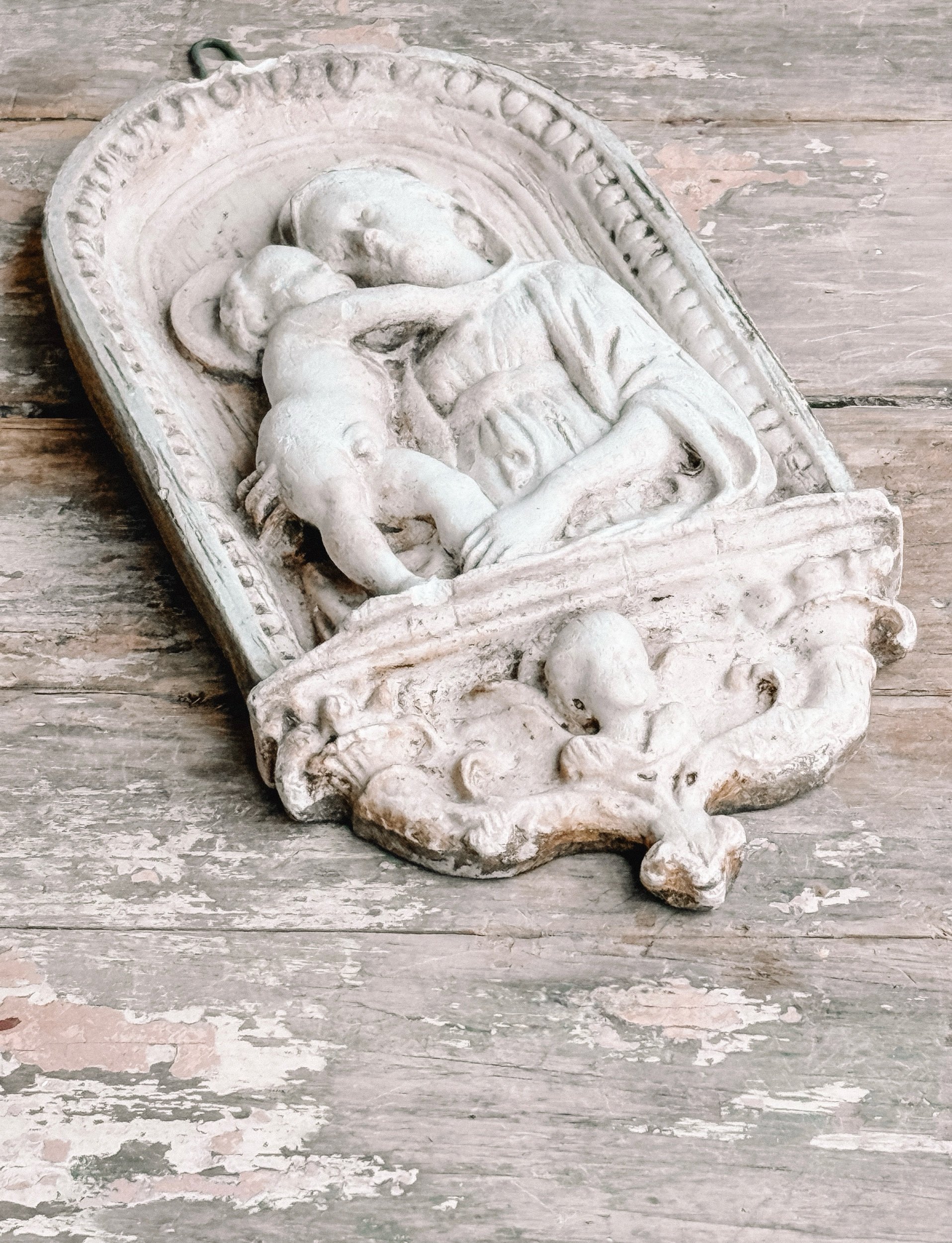 19th c. European Madonna & Child Devotional Plaque, Carved Relief