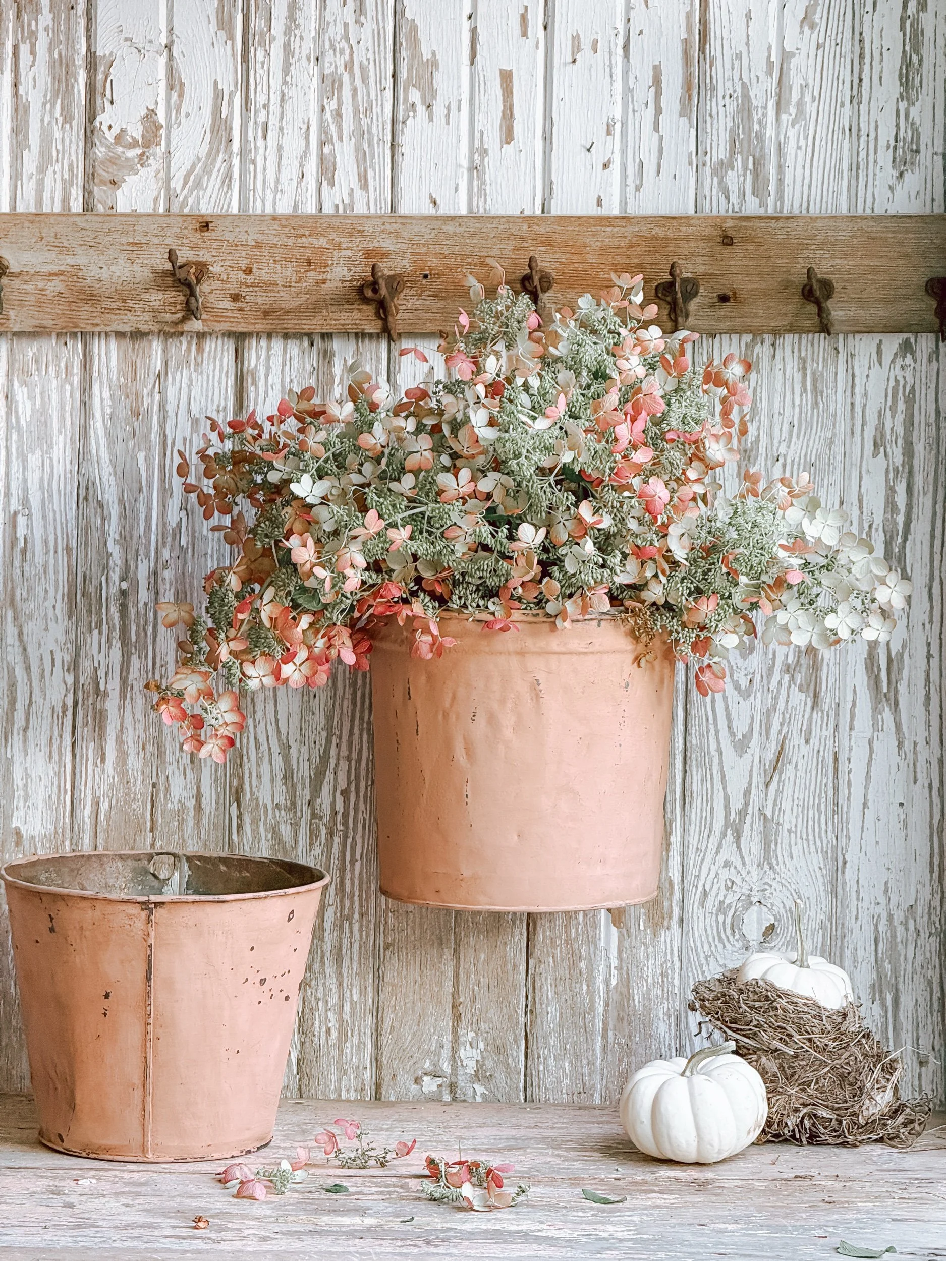 Pink Antique Garden Caddy w/ Dried Hydrangeas