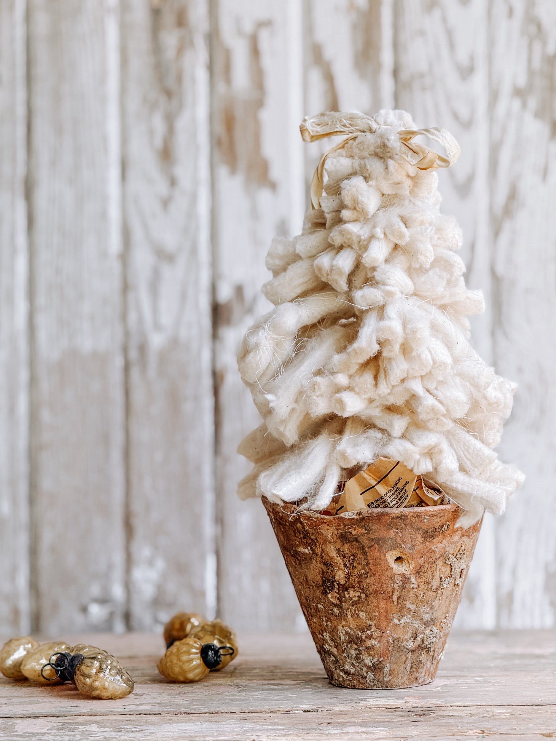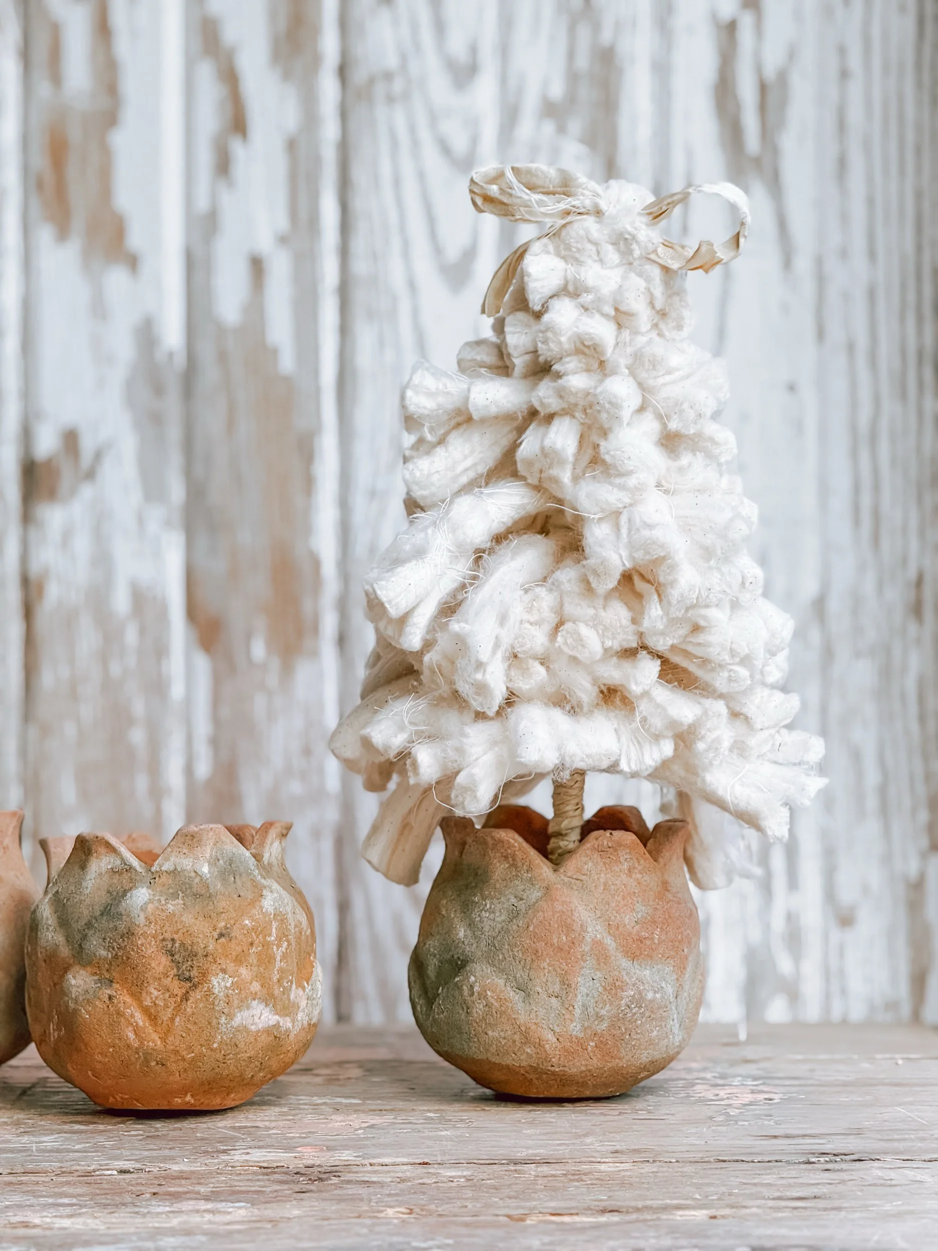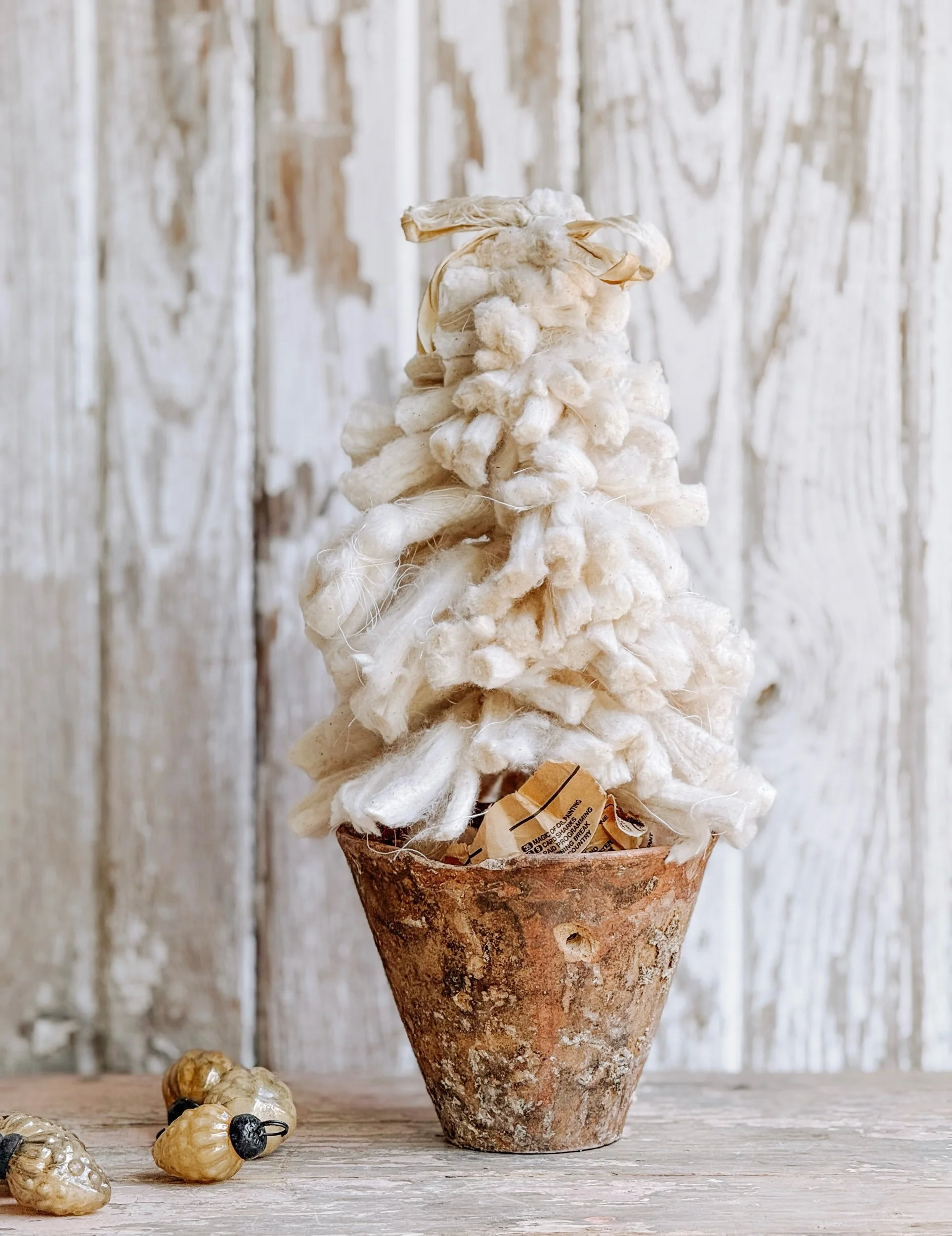 Antique French Resin Pot w/ Creamy Yarn Tree