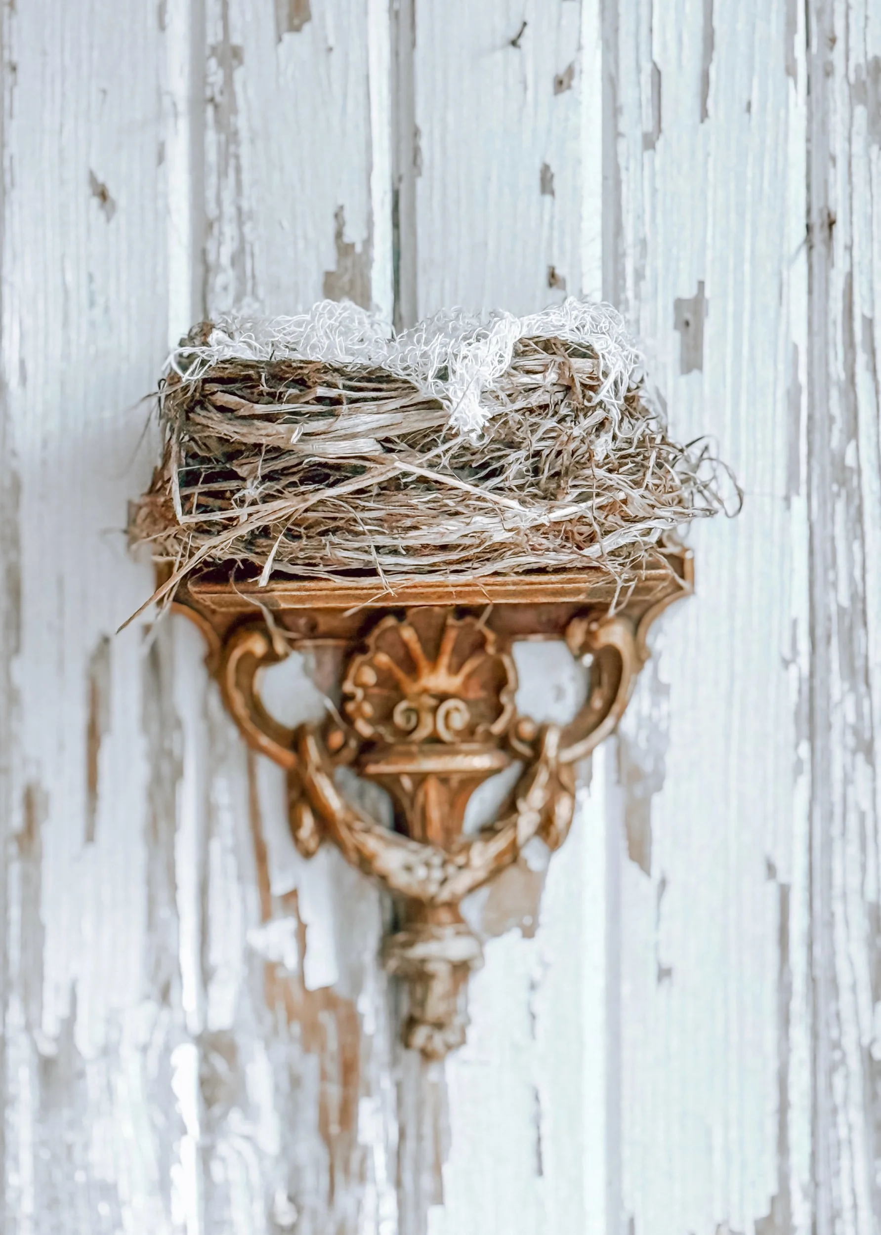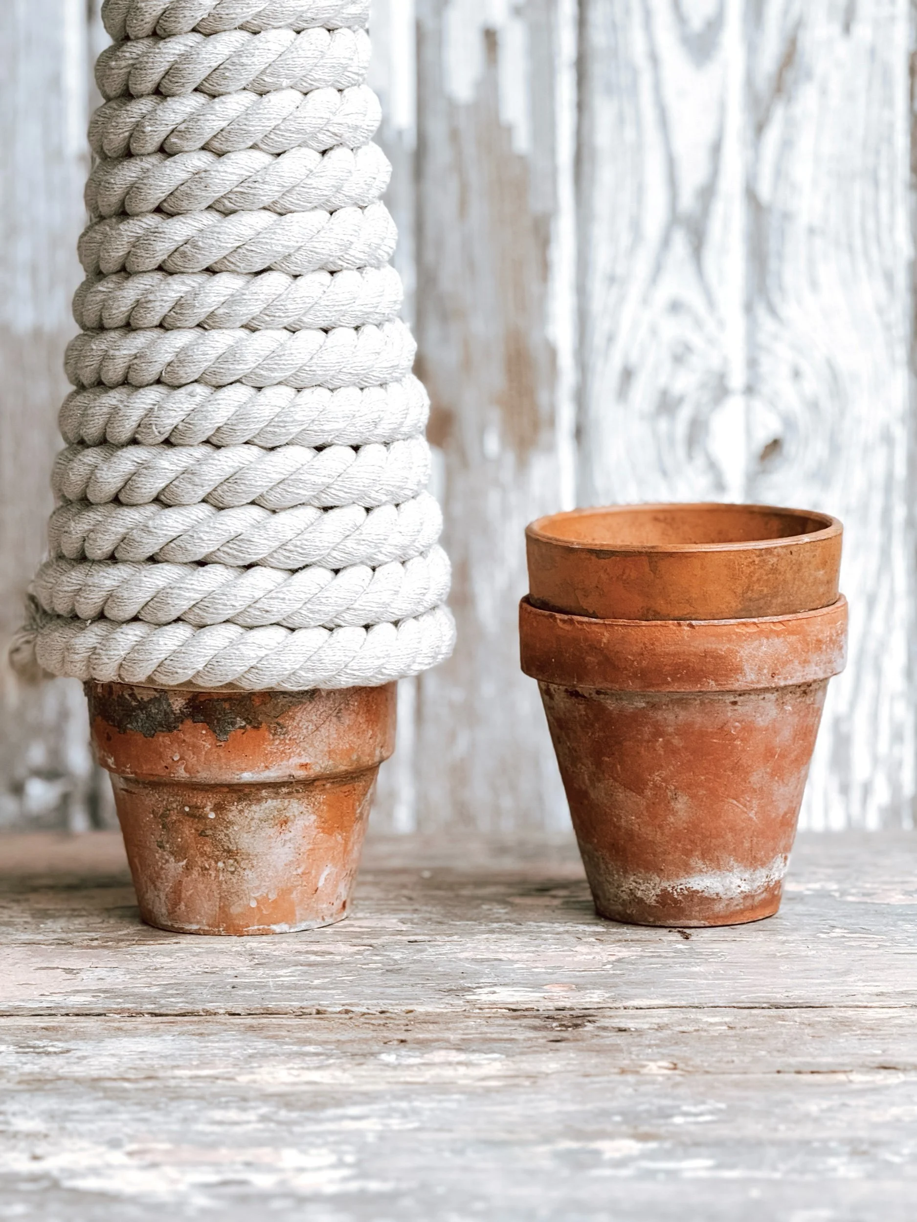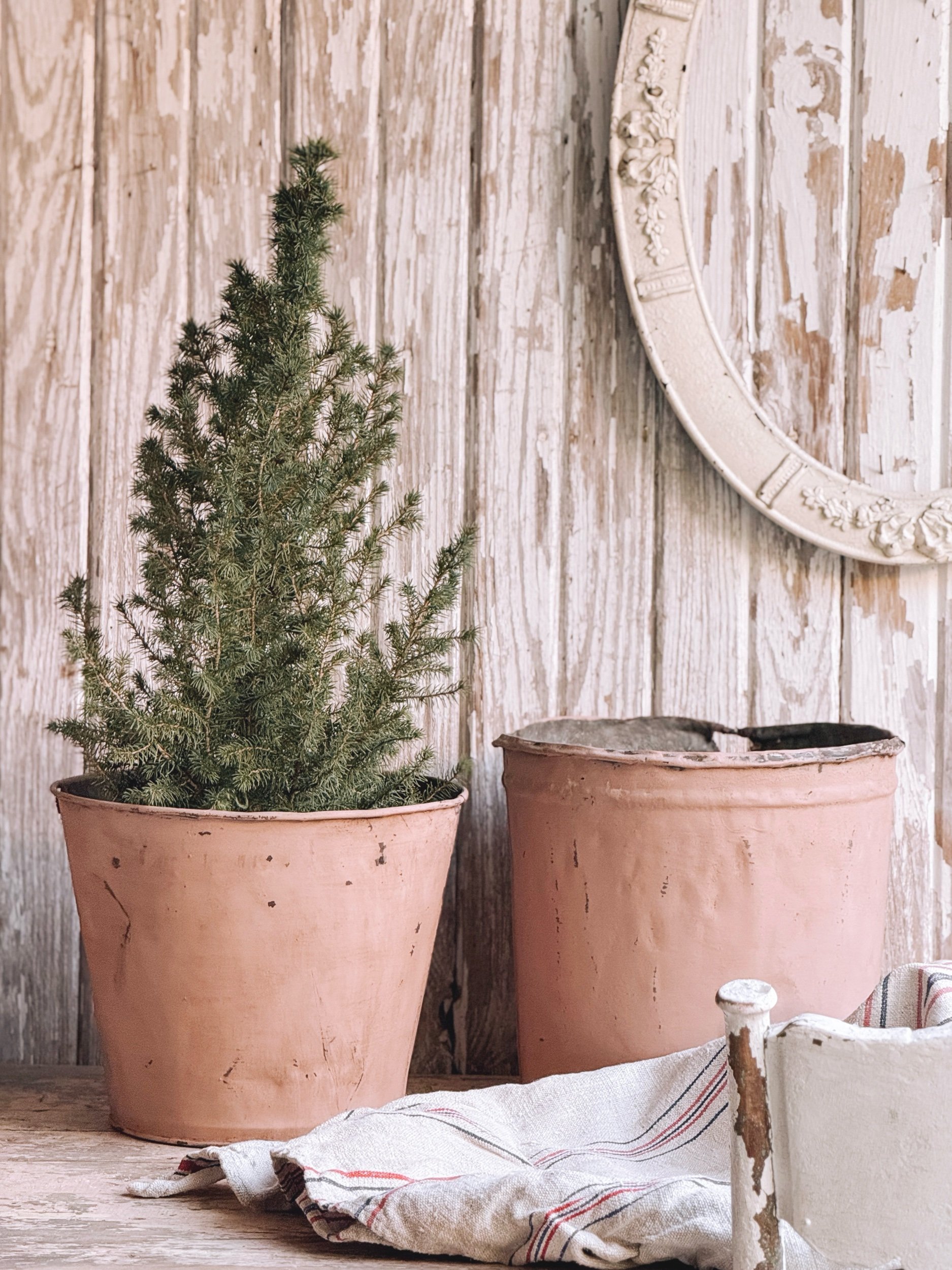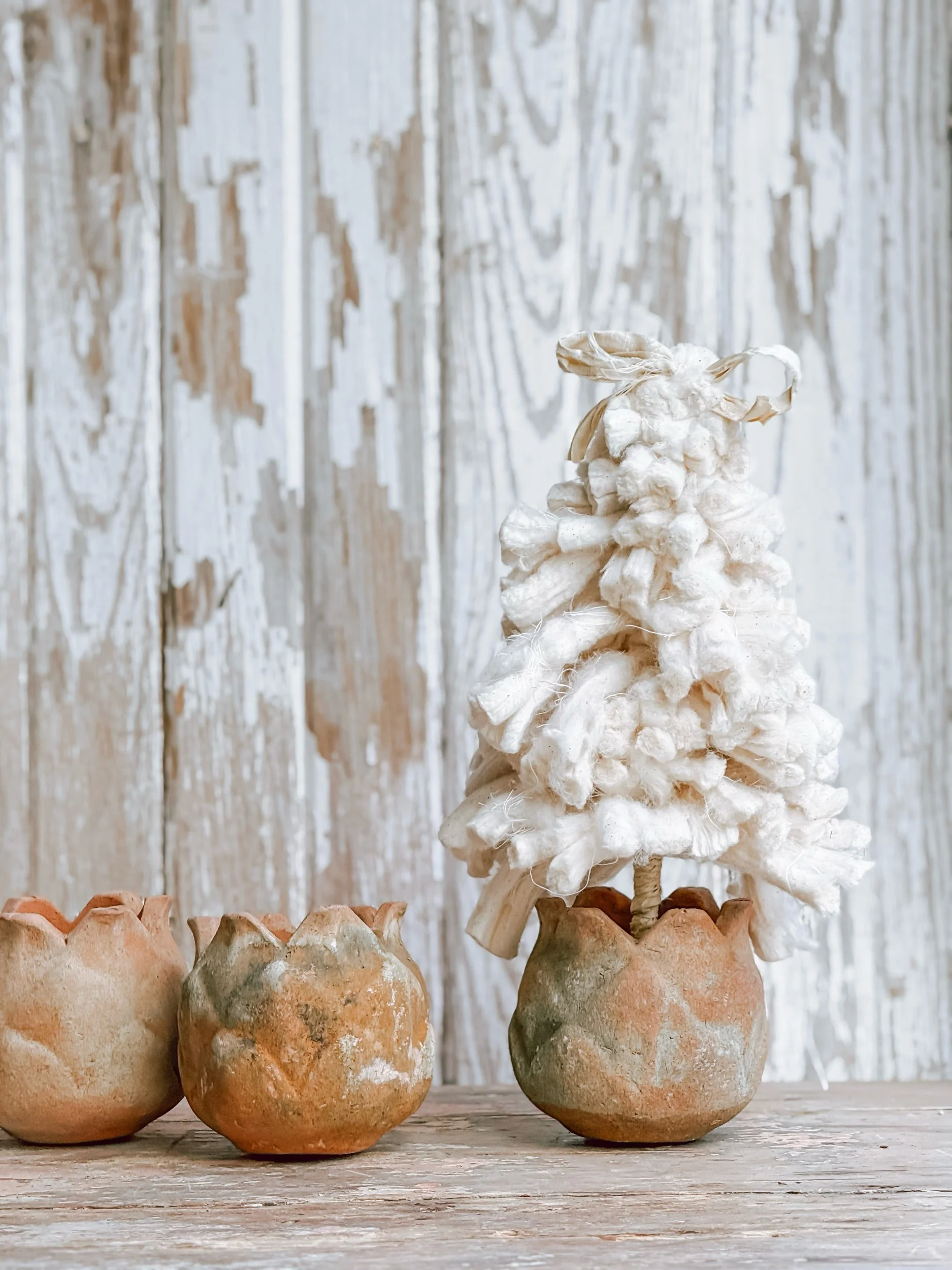 Antique French Resin Pot w/ Creamy Yarn Tree