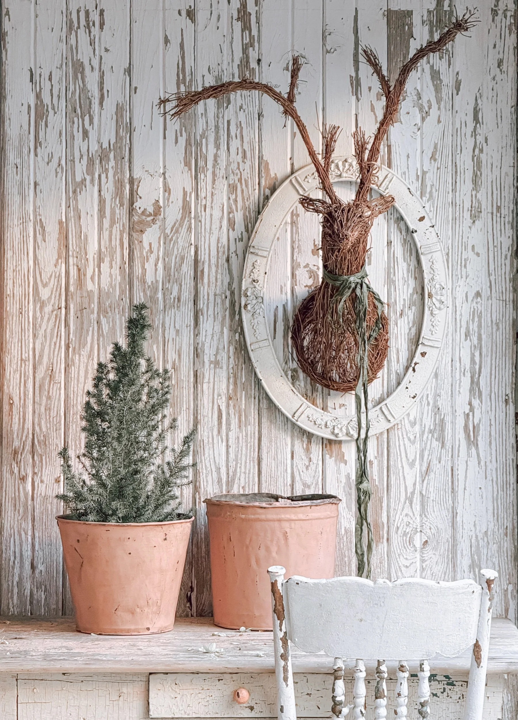 Antique Salvaged Frame w/ Fresh Cedar Swag