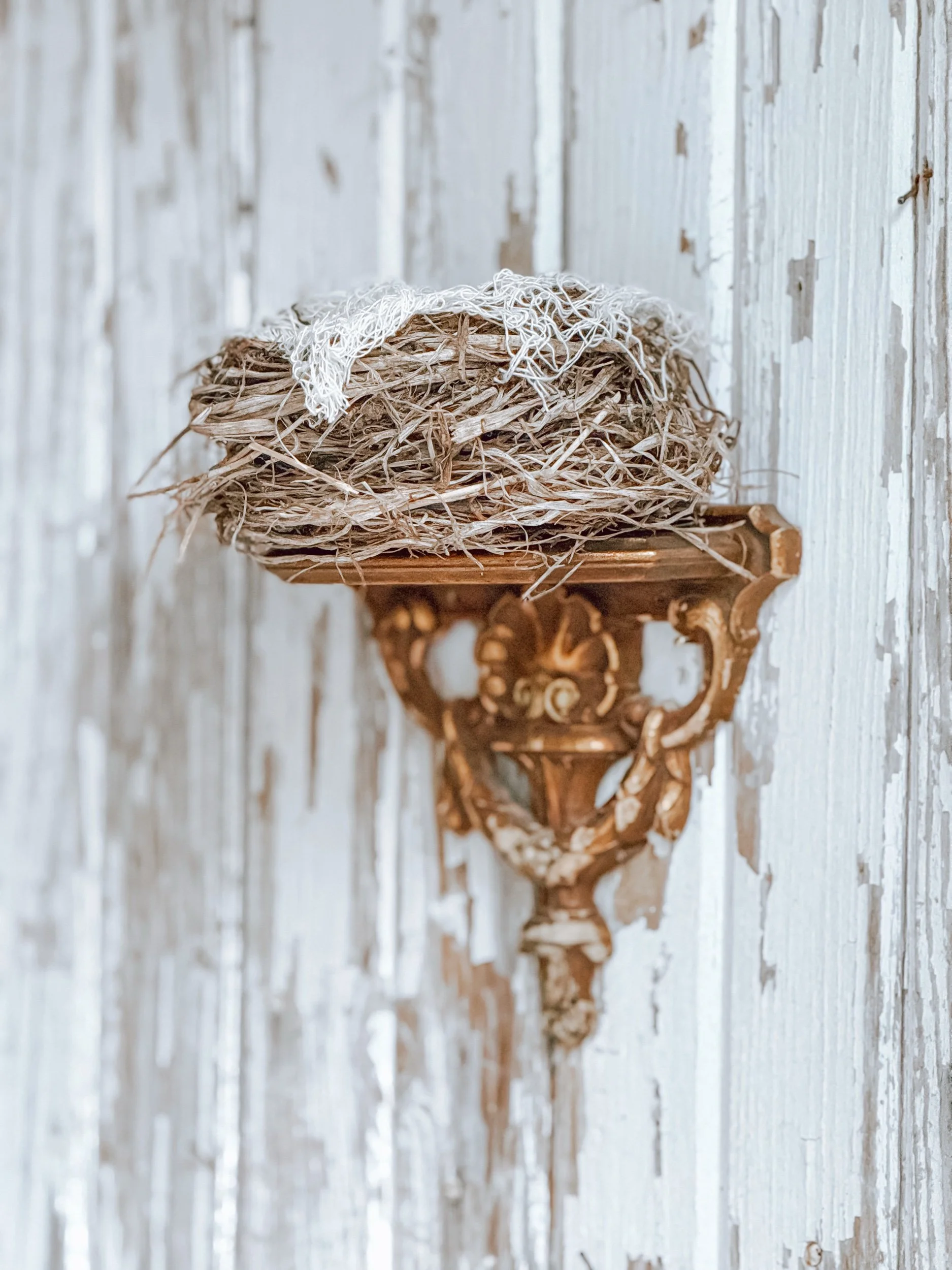 Handmade Antique Wall Pocket w/ Dried Peonies