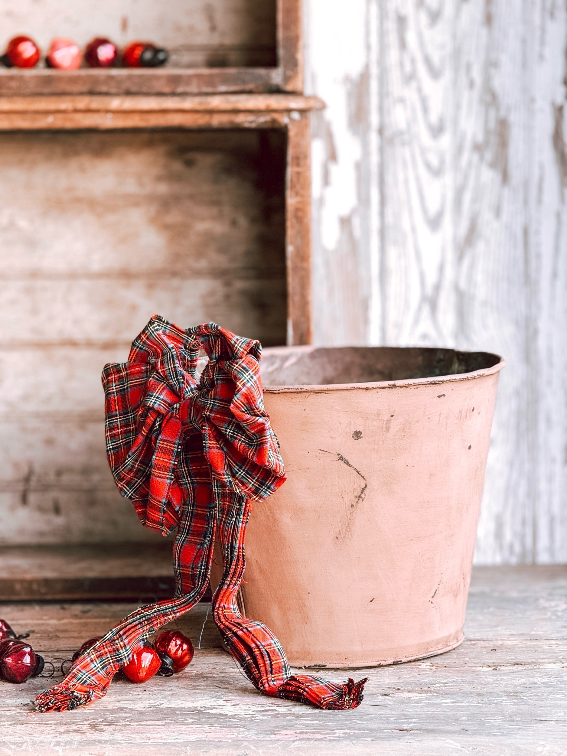 Antique Painters Bucket w/ Handmade Tartan Bow