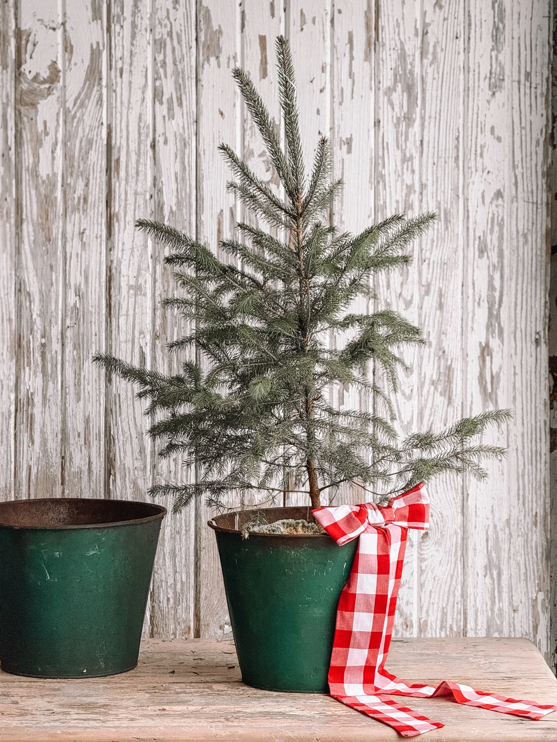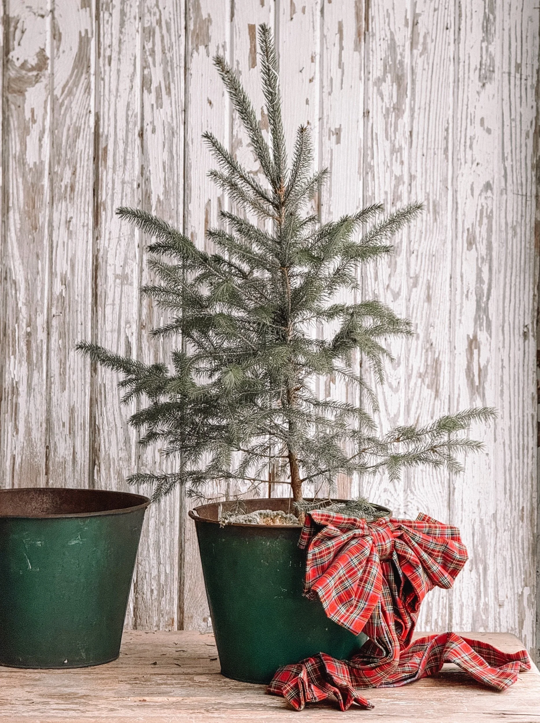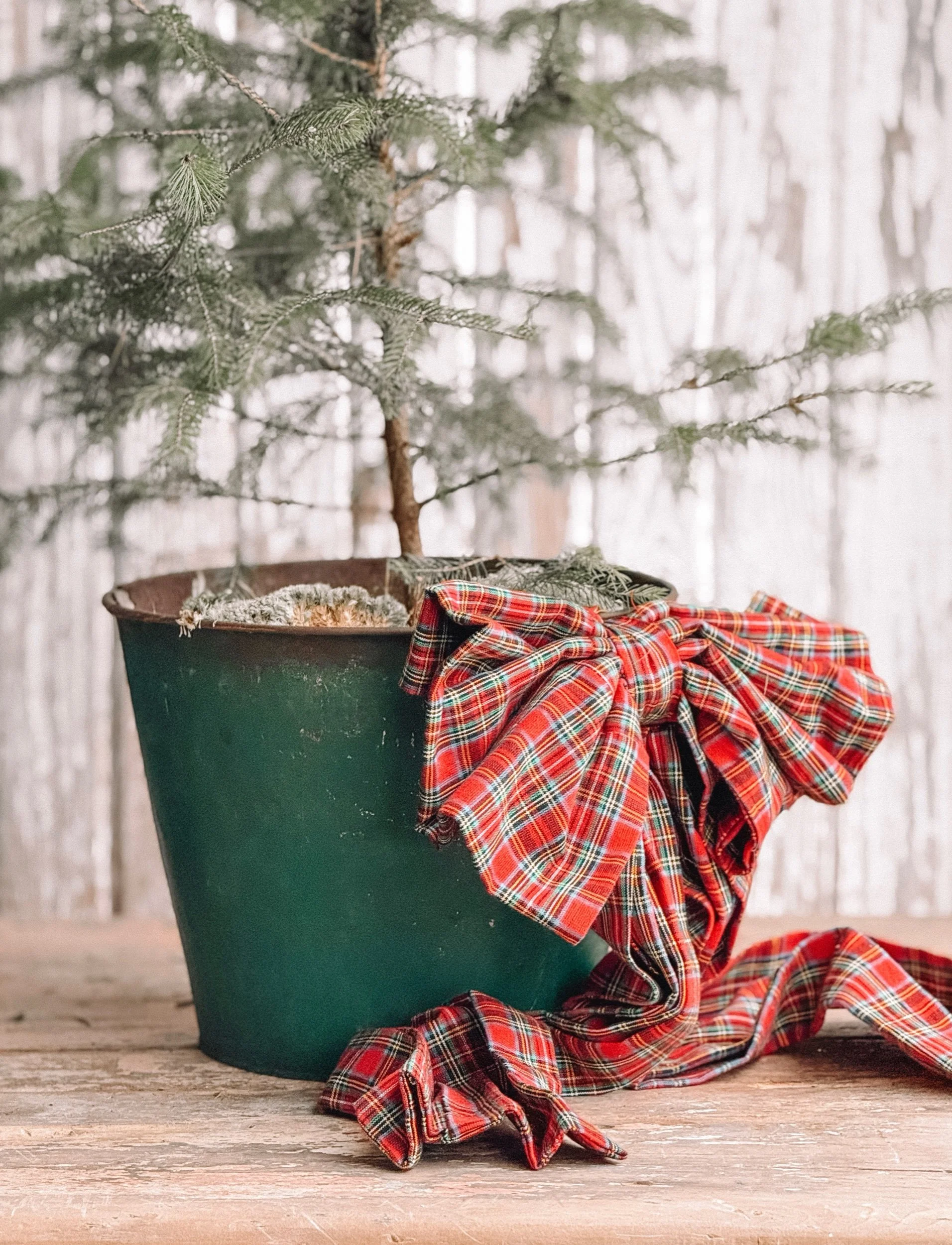 Antique Sap Bucket w/ Handmade Tartan Bow
