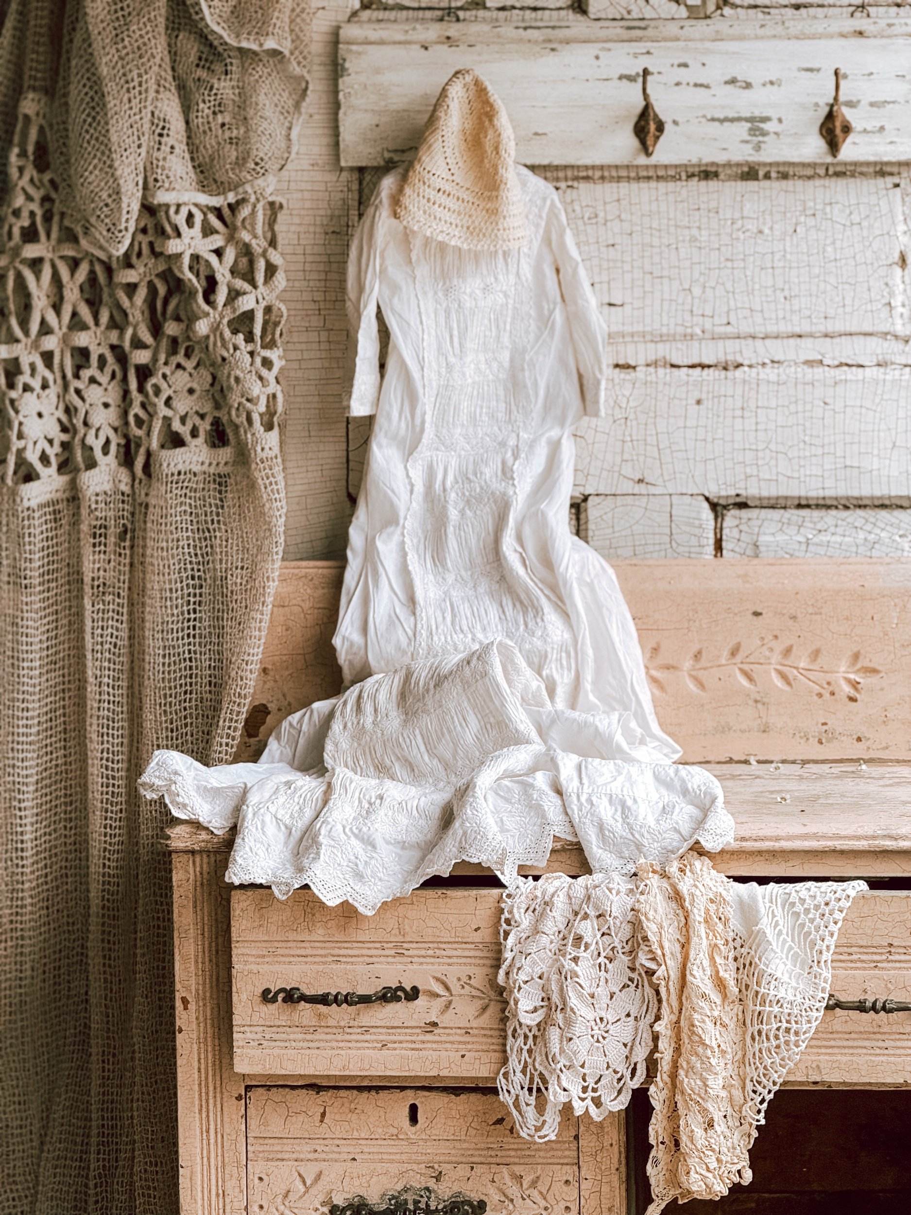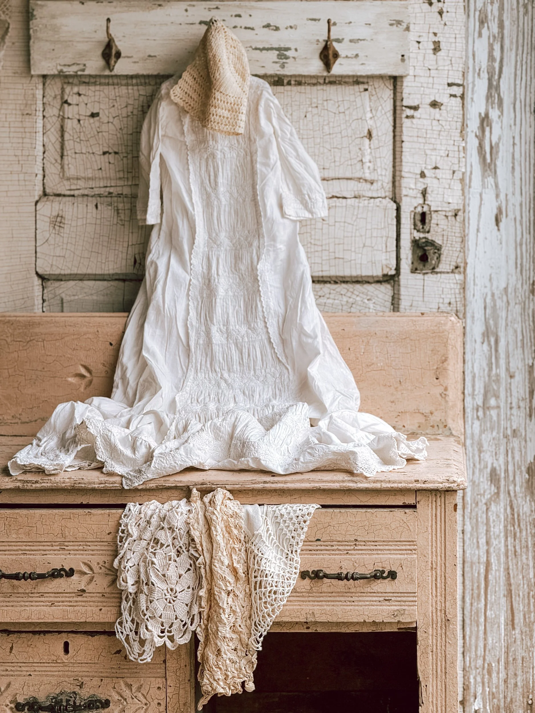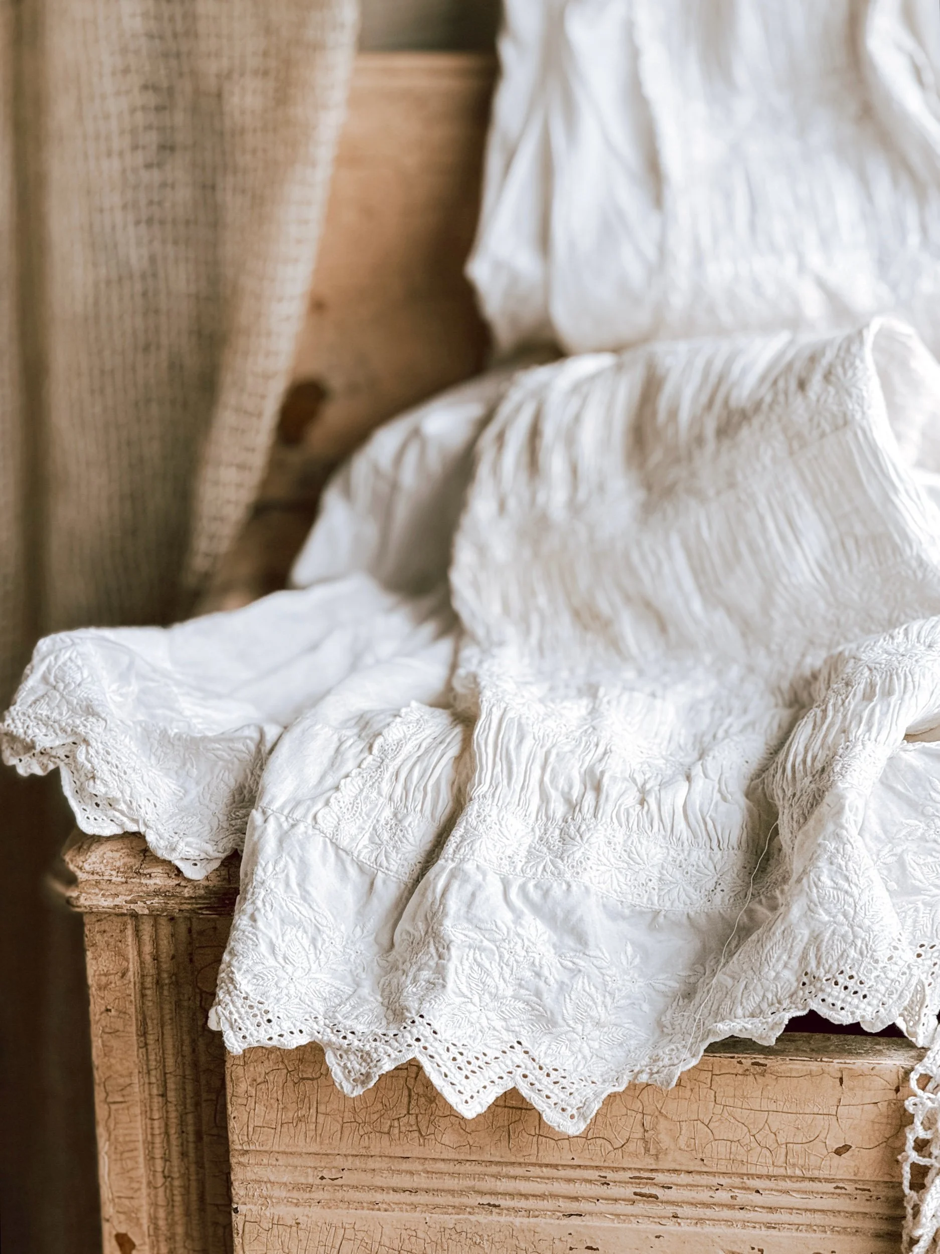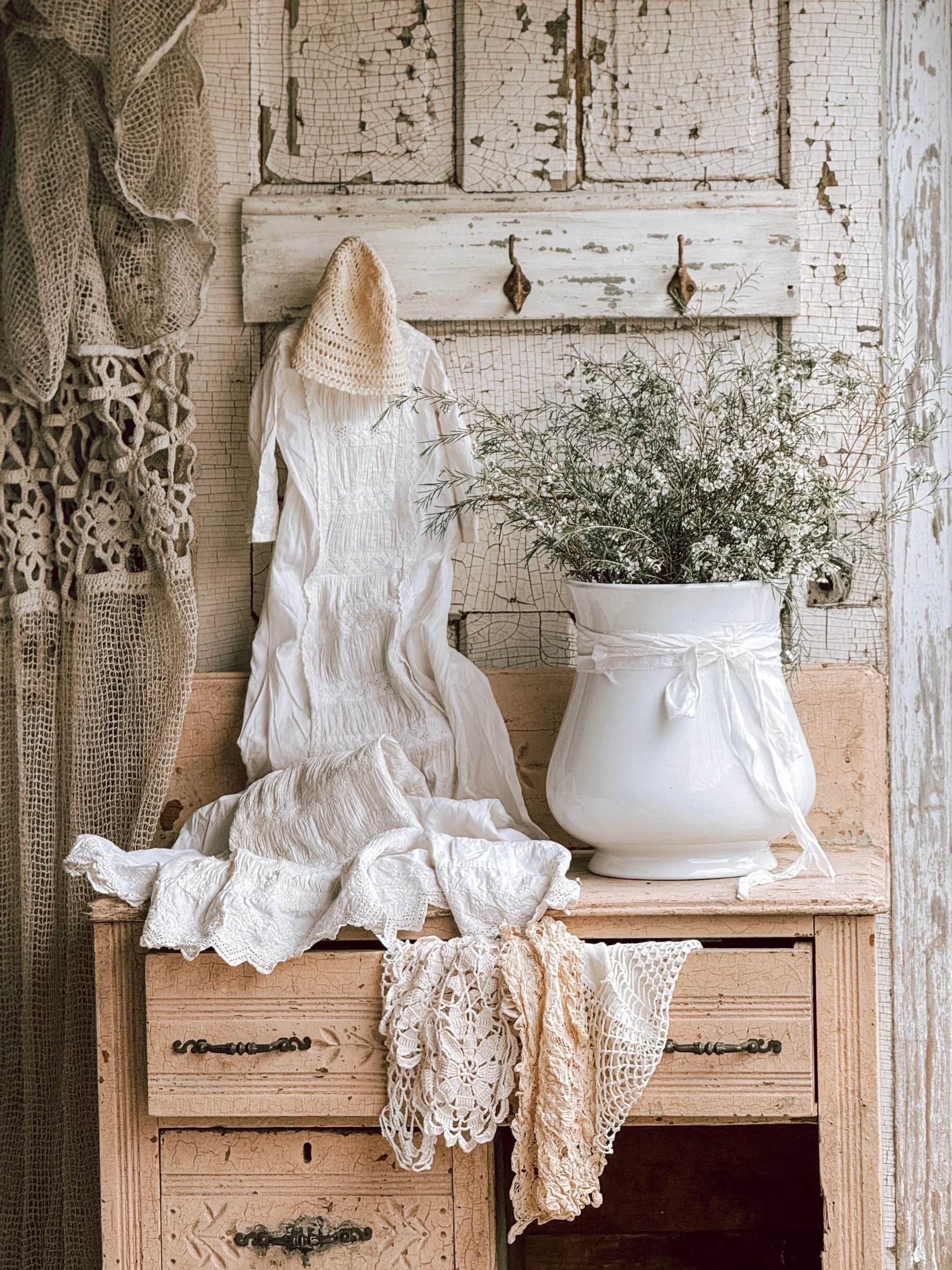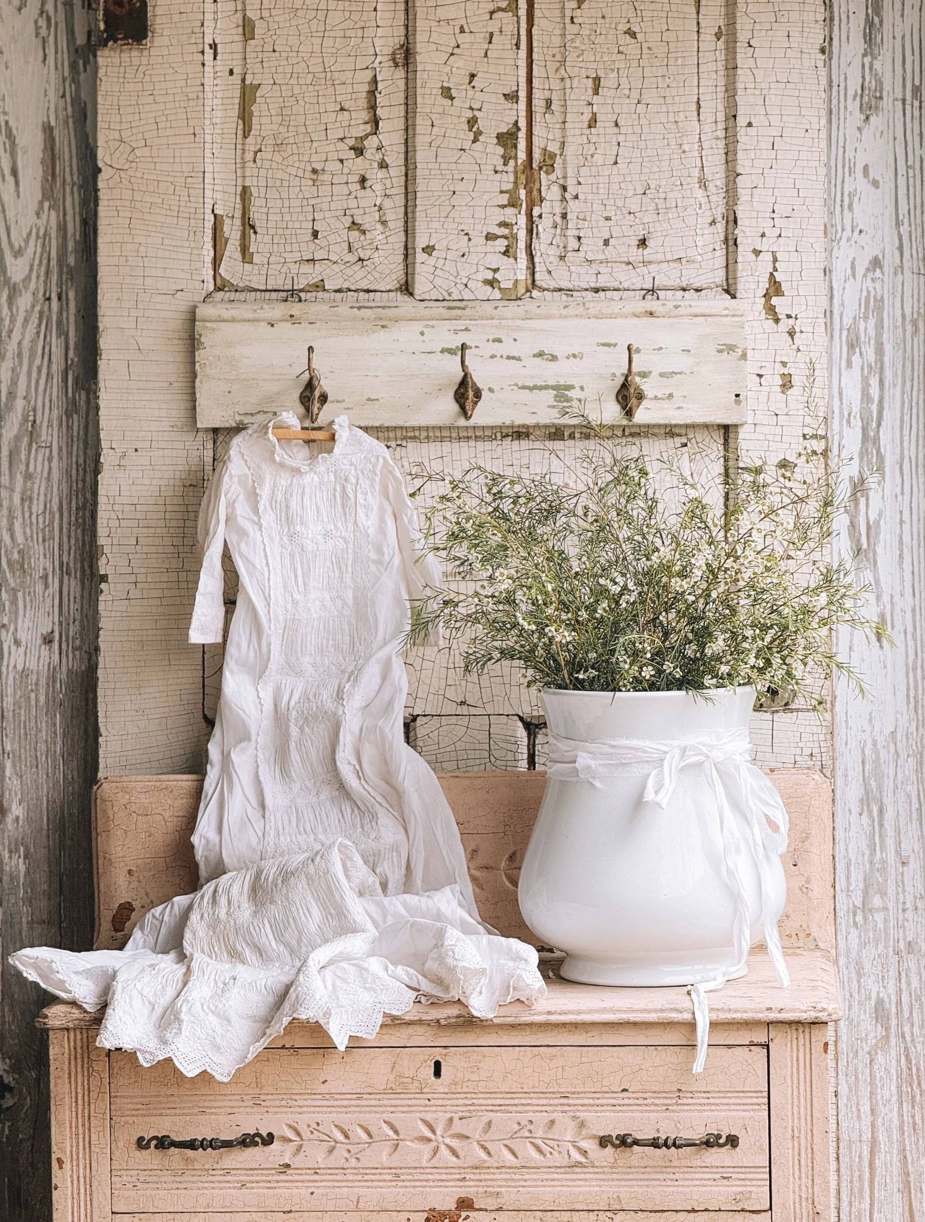 Creamy white glaze with aged patina