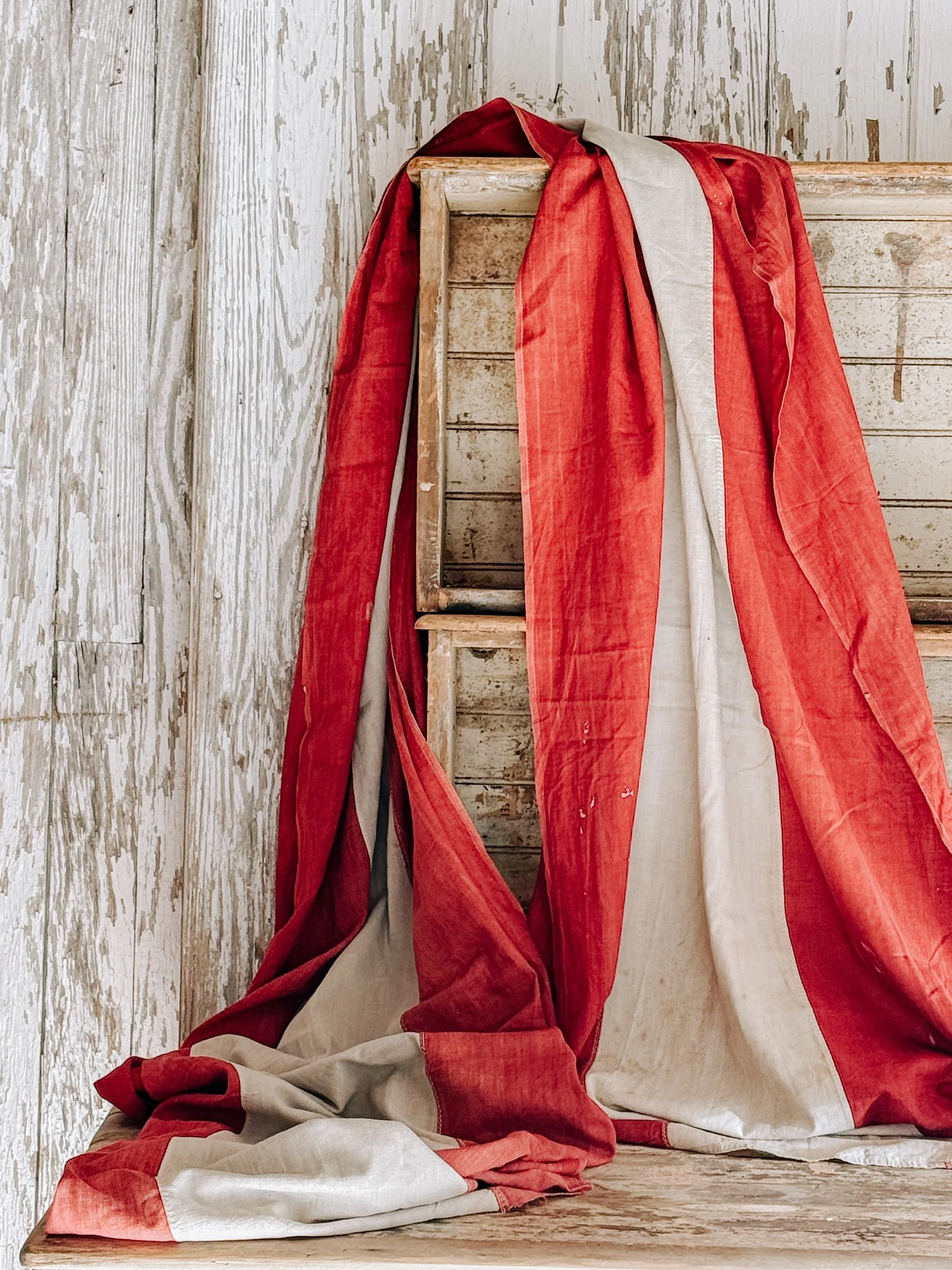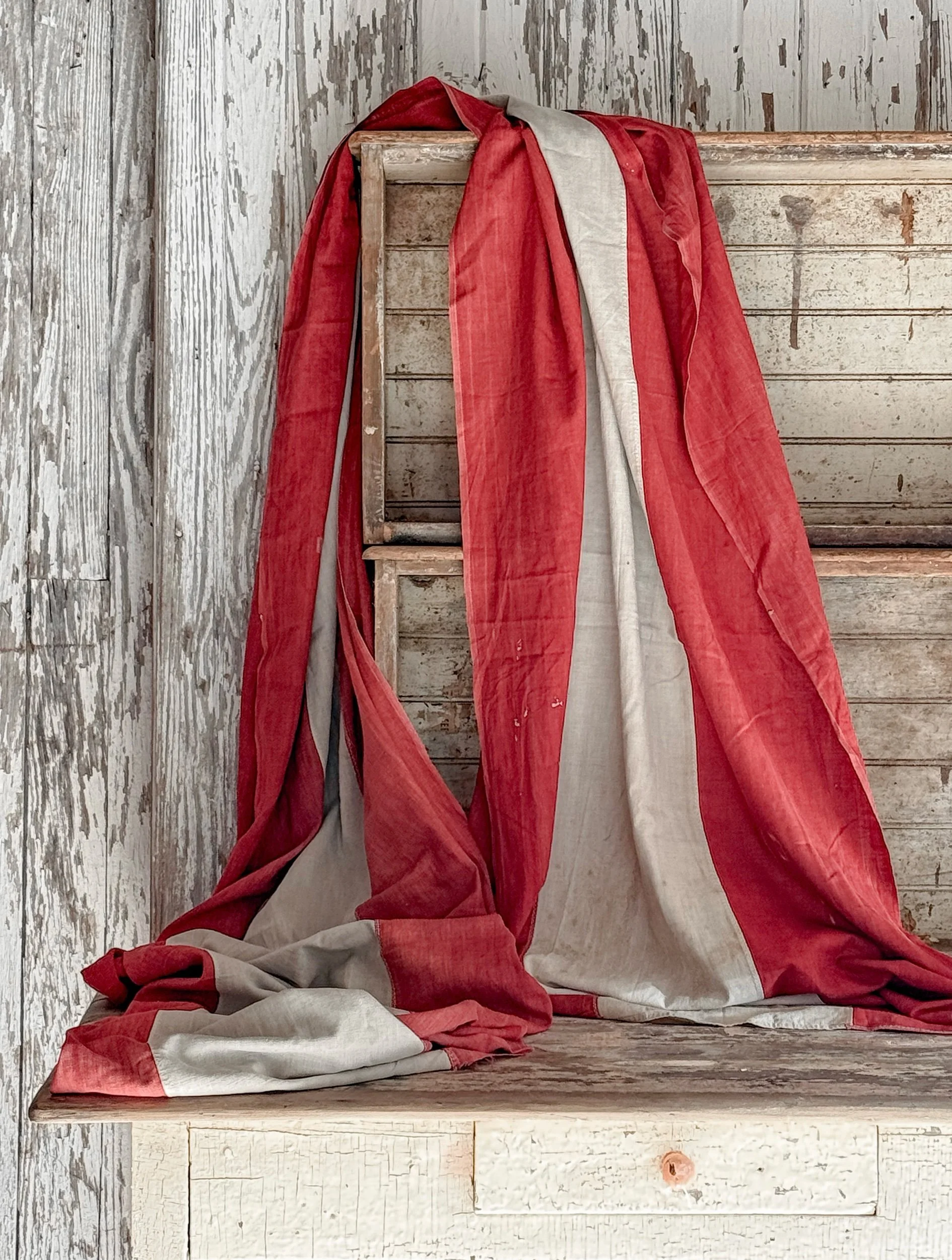 An antique aged festive parade flag brings timeless charm and historical character to any celebration or display. Featuring weathered fabric and faded vibrant colors, this flag tells the story of past festivities with its unique patina and worn texture. Perfect for adding a nostalgic touch to holiday décor, vintage-inspired events, or as a distinctive collector’s piece, the flag’s craftsmanship reflects both artistry and tradition. Incorporate it into your home styling or seasonal design for an authentic, festive ambiance that honors heritage and craftsmanship.