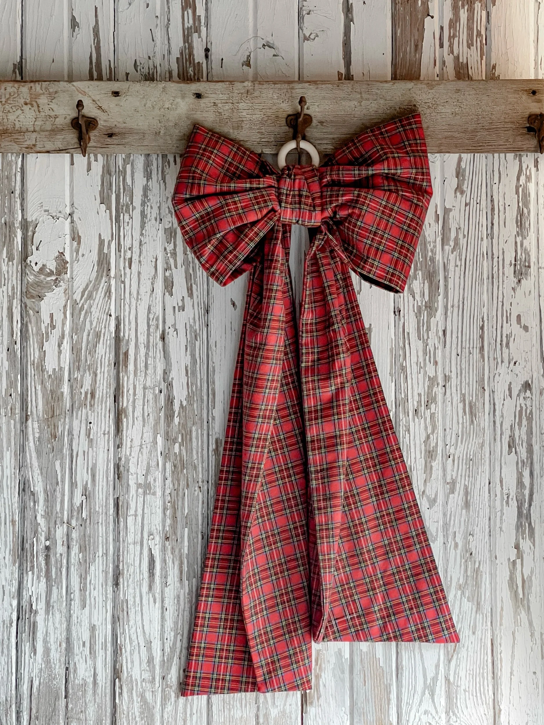 A classic tartan bow, handcrafted with generous loops and long cascading tails — the perfect statement piece for wreaths, garlands, porch greenery, or holiday cabinets.