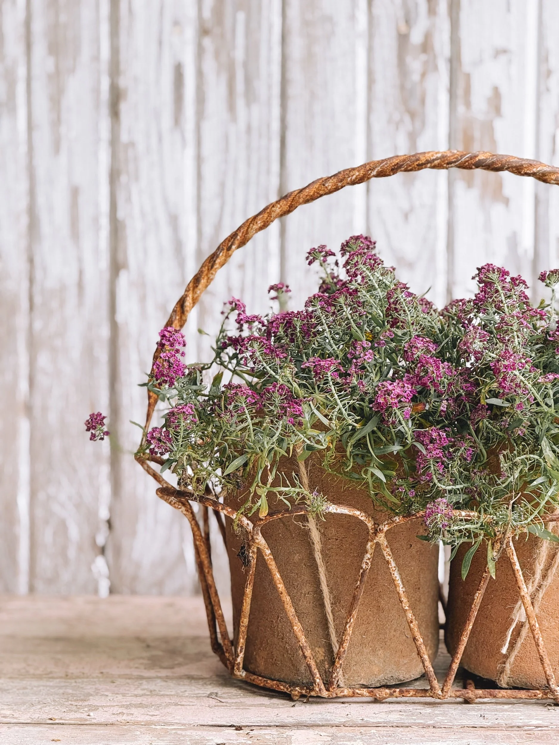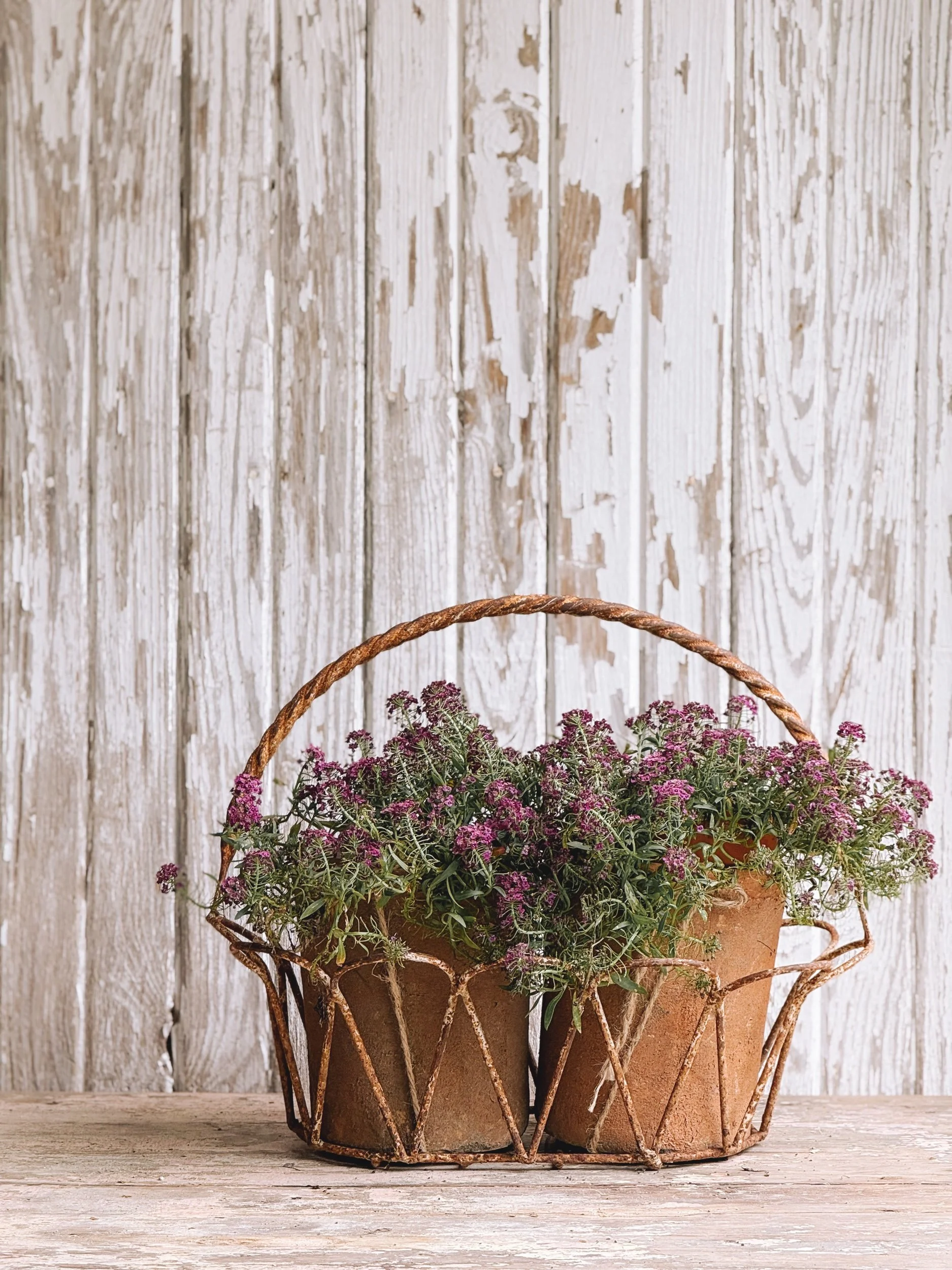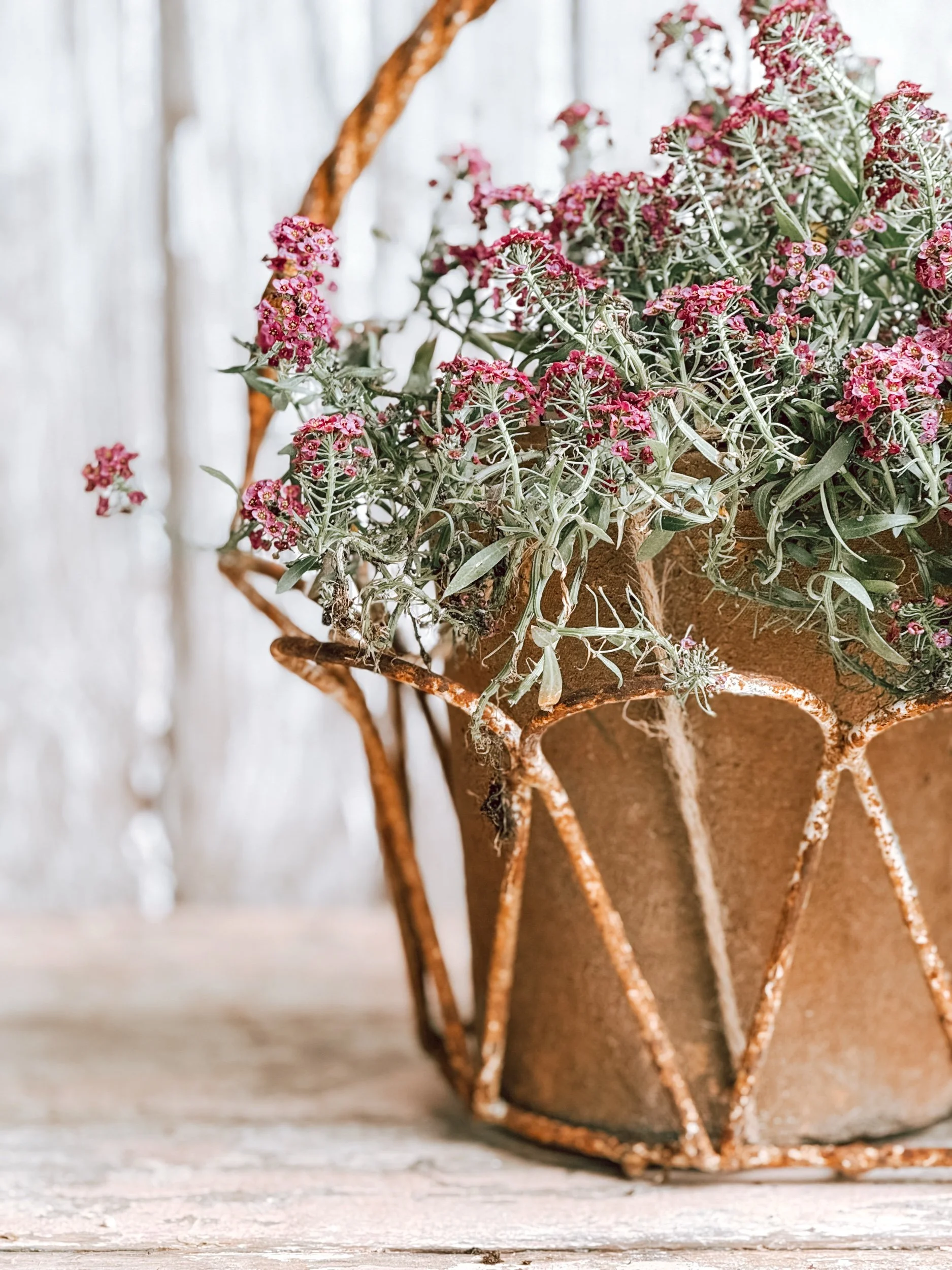 Antique iron planter with an aged patina offers a timeless, rustic charm that complements the warm, earthy tones of terracotta beautifully. The distressed metal surface enhances its vintage appeal while providing a sturdy, weather-resistant container for a variety of plants. Paired with terracotta pots, this combination creates a harmonious balance of texture and color—perfect for both indoor and outdoor spaces seeking an understated, classic look. Ideal for succulents, herbs, or flowering plants, this planter adds character and depth to any garden or interior setting.