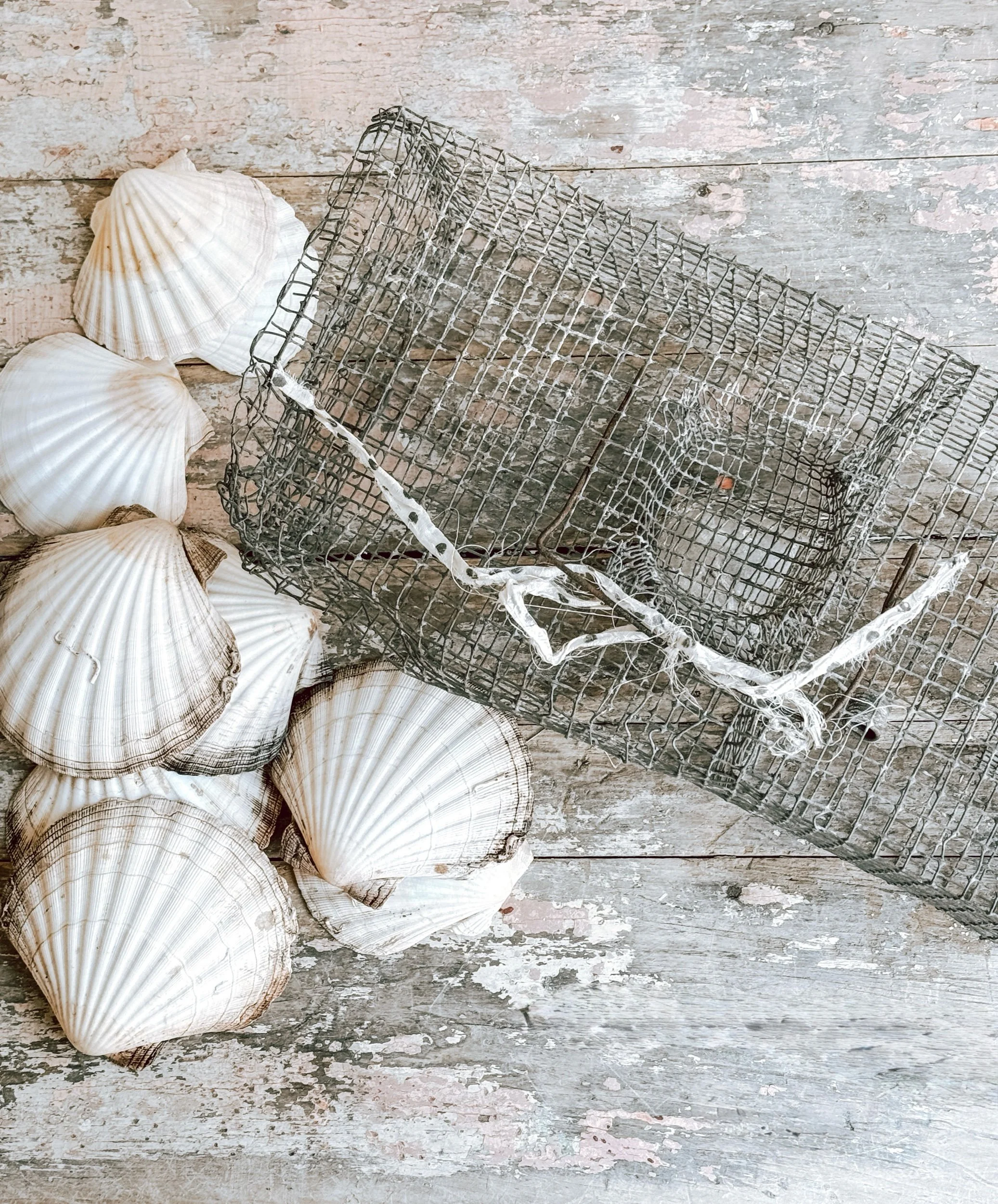 Originally used for crabbing, this piece now serves as a striking decorative object—layer it with shells, tuck it onto a shelf, or use it as a unique vessel for gathered finds.