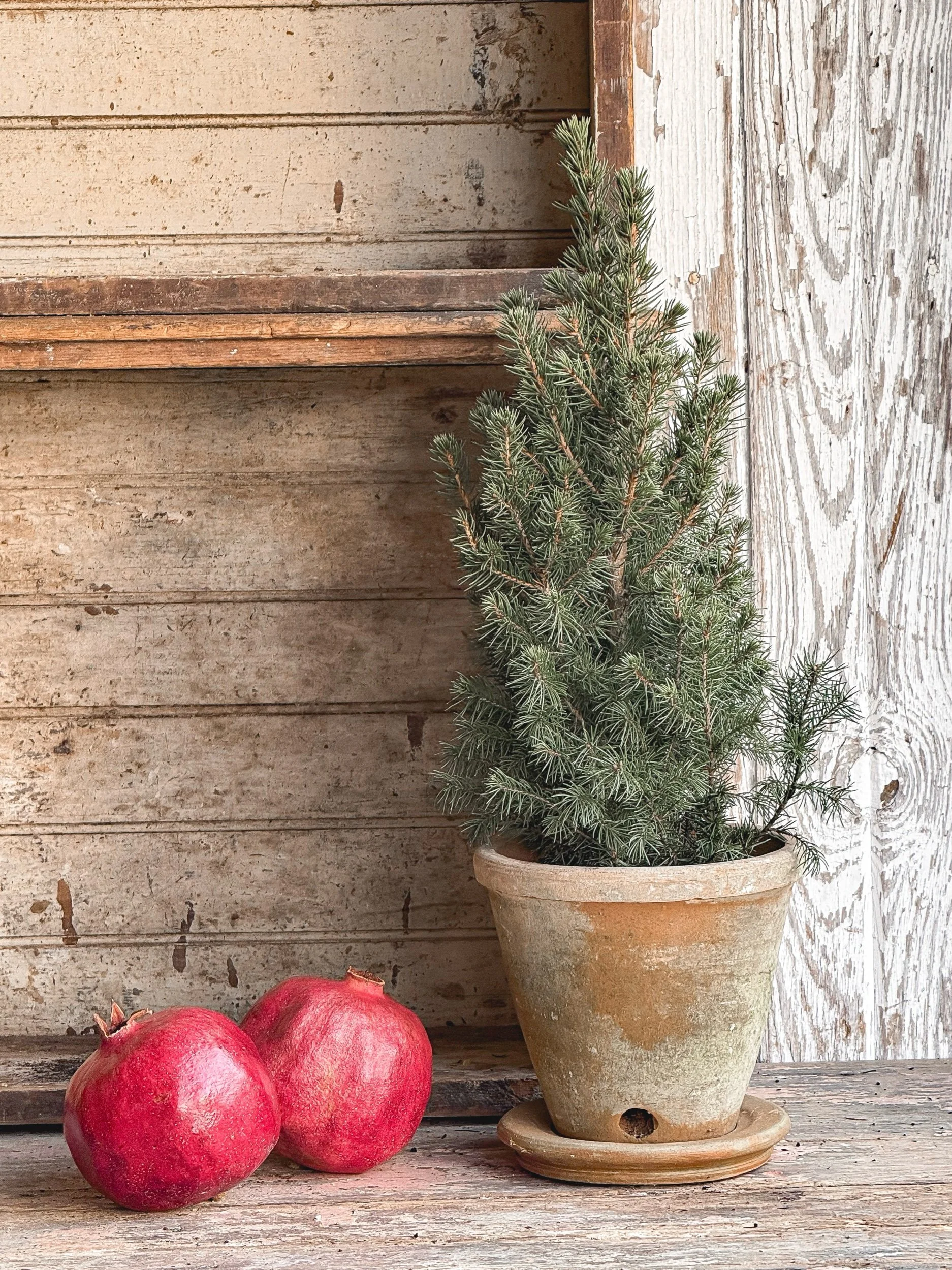 •Naturally aged English mossy terracotta