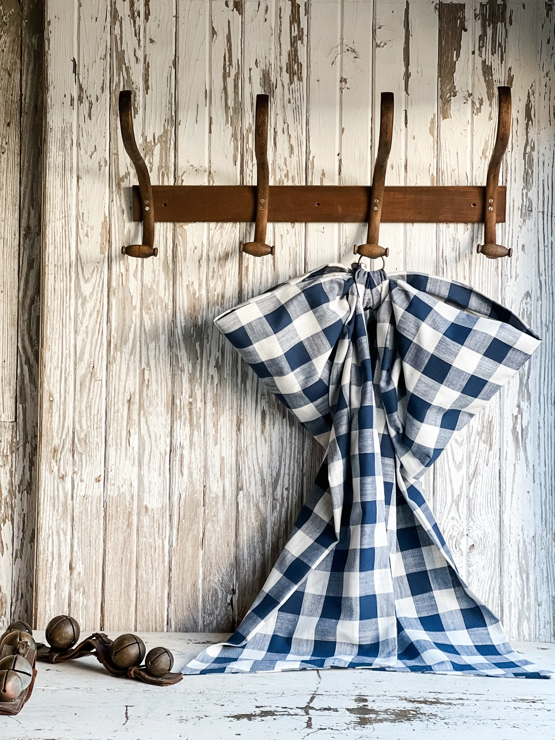 A gorgeous large handmade creamy white & navy Belgian bow, oversized, perfect to add to your holiday garlands, swags, oversized wreaths, tree topper or your favorite door as a simple and festive touch to your home this holiday season. Made to order. Antique French brass ring included
