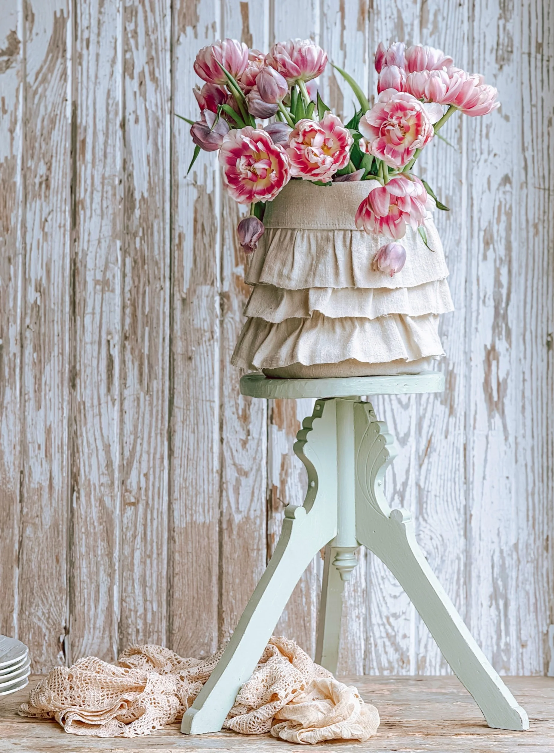 Perfect for elevating a favorite plant, a gathered bouquet, or a cherished vessel—this stand adds height and softness to any vignette. Style it in a sunlit corner, layered among linens and florals, or let it stand alone as a sculptural piece in a calm, collected space.