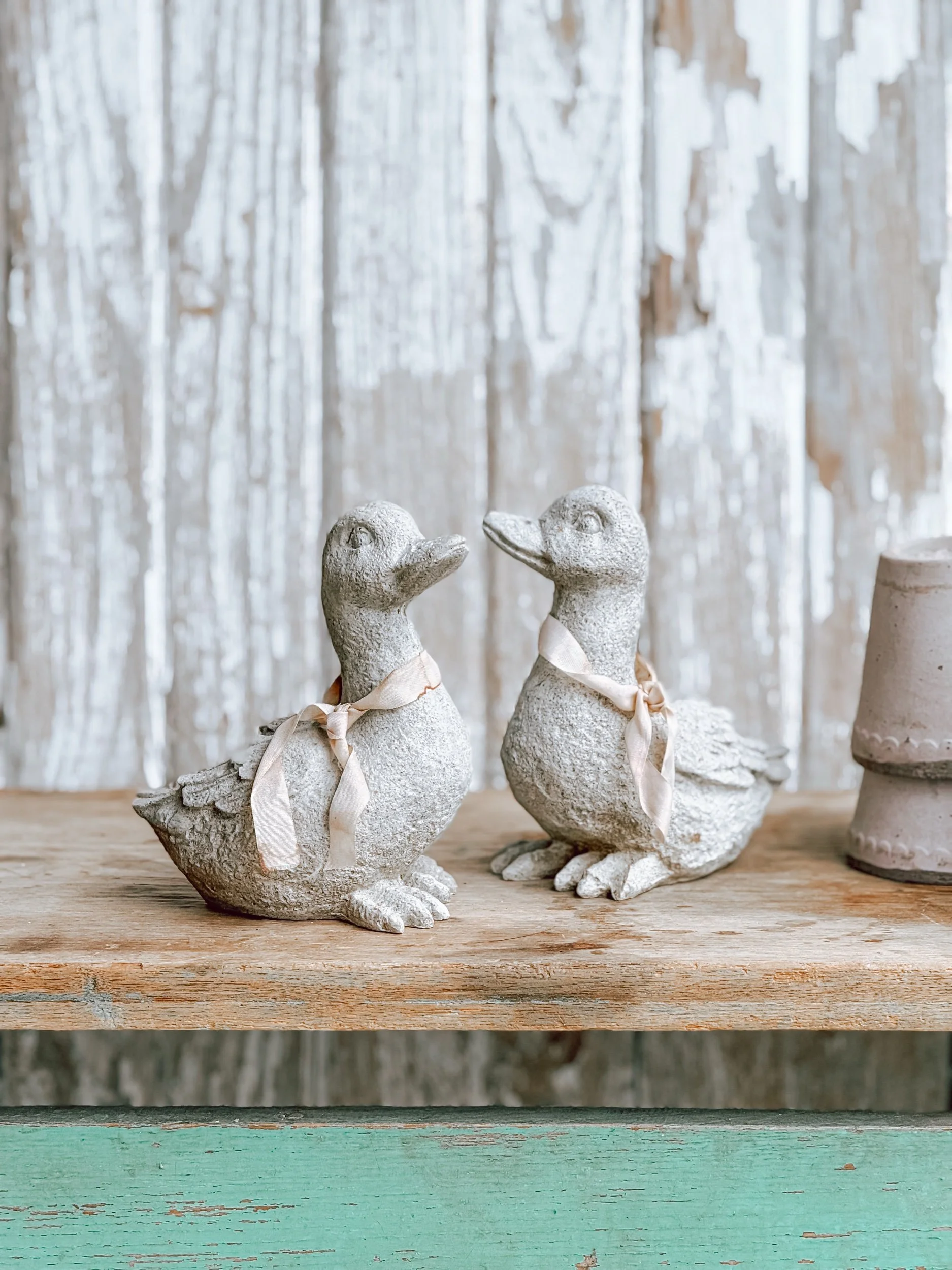 A quietly charming piece with the most beautiful timeworn pale green finish, softened by years and gentle wear. The aged patina reveals hints of its history, with subtle chipping and character that only time can create. Its delicate silhouette and scalloped detailing give it a light, almost airy presence despite its sturdy form.