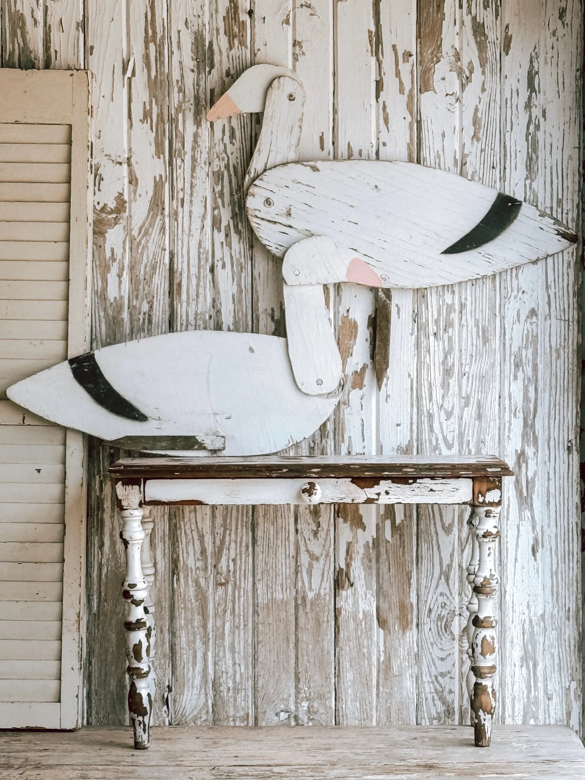 A charming vintage birdhouse with a softly weathered finish and gentle, timeworn patina.