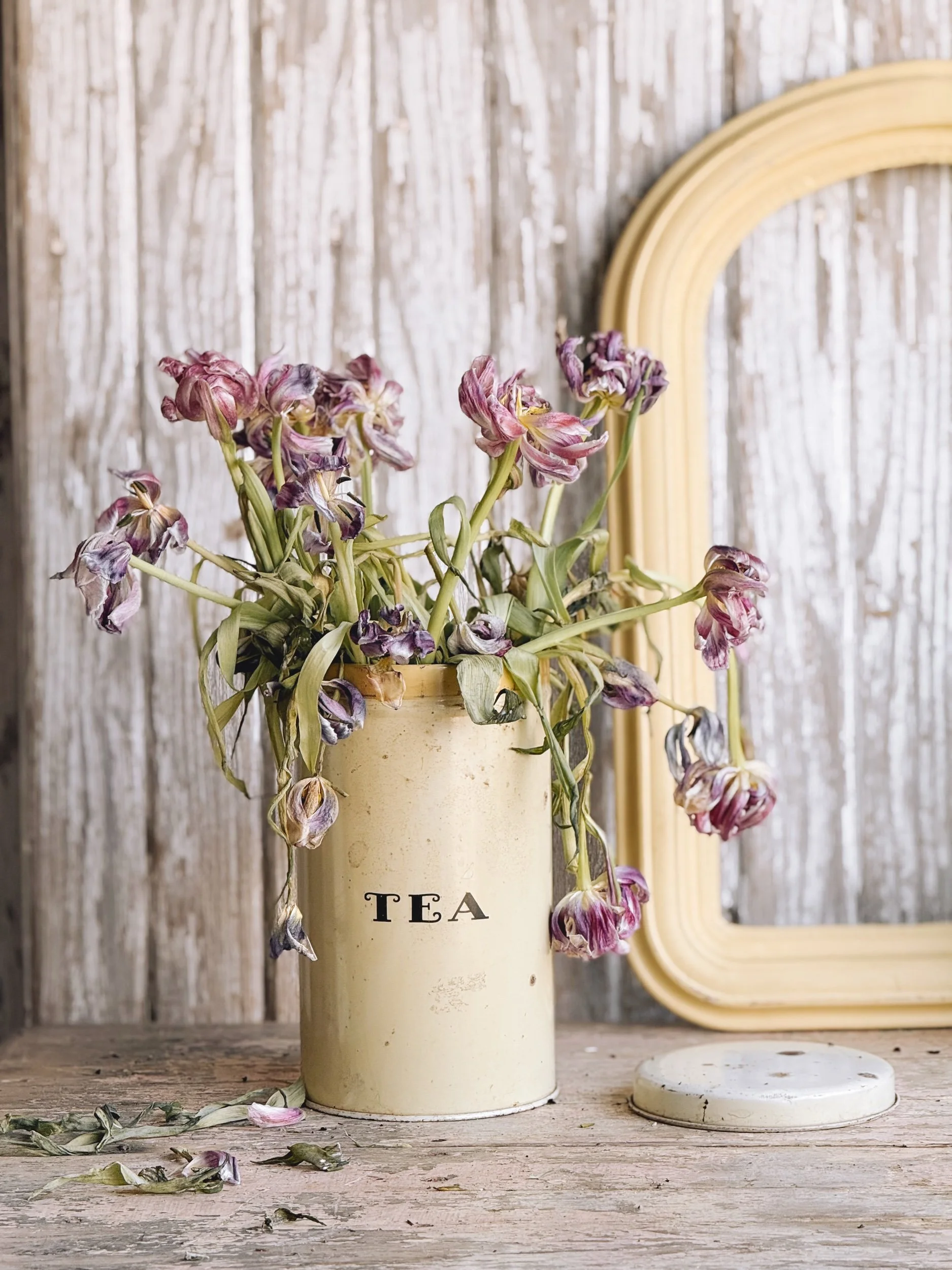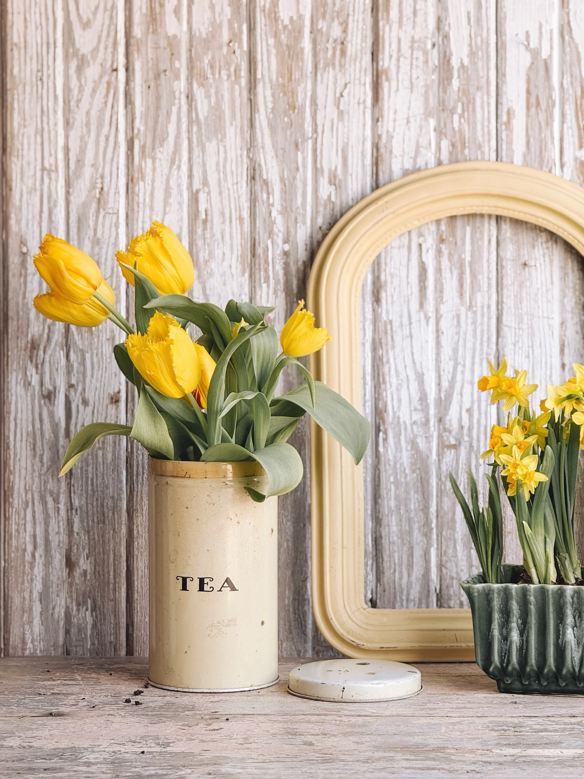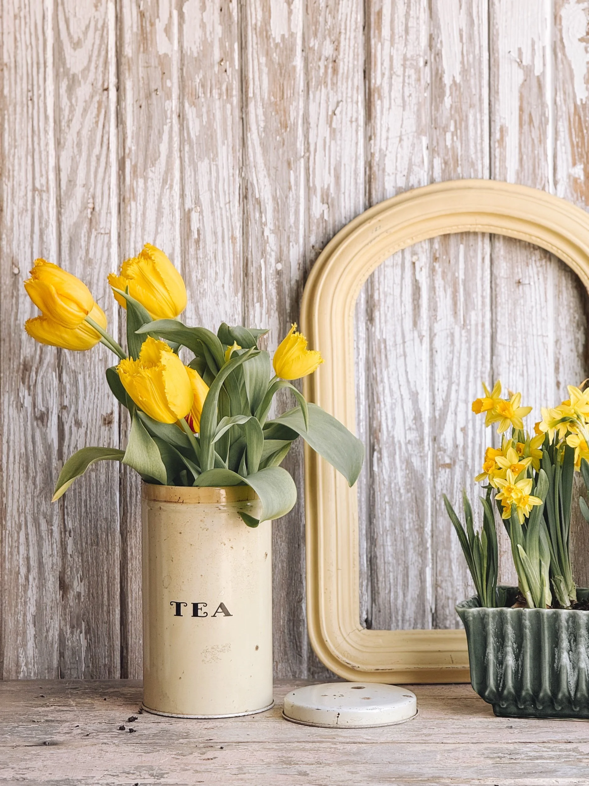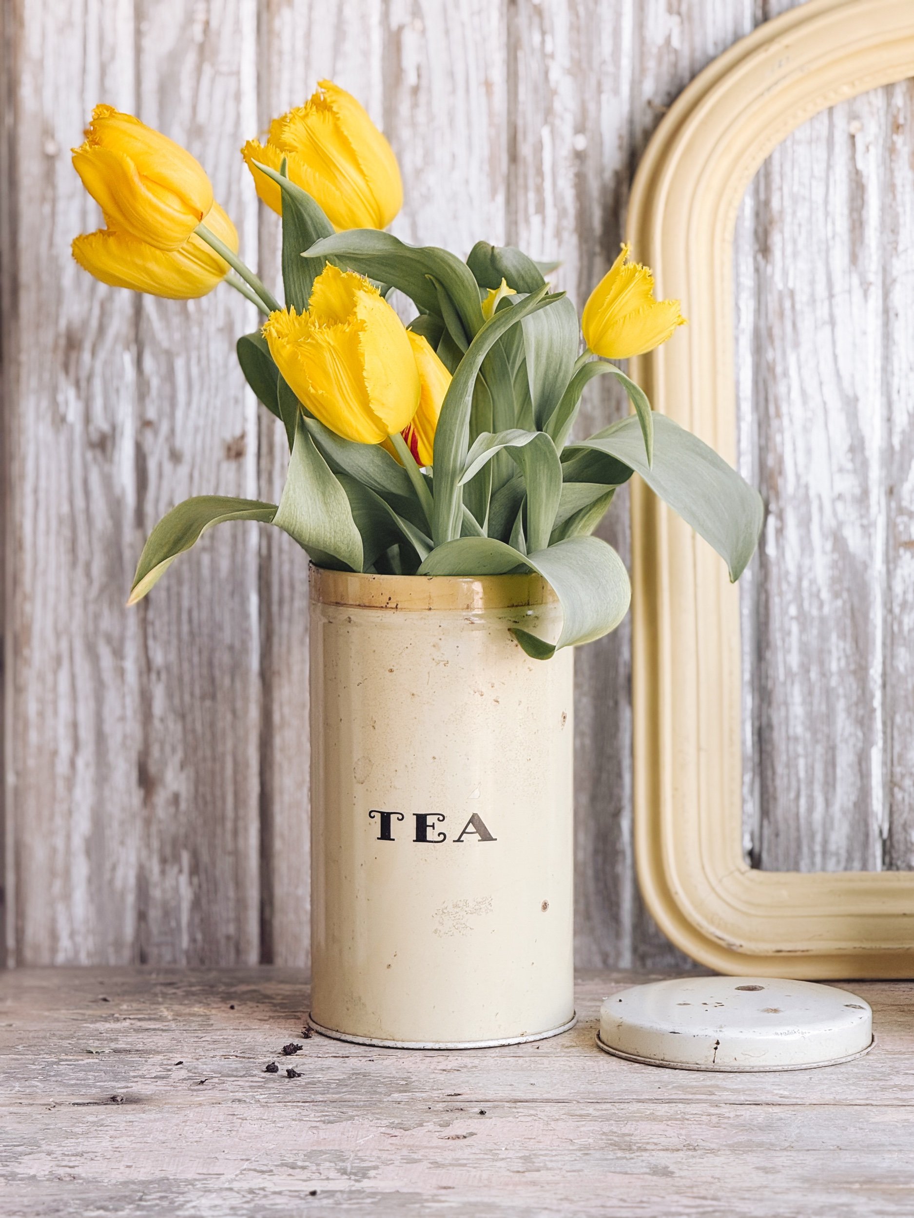 A softly aged tea tin in the most beautiful creamy tone, finished with simple black lettering that feels both timeless and quietly striking.