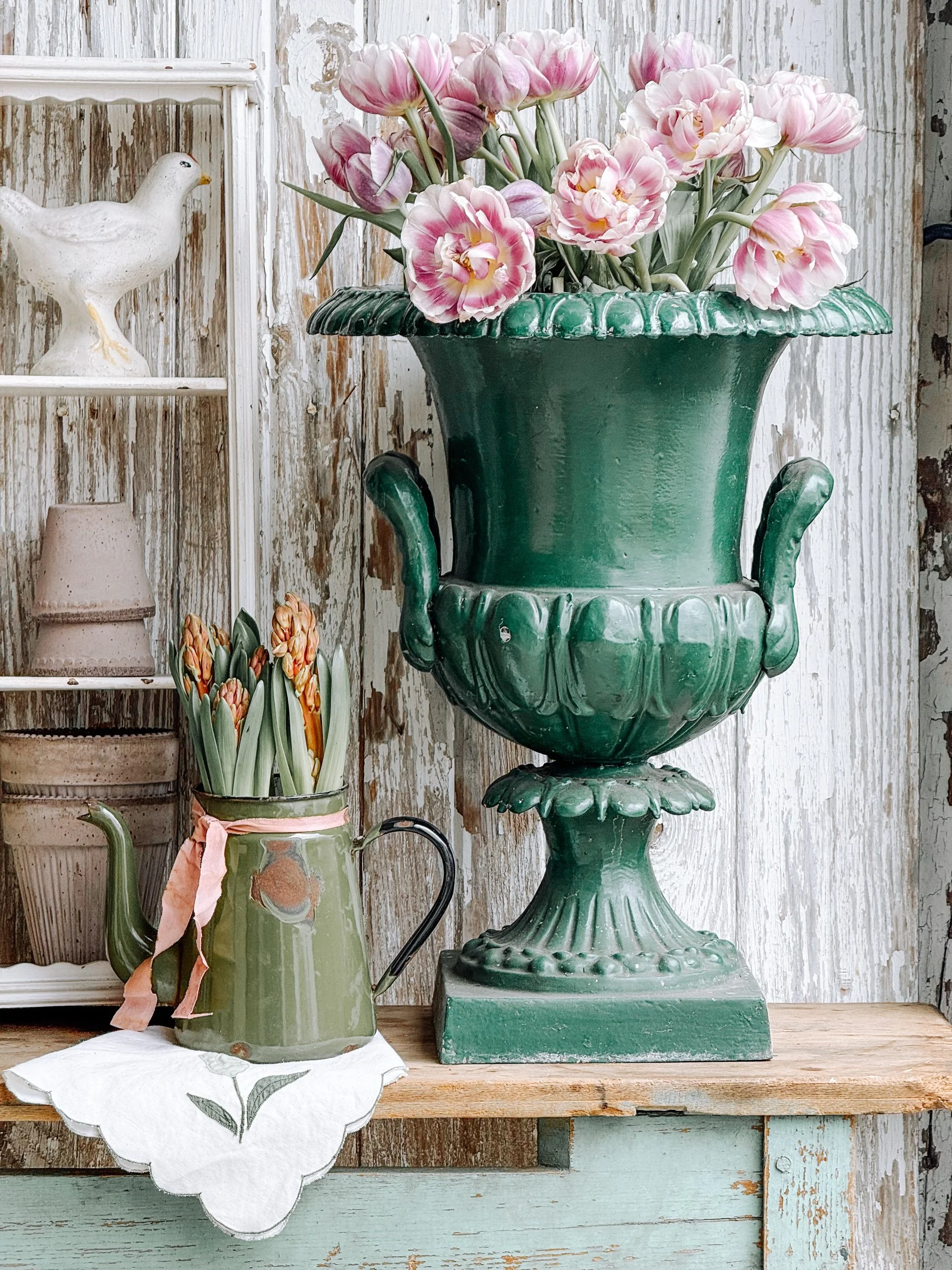 Perfect for housing fresh blooms, potted bulbs, or trailing greens, whether placed on a porch, in a greenhouse, or styled indoors as a statement focal point.