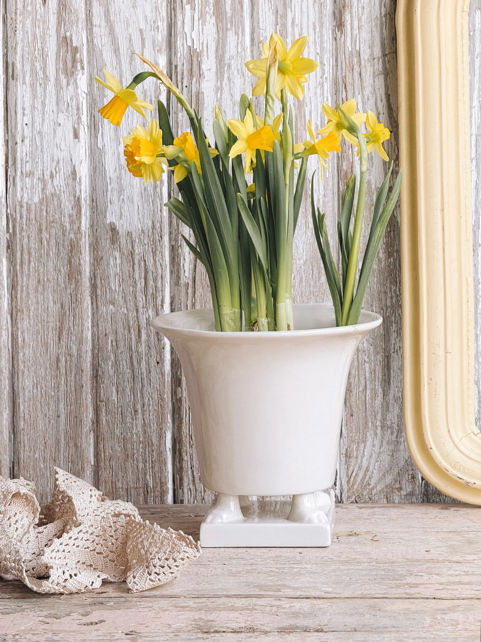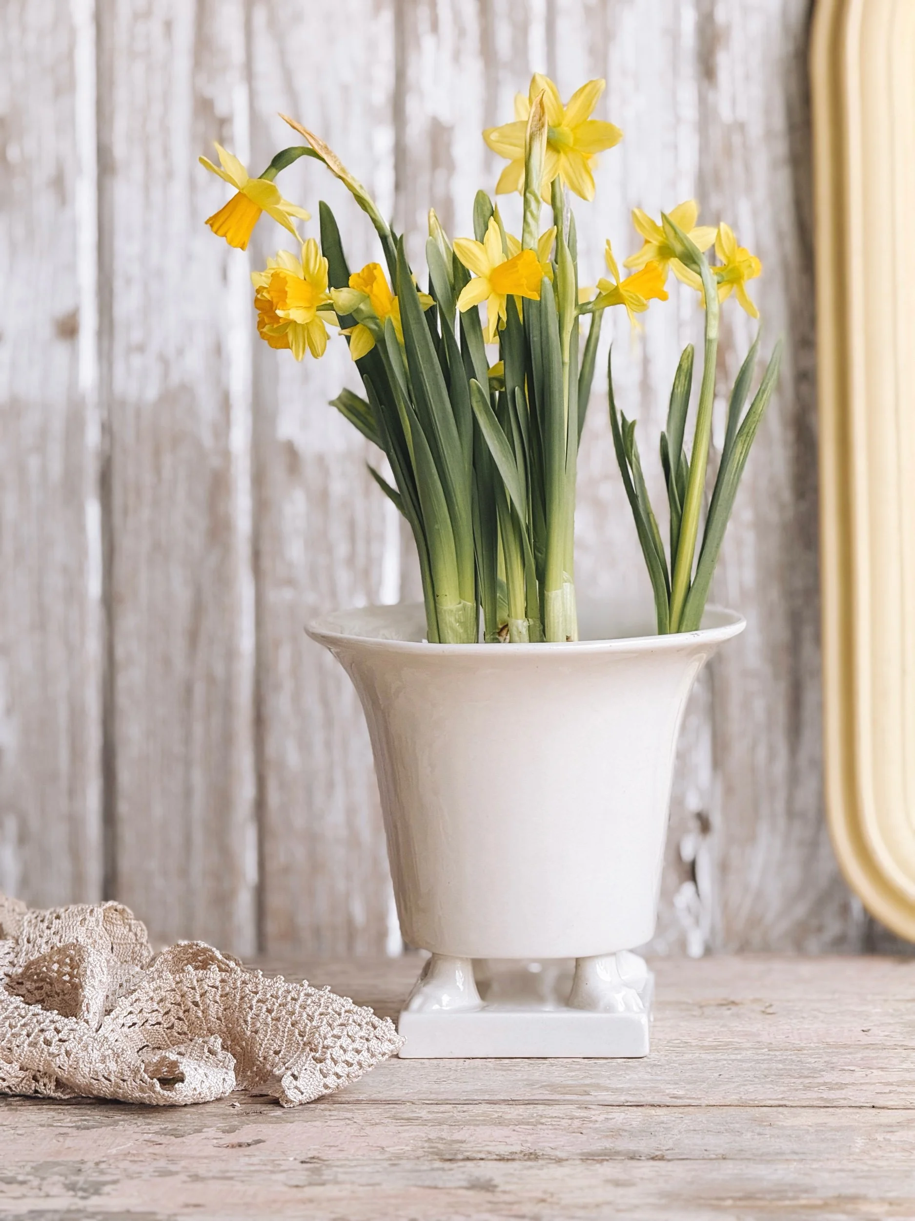 Vintage Creamy White Planter with Lion’s Paw Feet