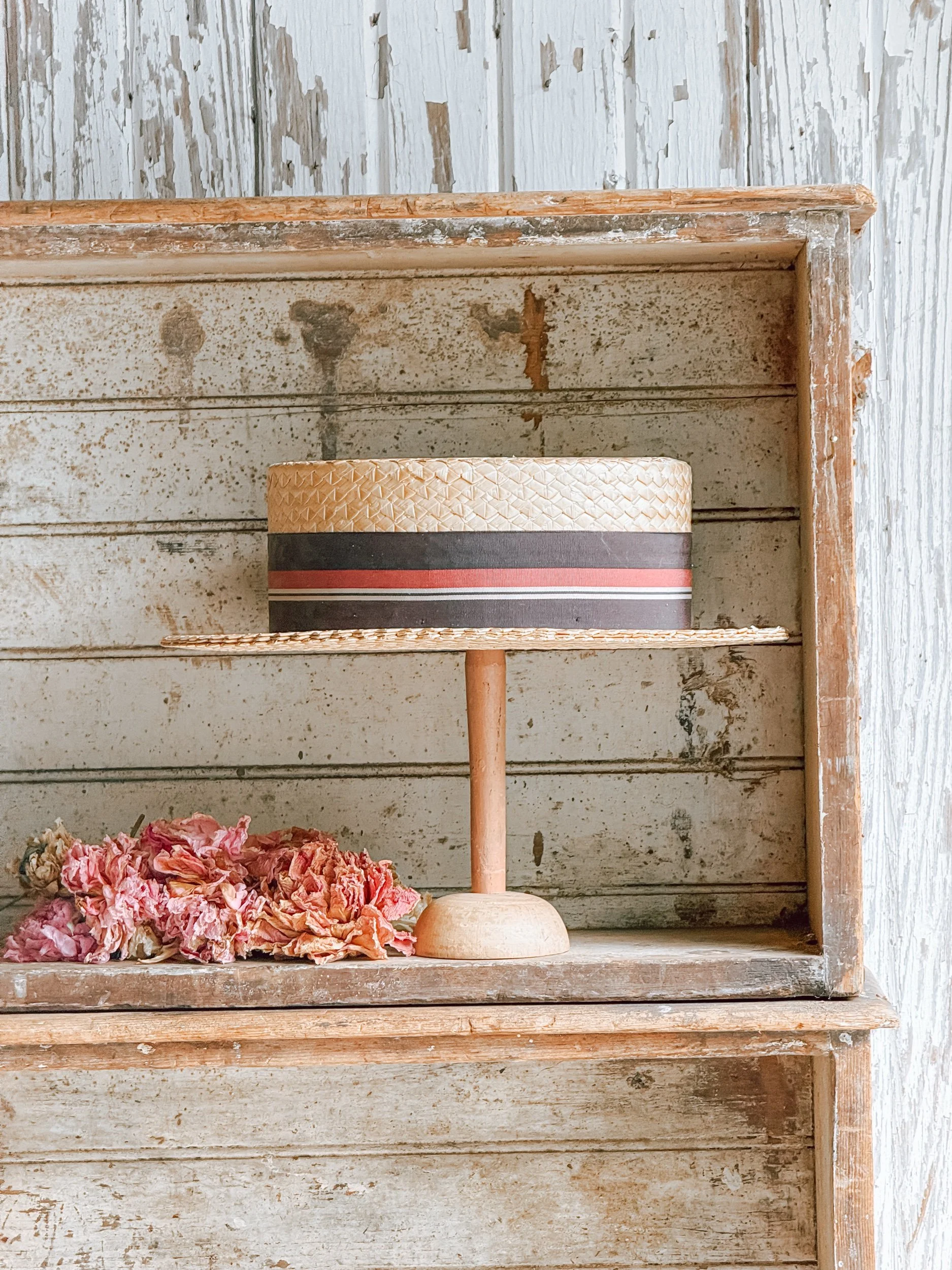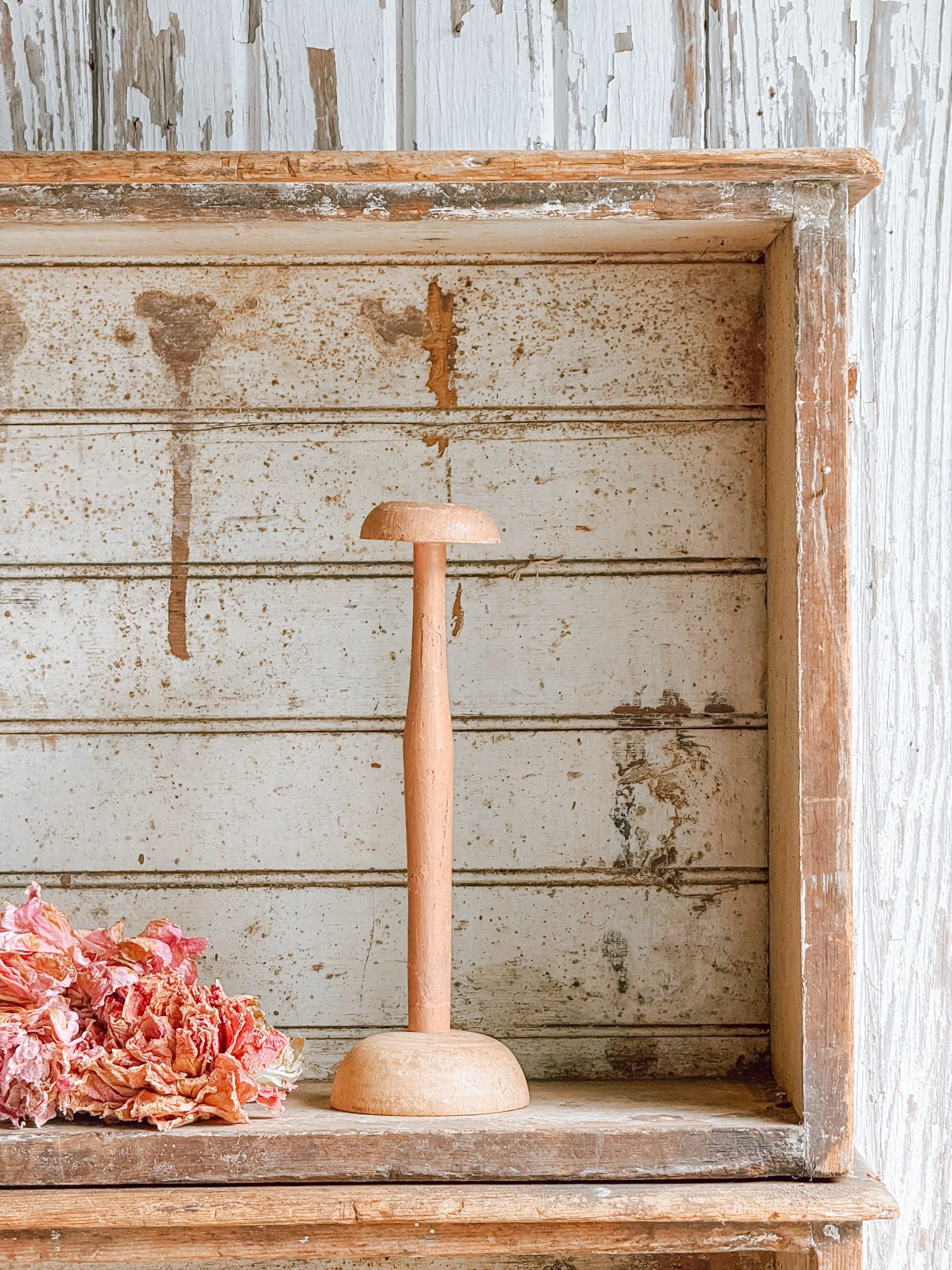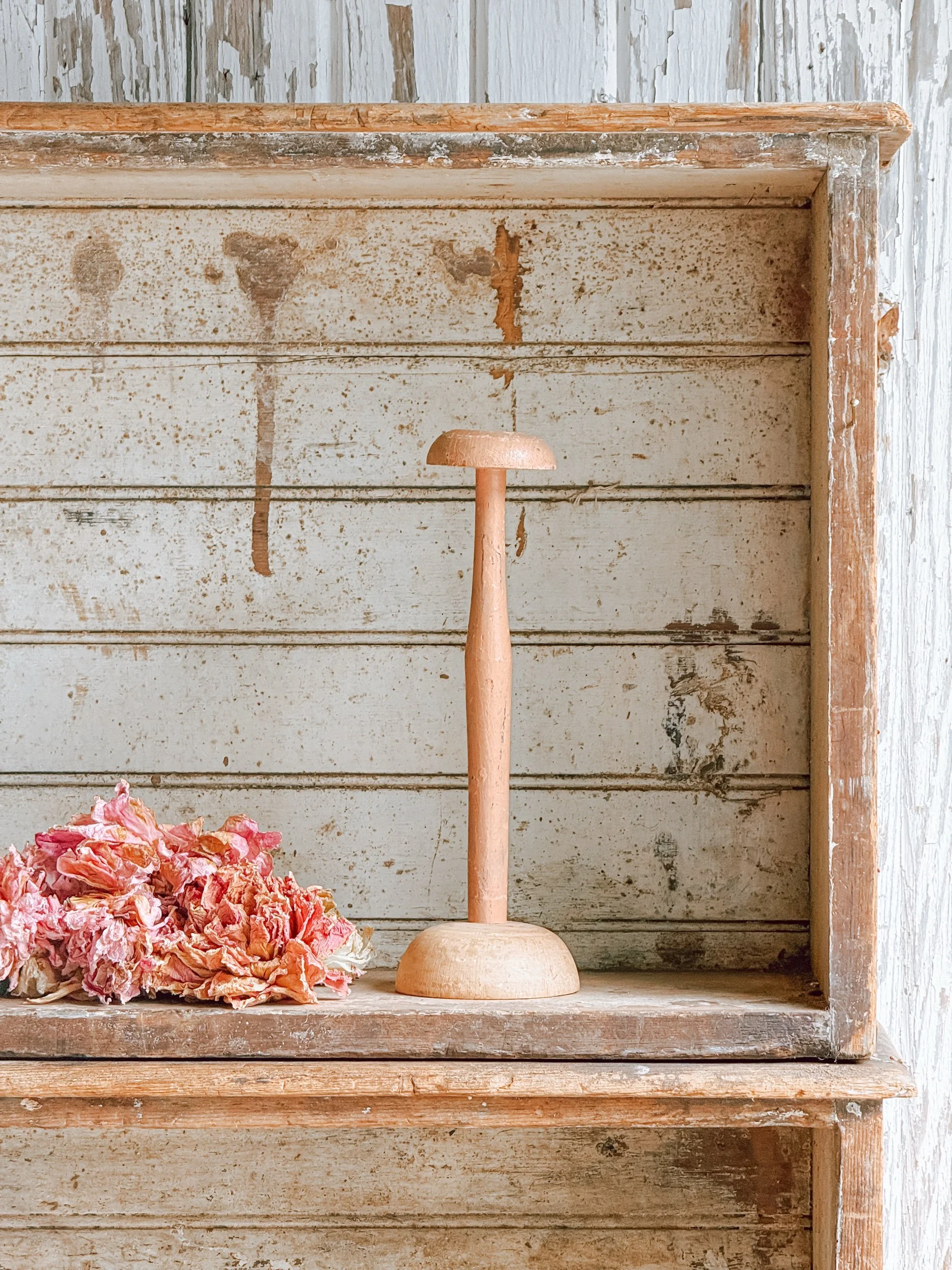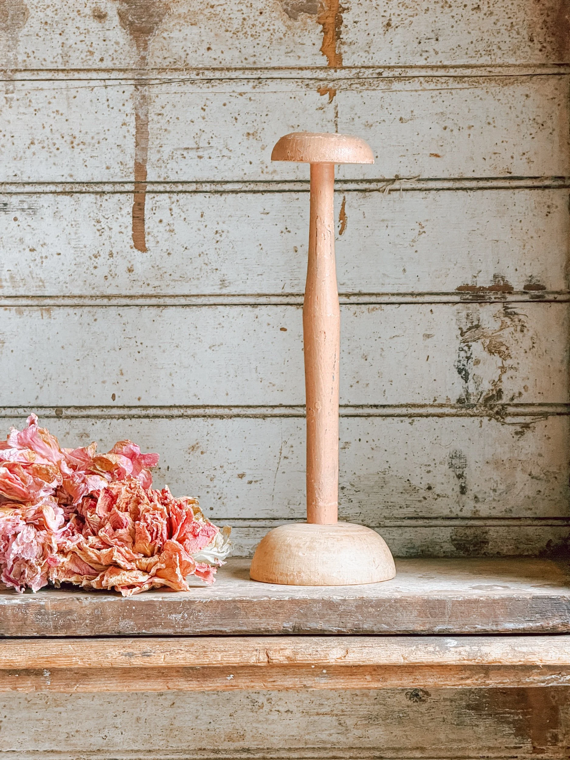 This antique French hat stand features a delicate pink wood finish, combining vintage charm with subtle elegance. Its slender, curved arms and turned wooden spindle design reflect classic French craftsmanship, ideal for displaying hats, scarves, or lightweight accessories. Perfect as a statement piece in an entryway or bedroom, this hat stand adds a touch of timeless sophistication and soft color to your home décor.