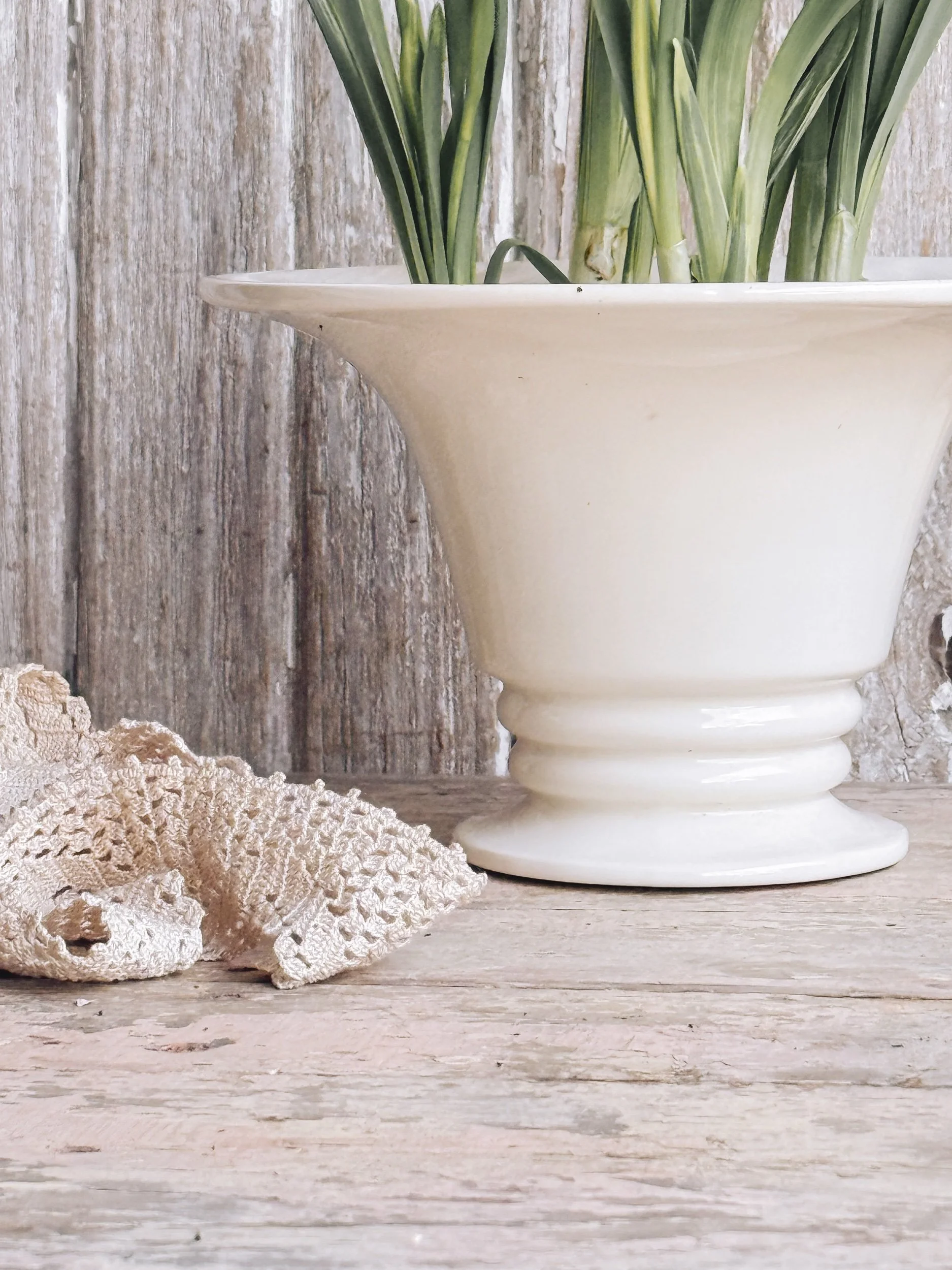 Vintage Creamy White Pedestal Planter