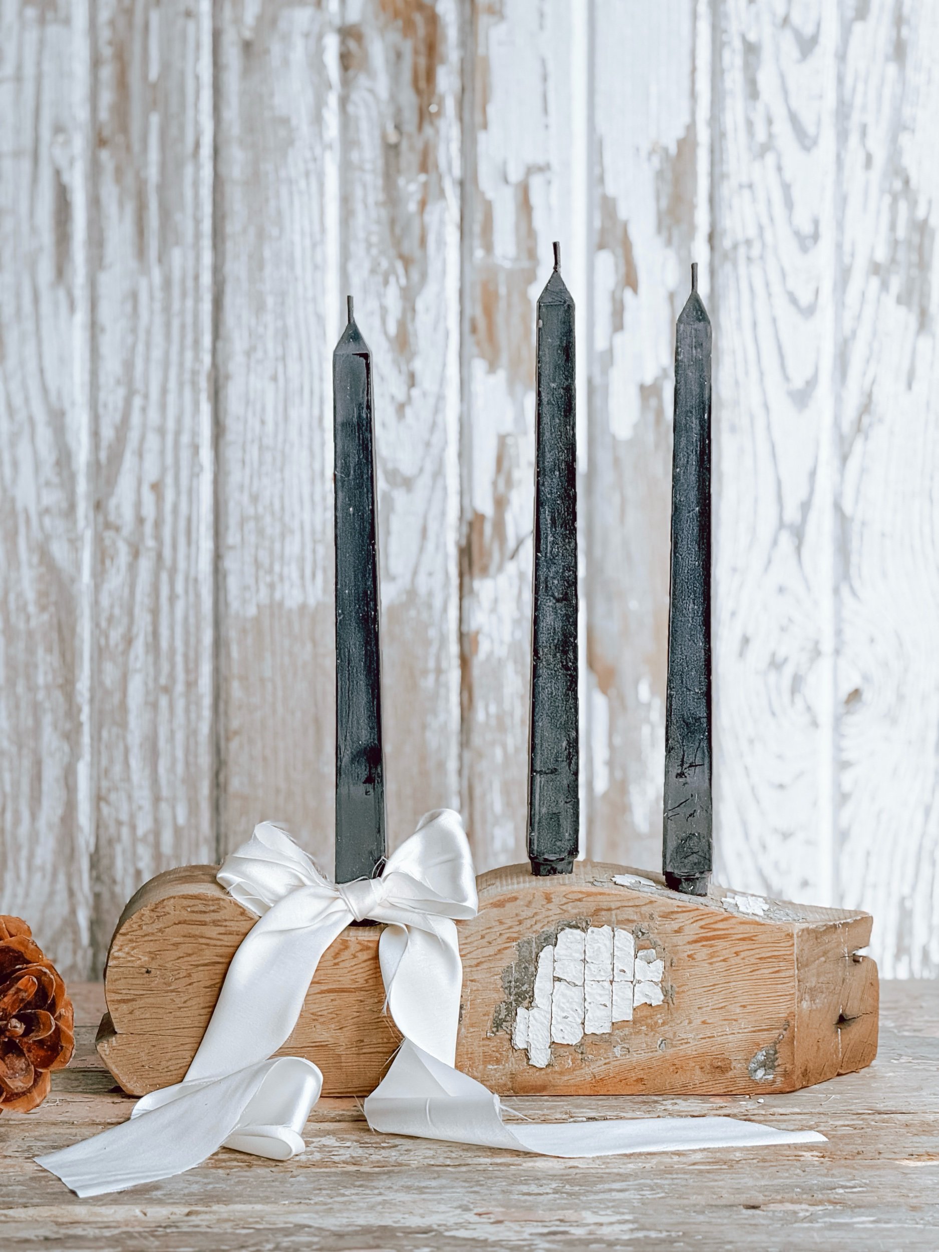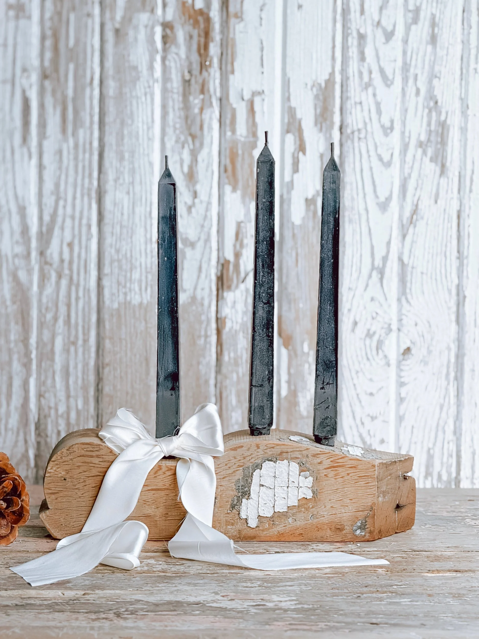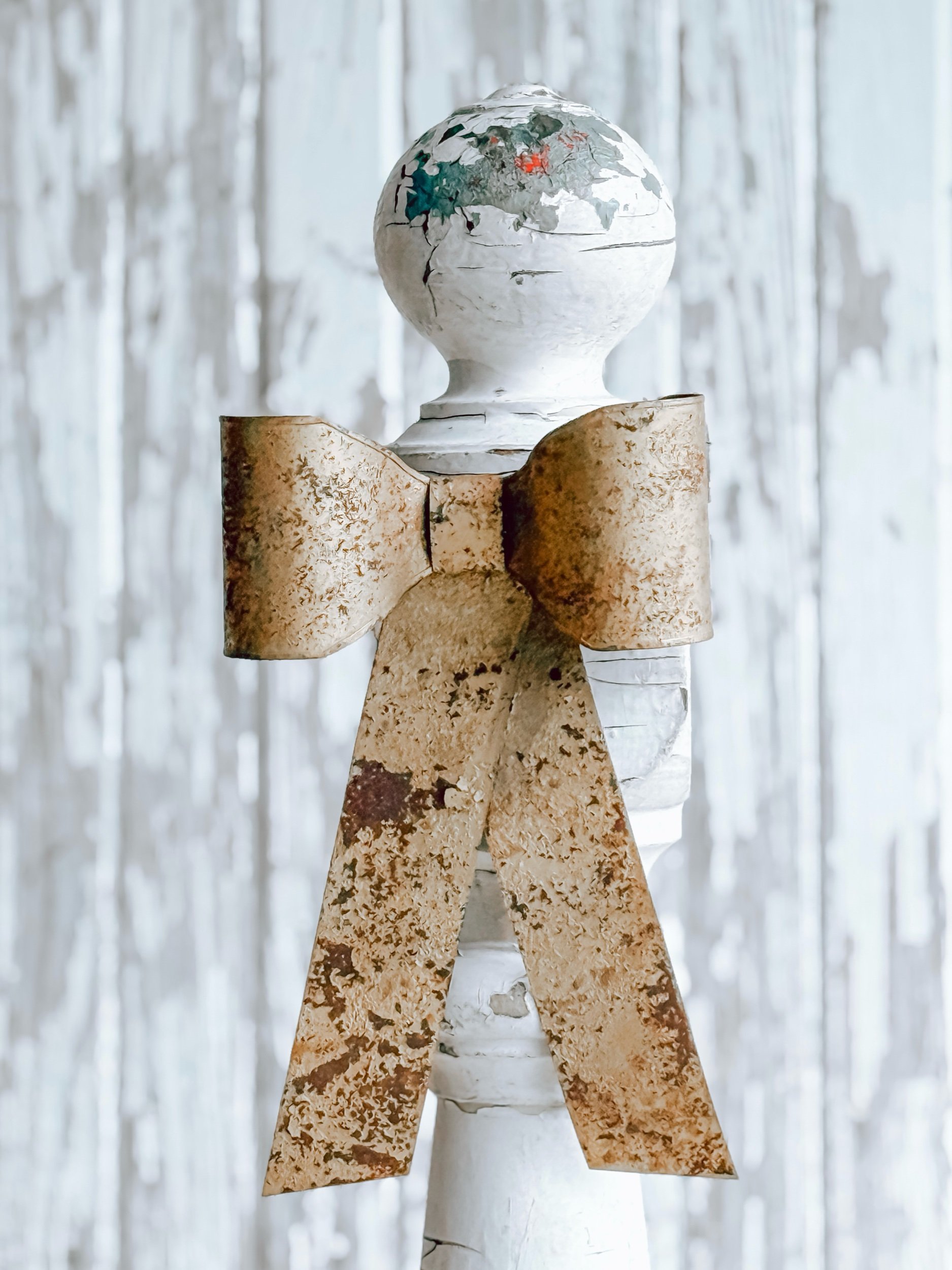 Finished with a weathered gold-toned metal bow, the post becomes a sculptural winter accent—elegant yet grounded. Its tall form makes it perfect for floor styling, entryway moments, holiday vignettes, or as a dramatic statement in a collected interior.