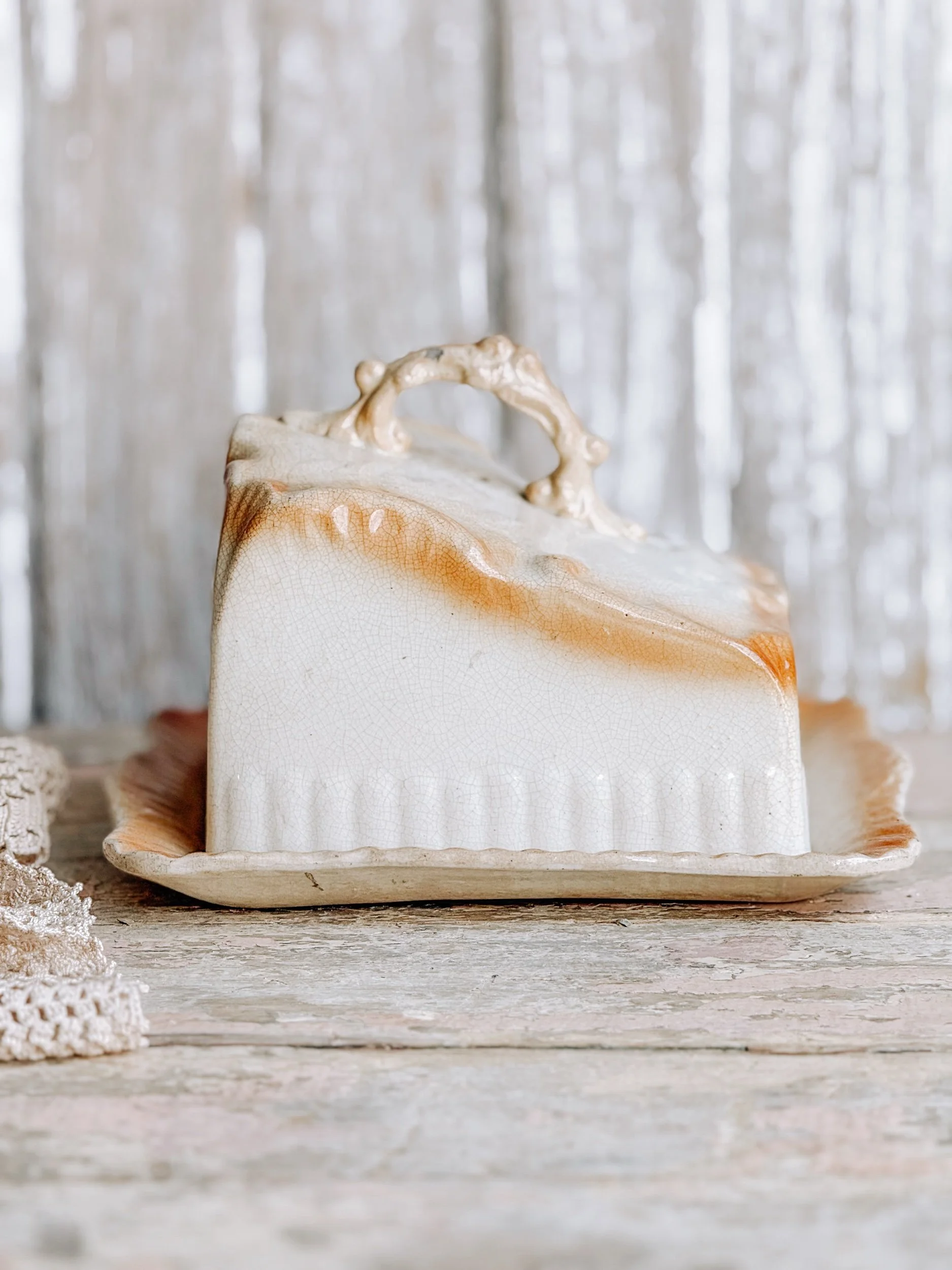 Antique European covered cheese dish
