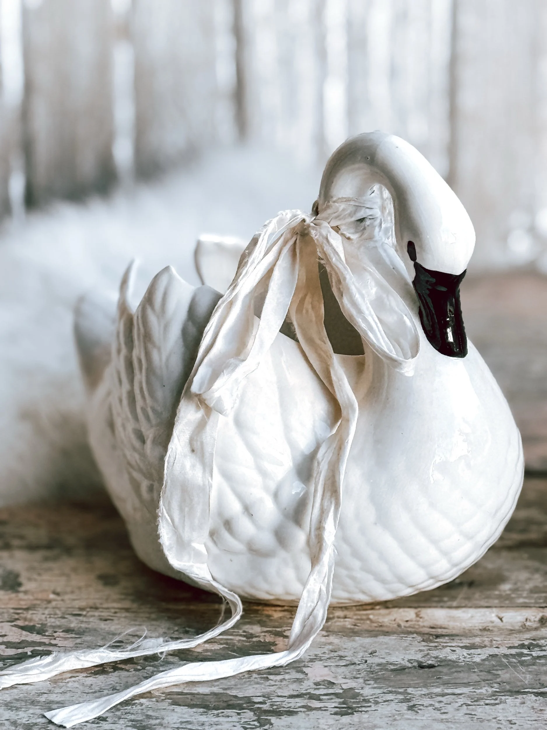 Lightweight and ethereal, the feathers create gentle movement and an airy silhouette. The wrap drapes effortlessly across the shoulders and is equally stunning styled on a dress form, layered over a chair, or used as a romantic winter vignette accent.
