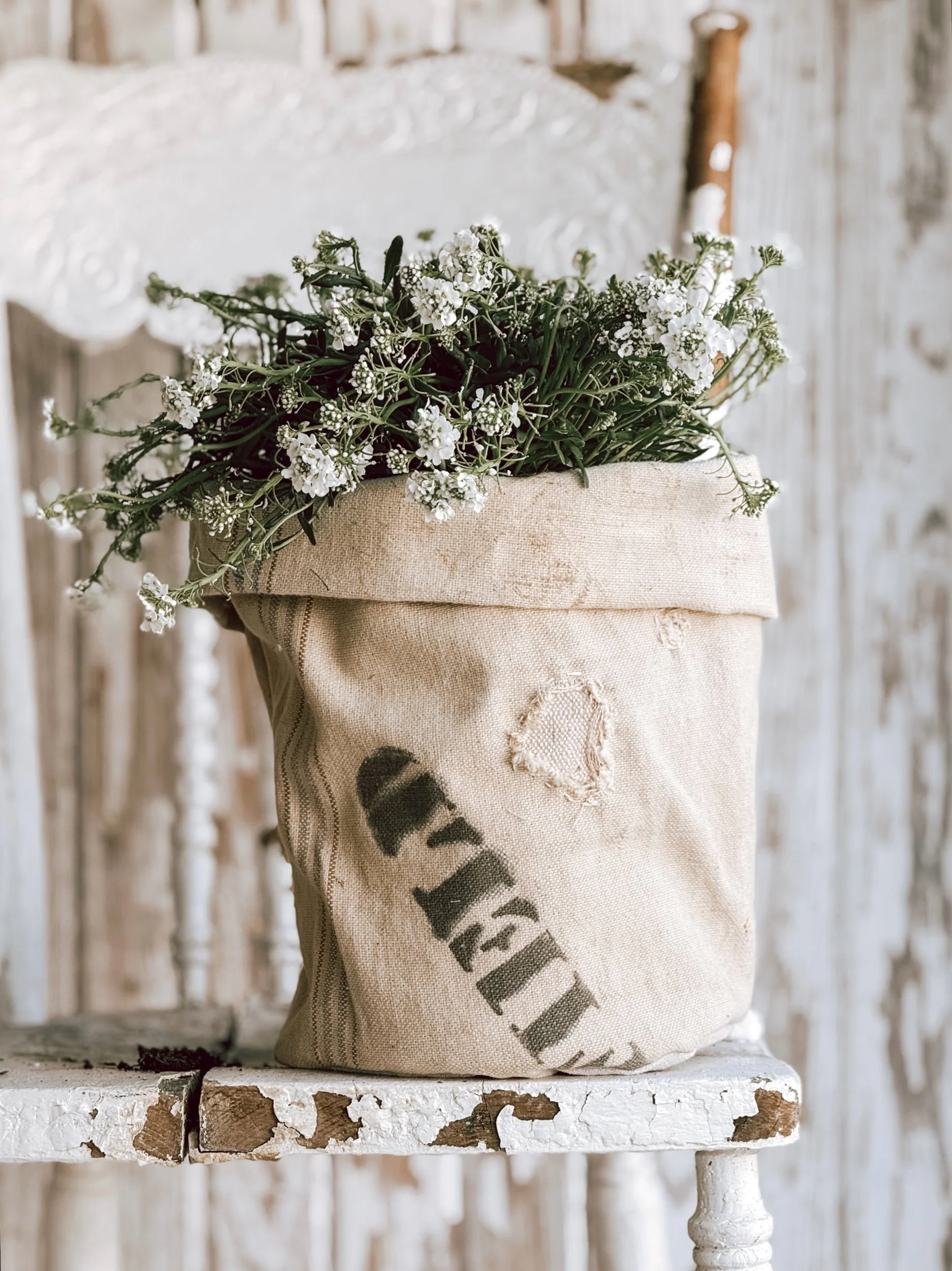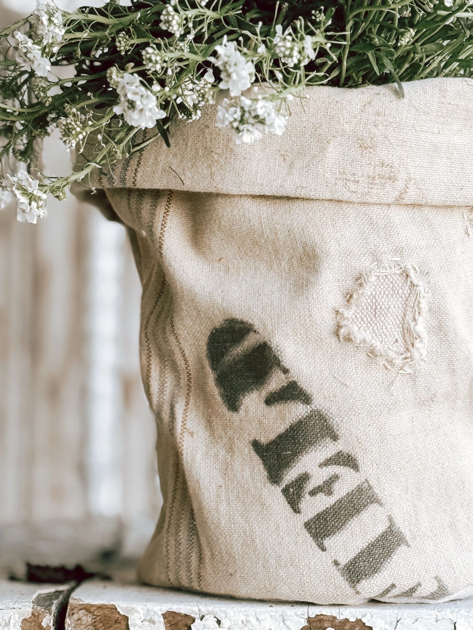 Artisan Handmade Antique Grain Sack Garden Pot Cover