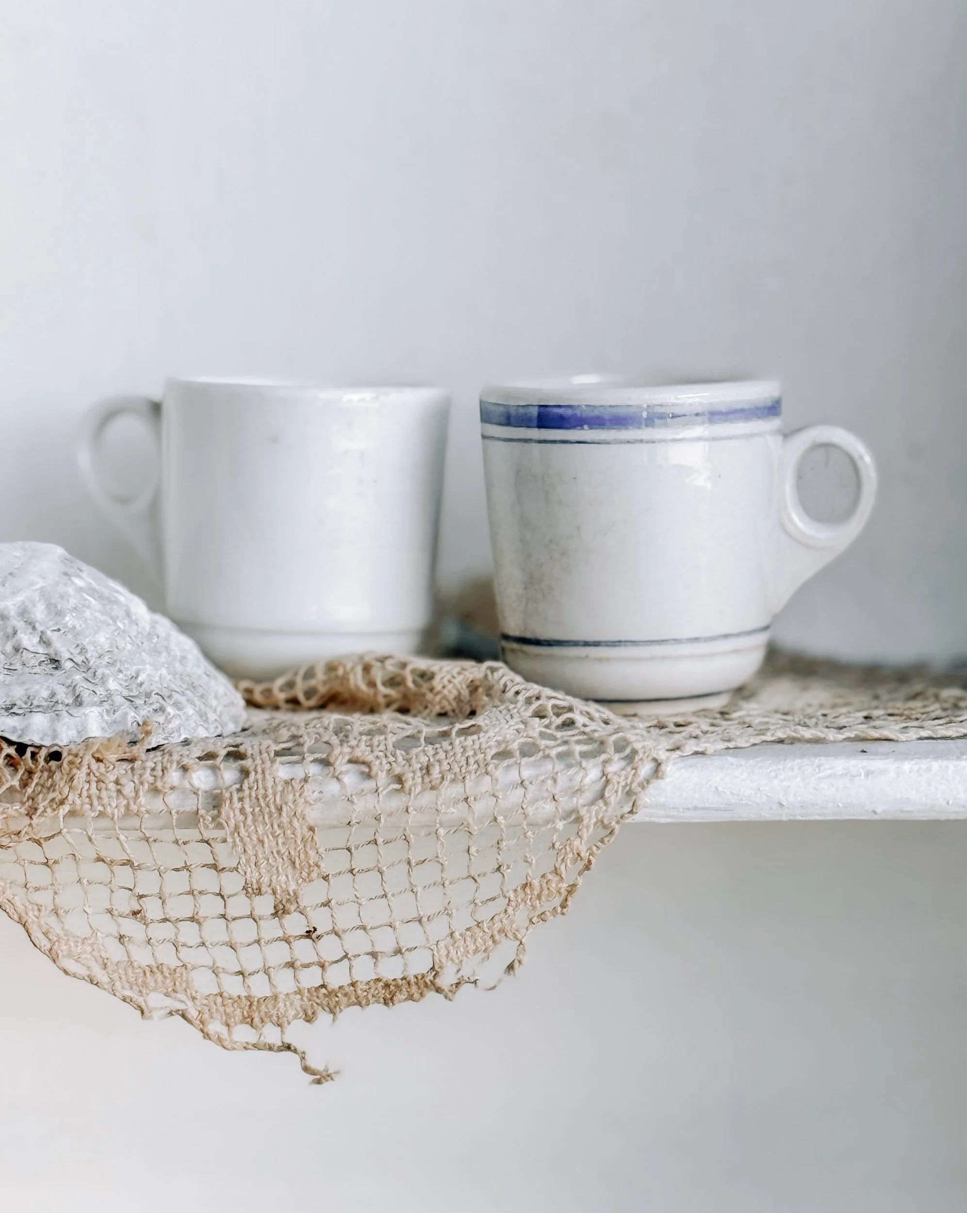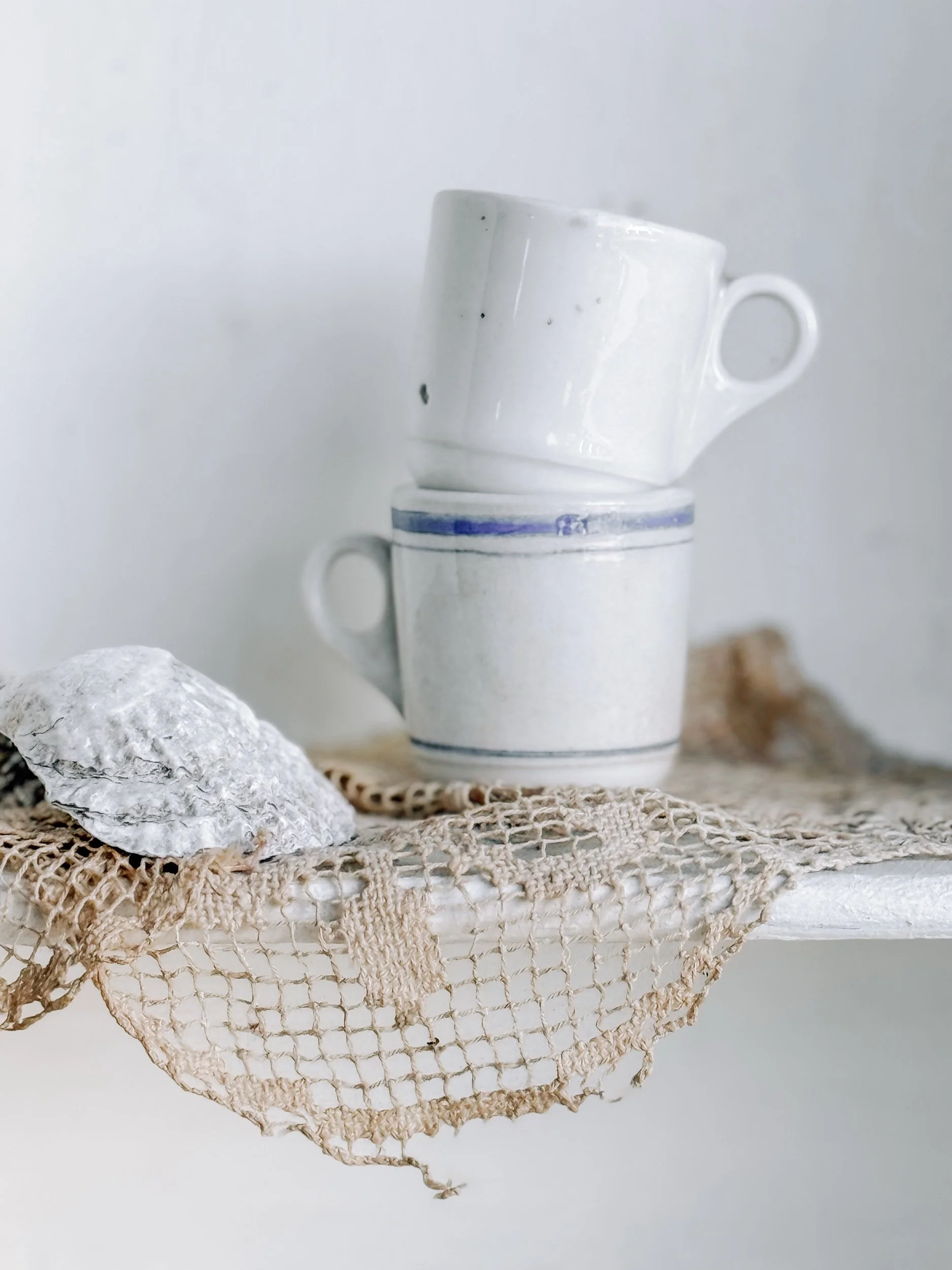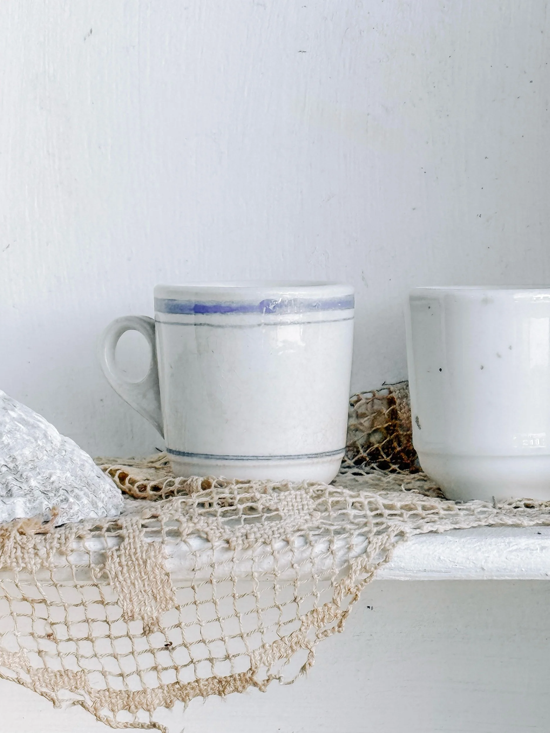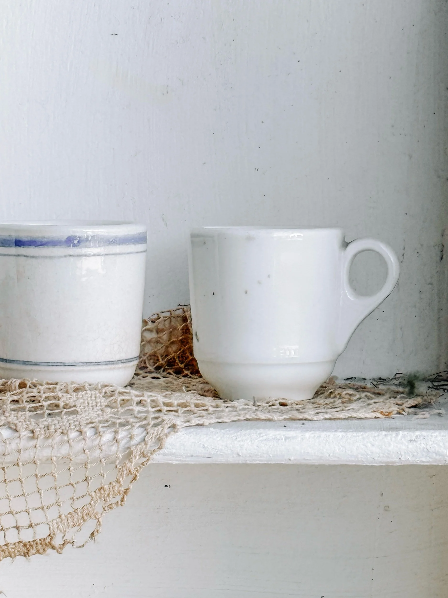 Traditionally used for warming spiced wine or spirits, these cups carry a rich sense of history while offering timeless versatility today. Crafted in creamy ironstone, each piece shows a gentle patina with subtle wear that speaks to its age and use.