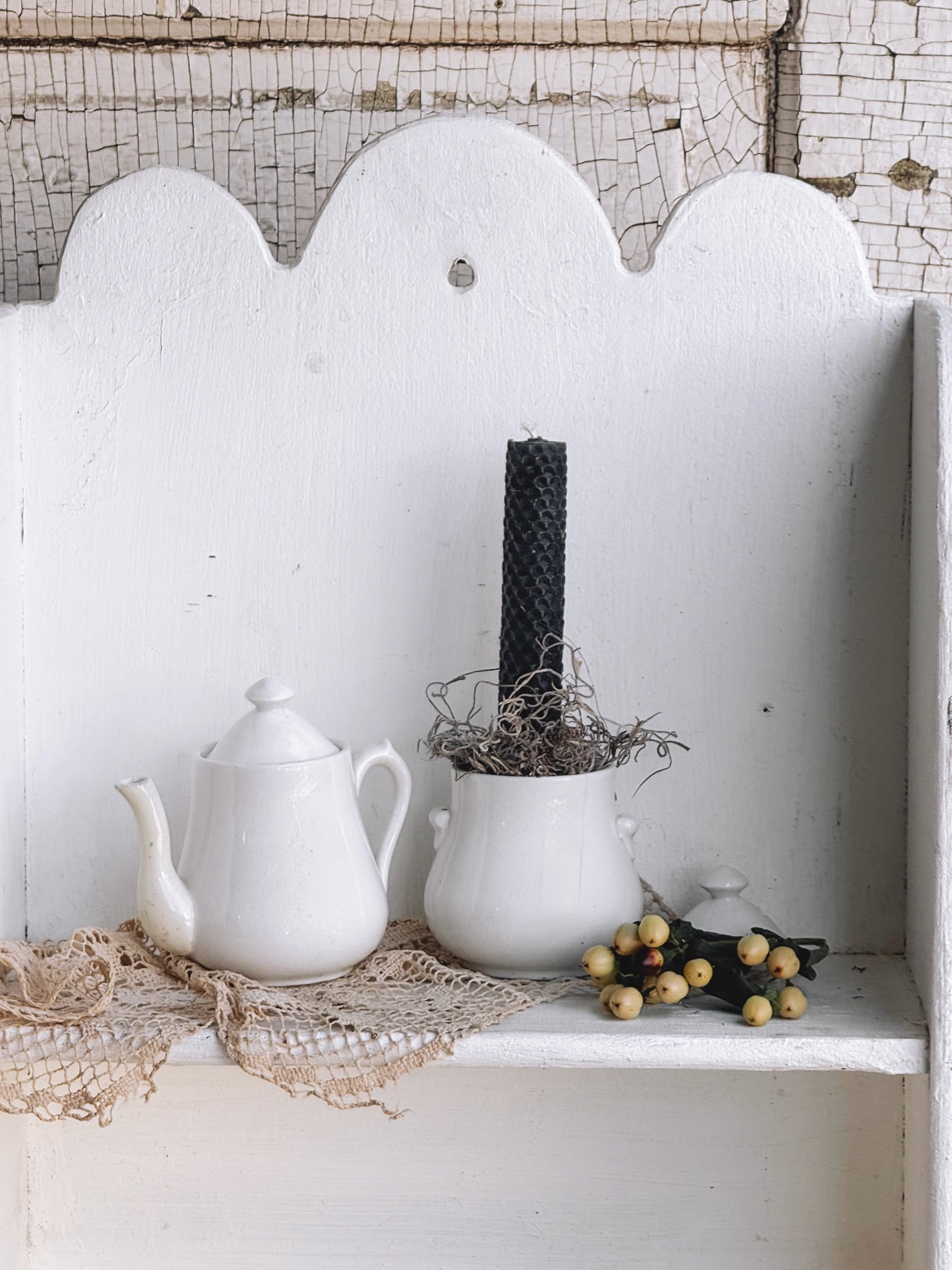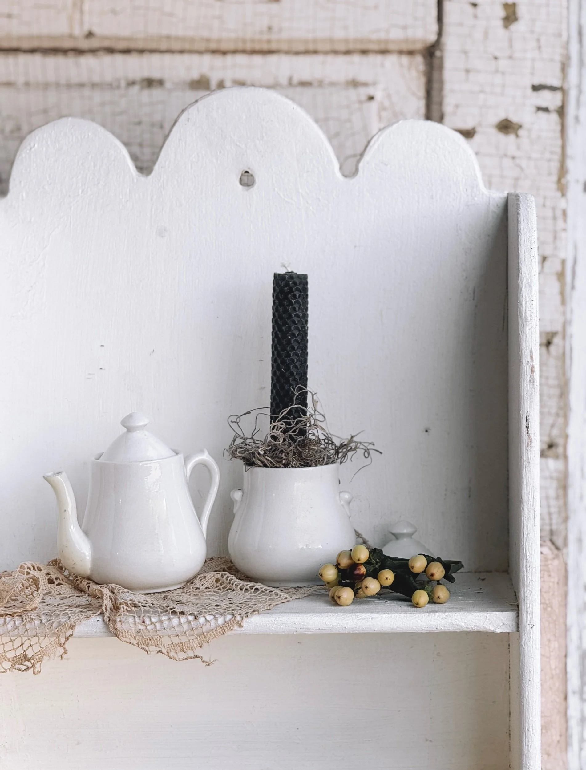 Perfect for a shelf, bedside table, or layered into a kitchen vignette. Also beautiful mixed into a larger centerpiece or styled on your scalloped wall shelf for a soft, gathered look.