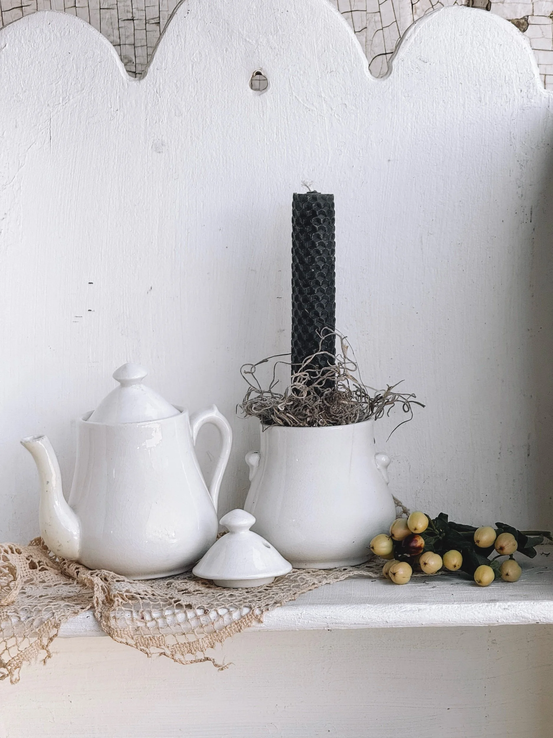 Paired with a hand-placed taper candle nestled in dried moss, this piece becomes more than a set—it transforms into a simple, sculptural moment. The balance of function and styling gives it that collected, lived-in feel your shop is known for.