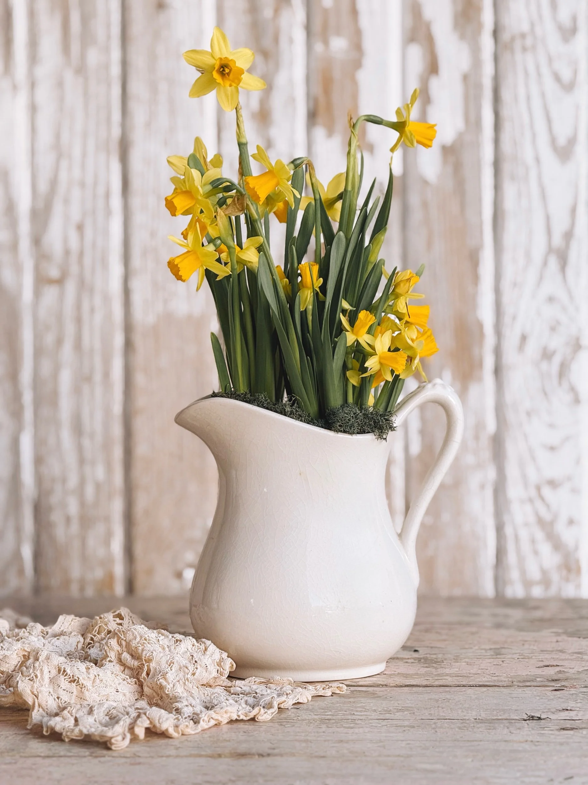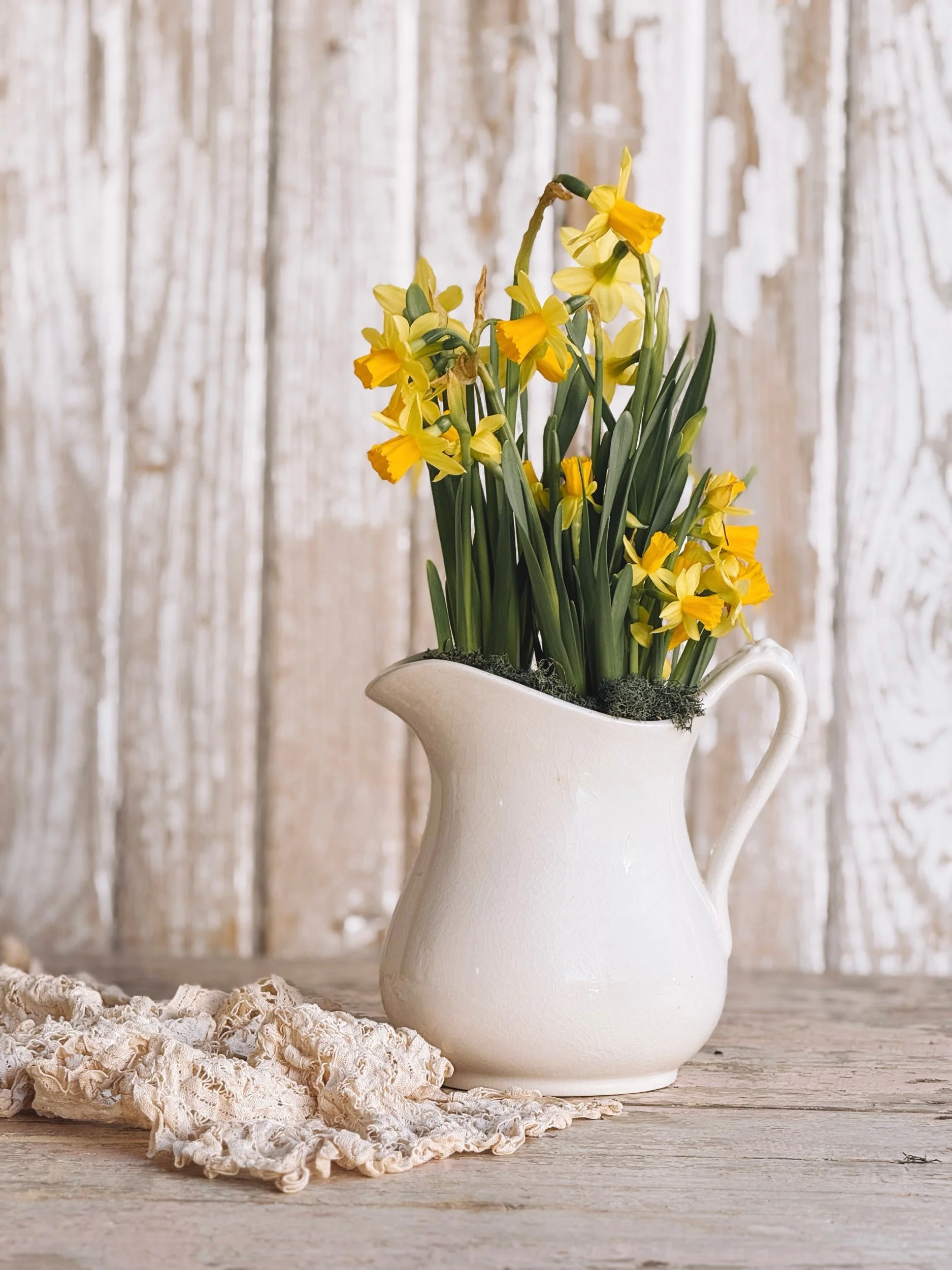 Perfect for fresh-cut flowers, garden stems, or simple greenery. Beautiful on a kitchen counter, dining table, or open shelf—easily layered with other ironstone pieces for a cohesive, collected look.