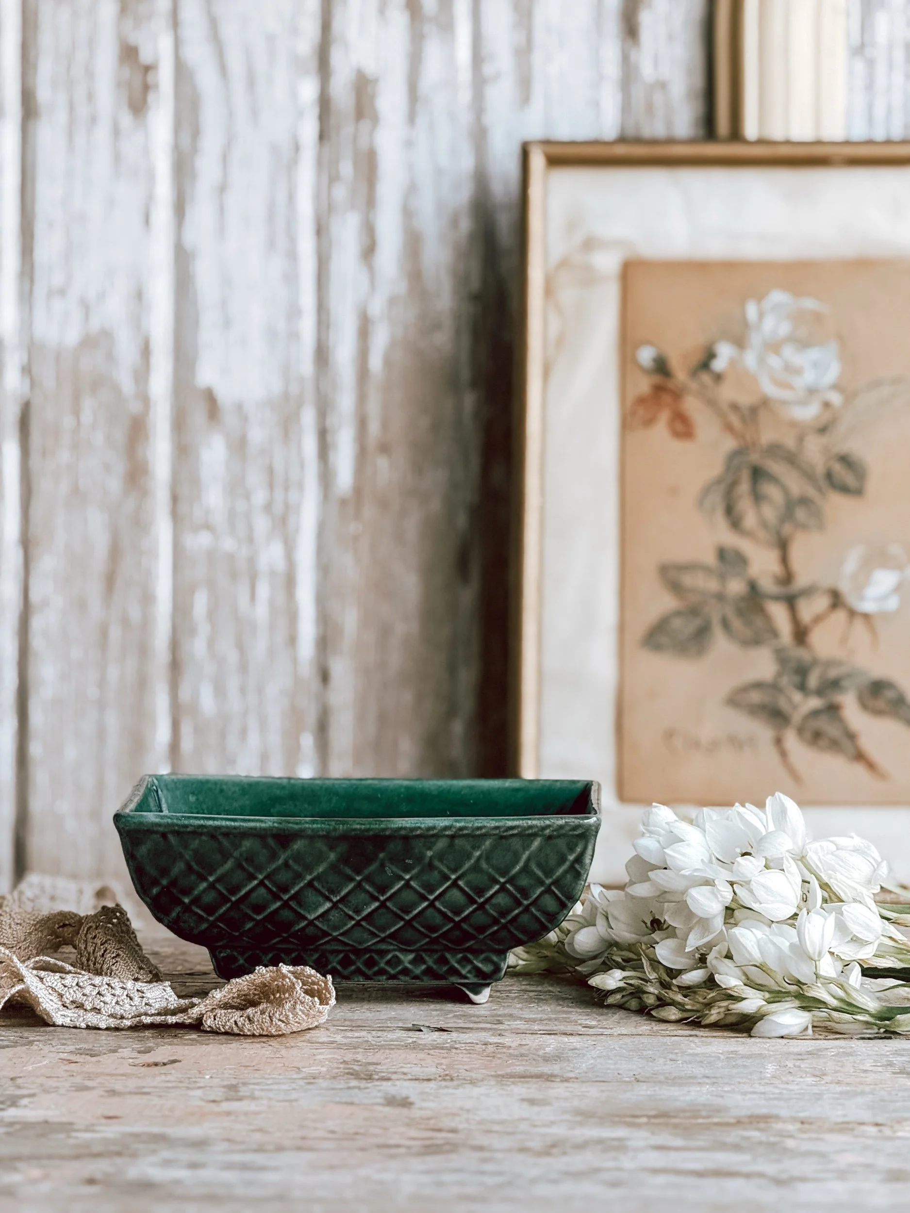 Vintage Emerald Glazed Pottery Planter – Diamond Pattern