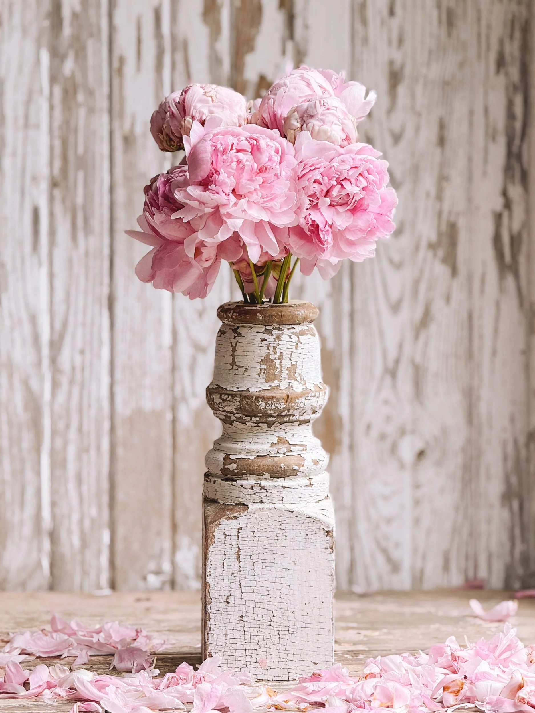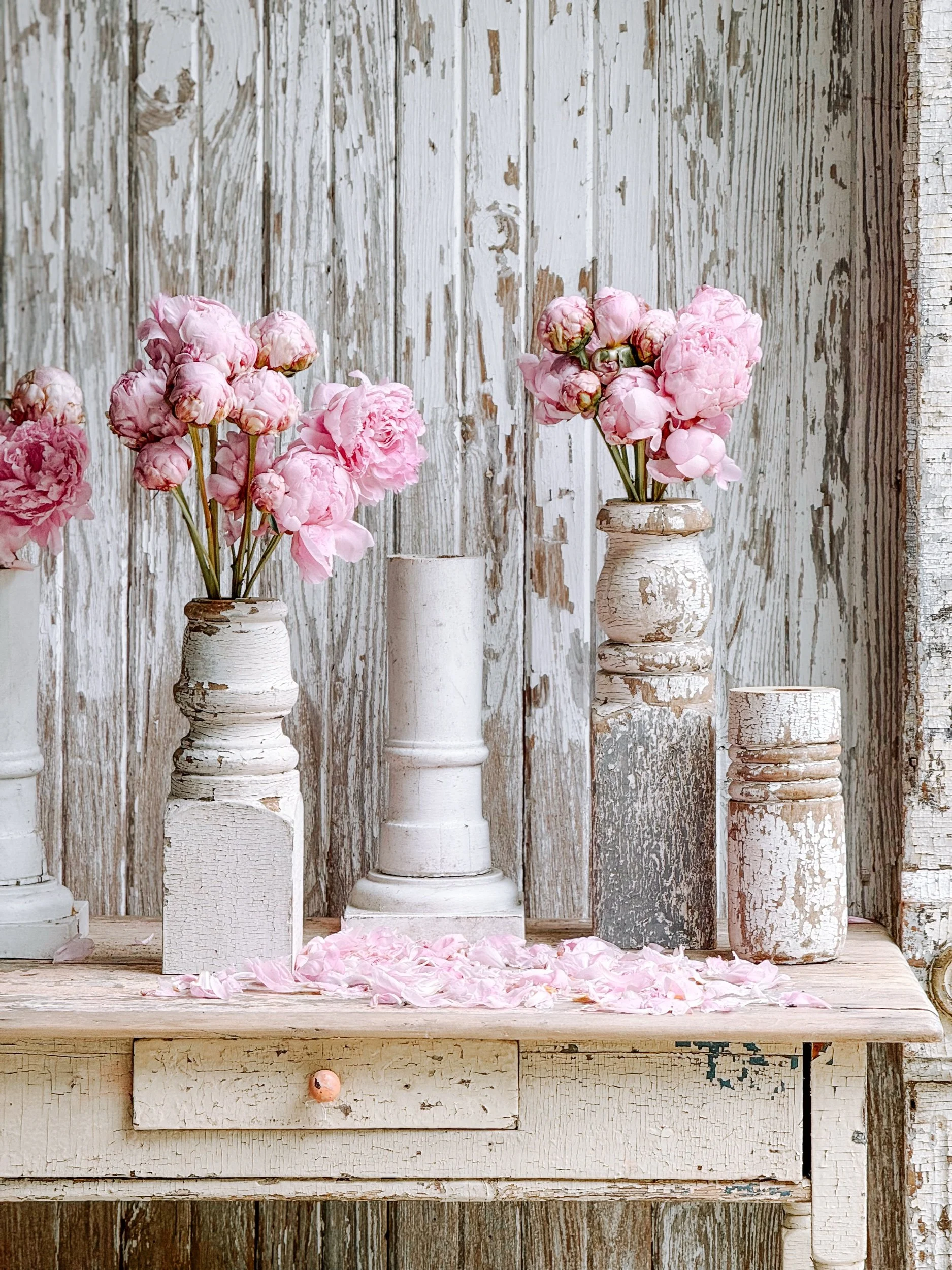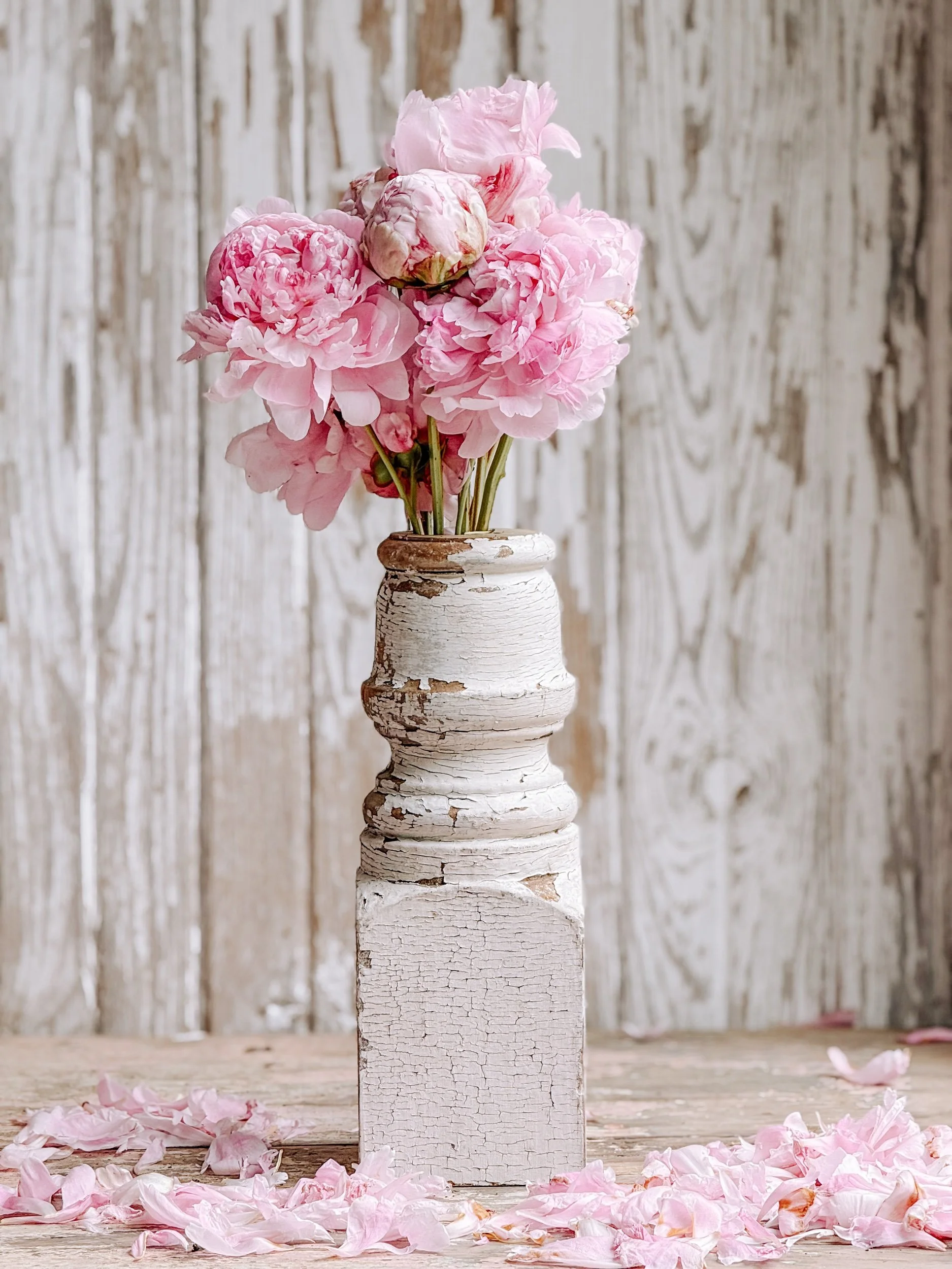 Three dried peony stems included (various colors: deep pink/pale pink)