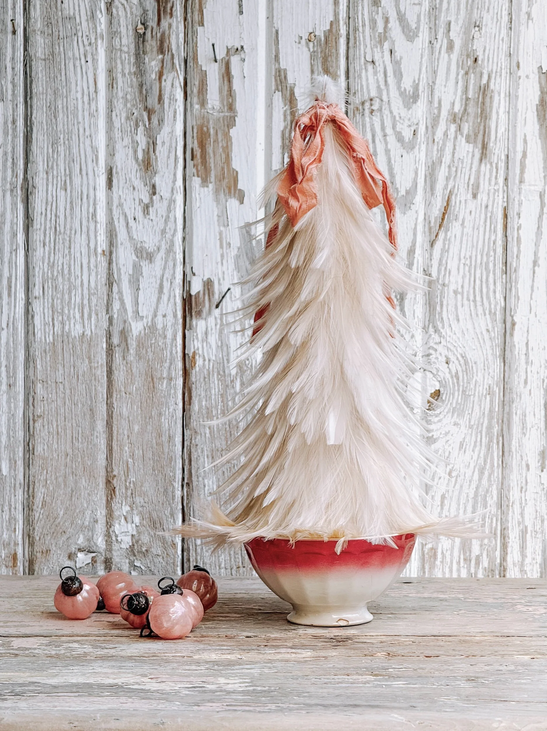 Pale Pink Feather Tree w/ Antique Salvaged Base