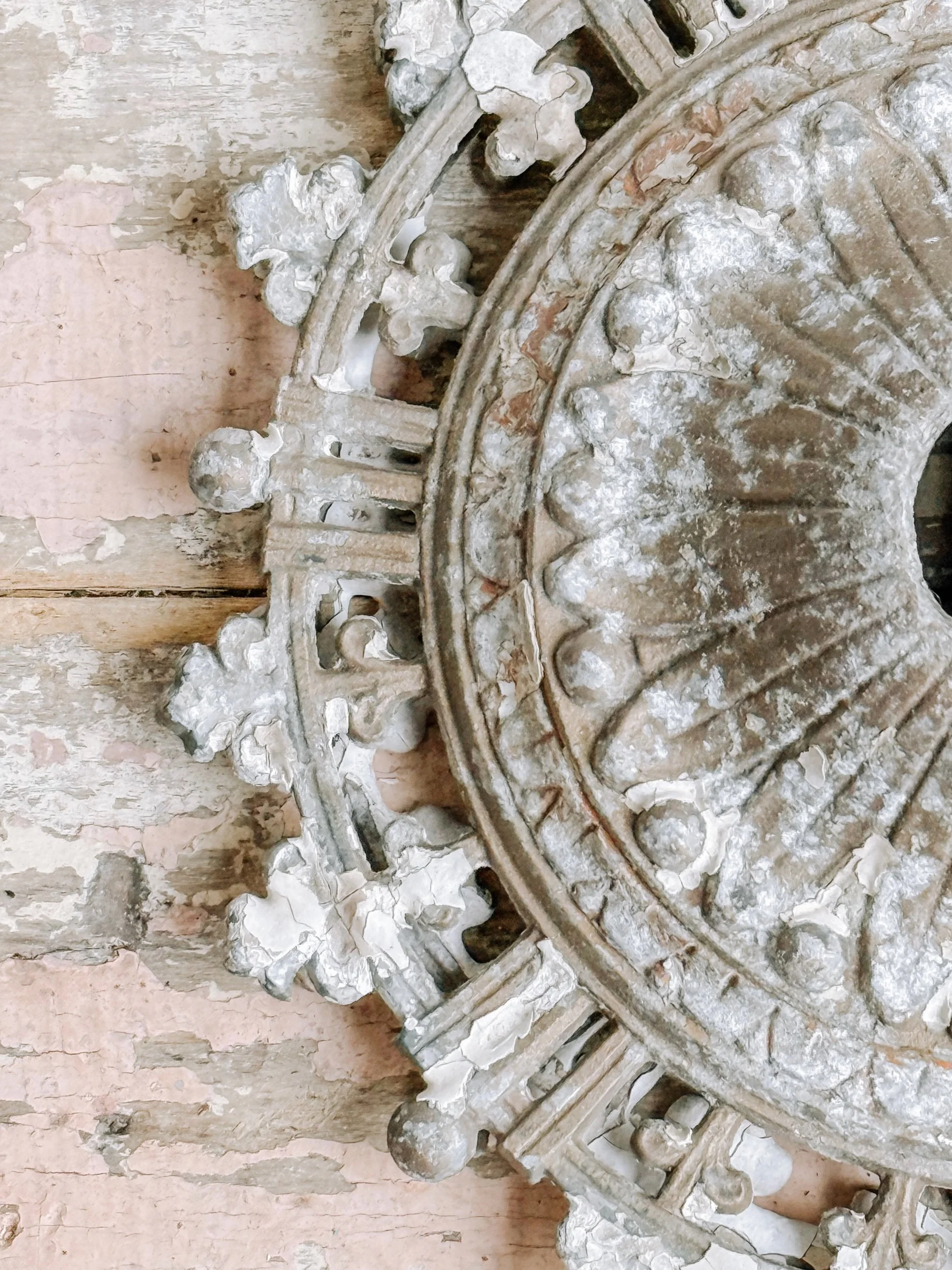 Antique Pink Cast Iron Bracket w/ Hydrangea Bouquet