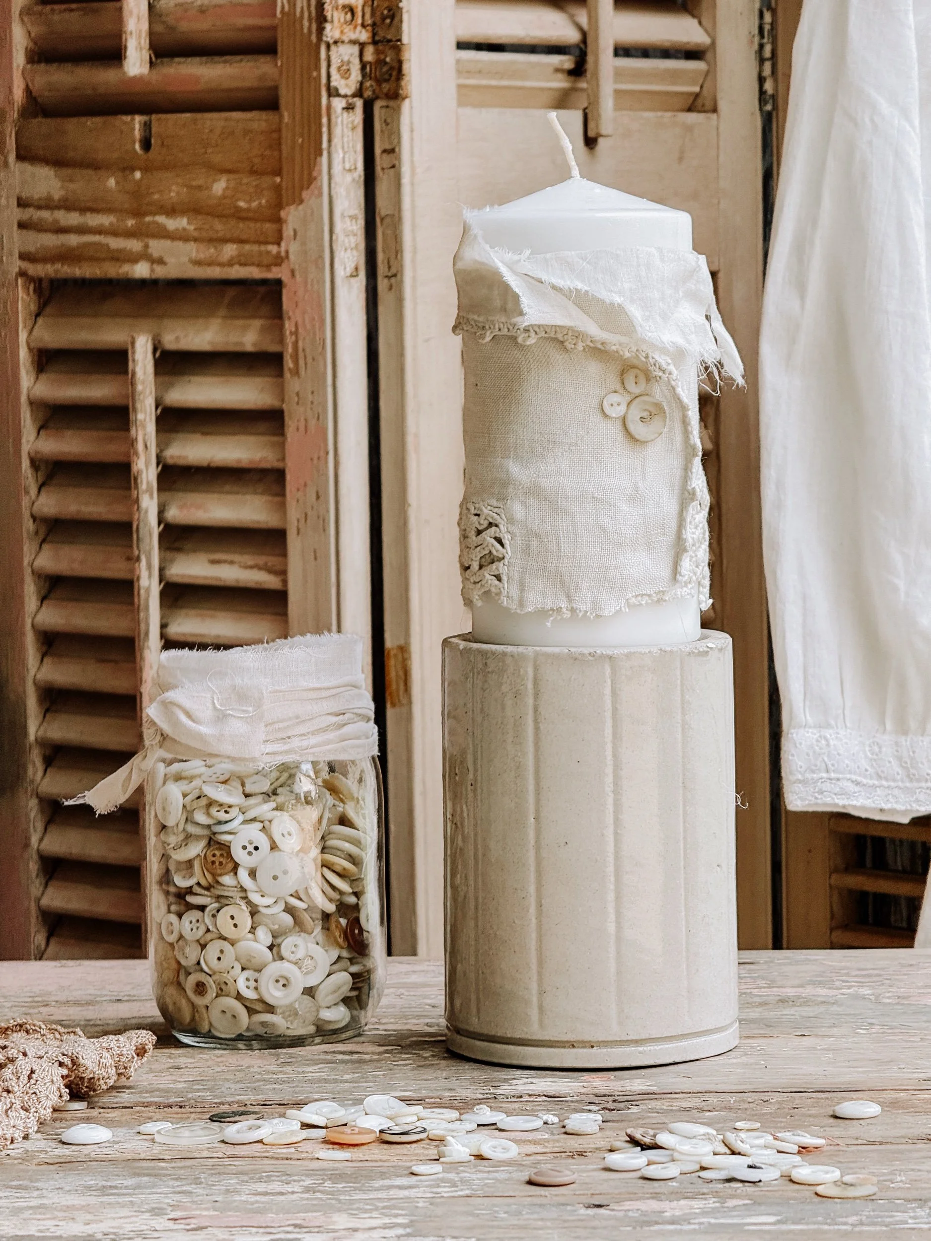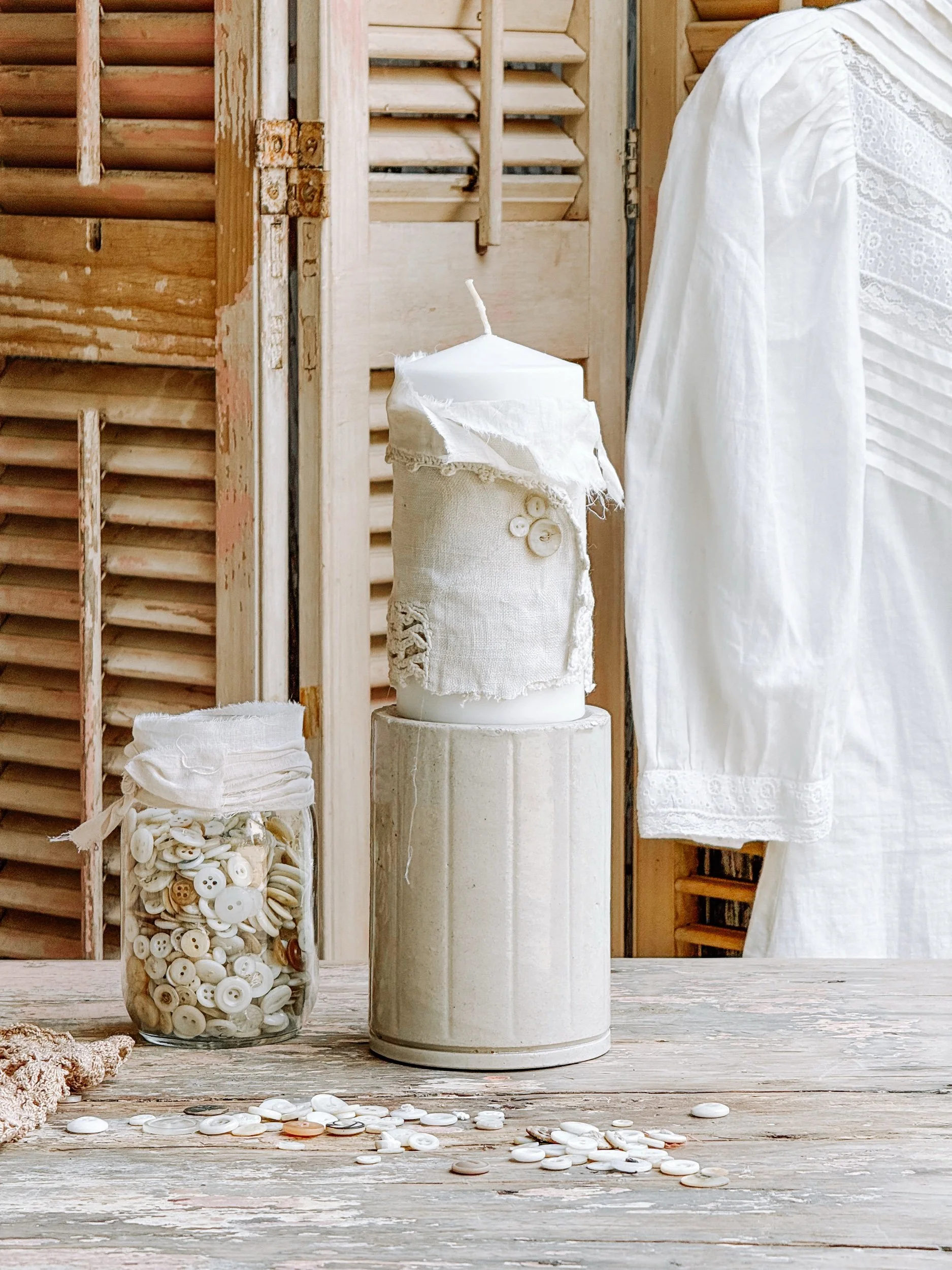 Antique Ironstone Riser & Candle Set