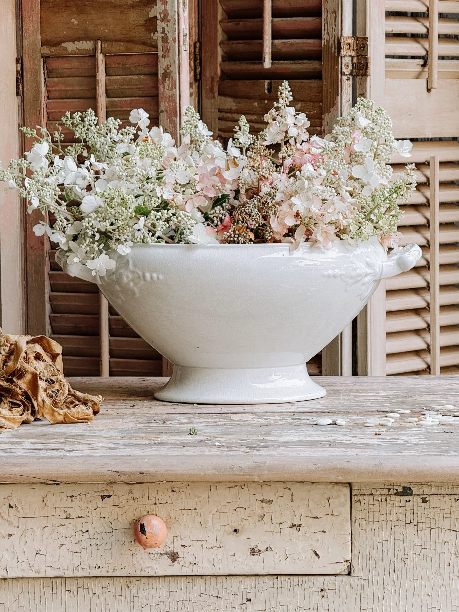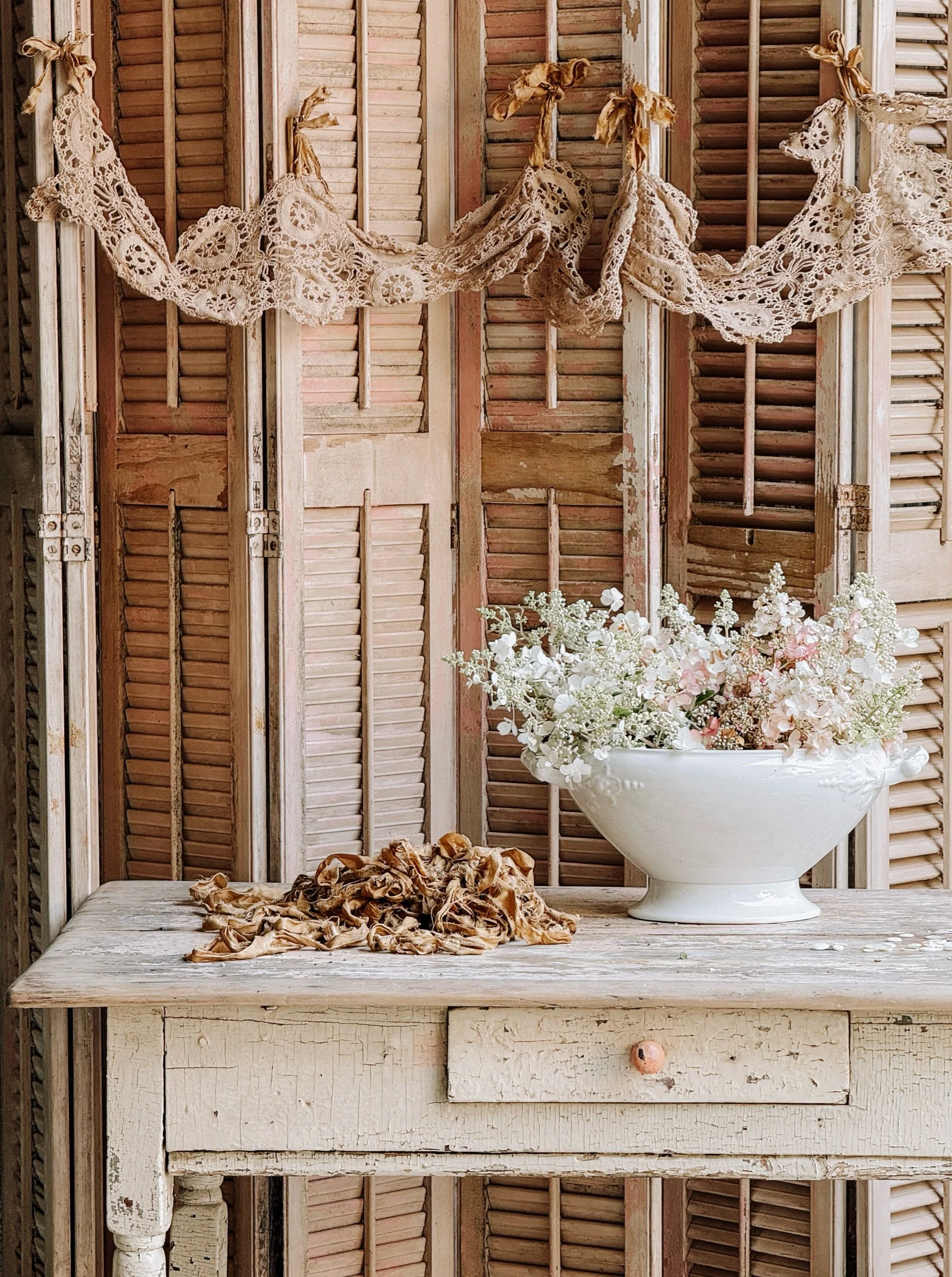 Antique Lace Parasol Canopy w/ Dried Hydrangeas